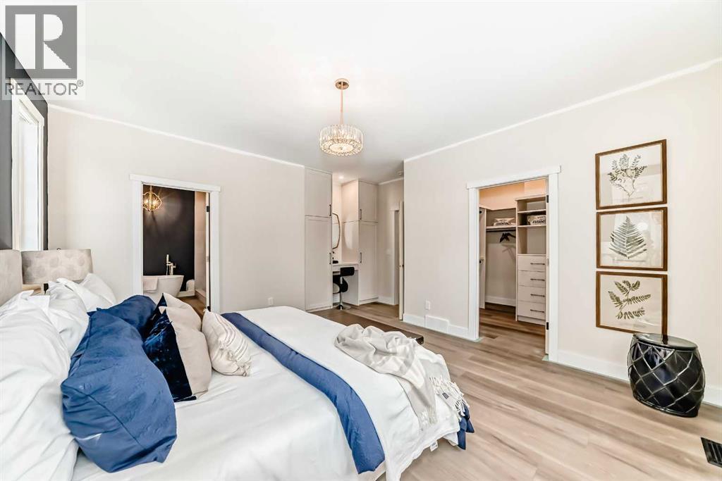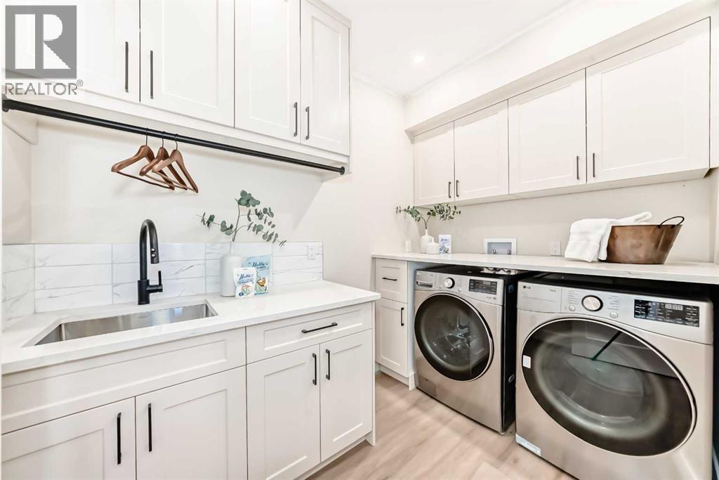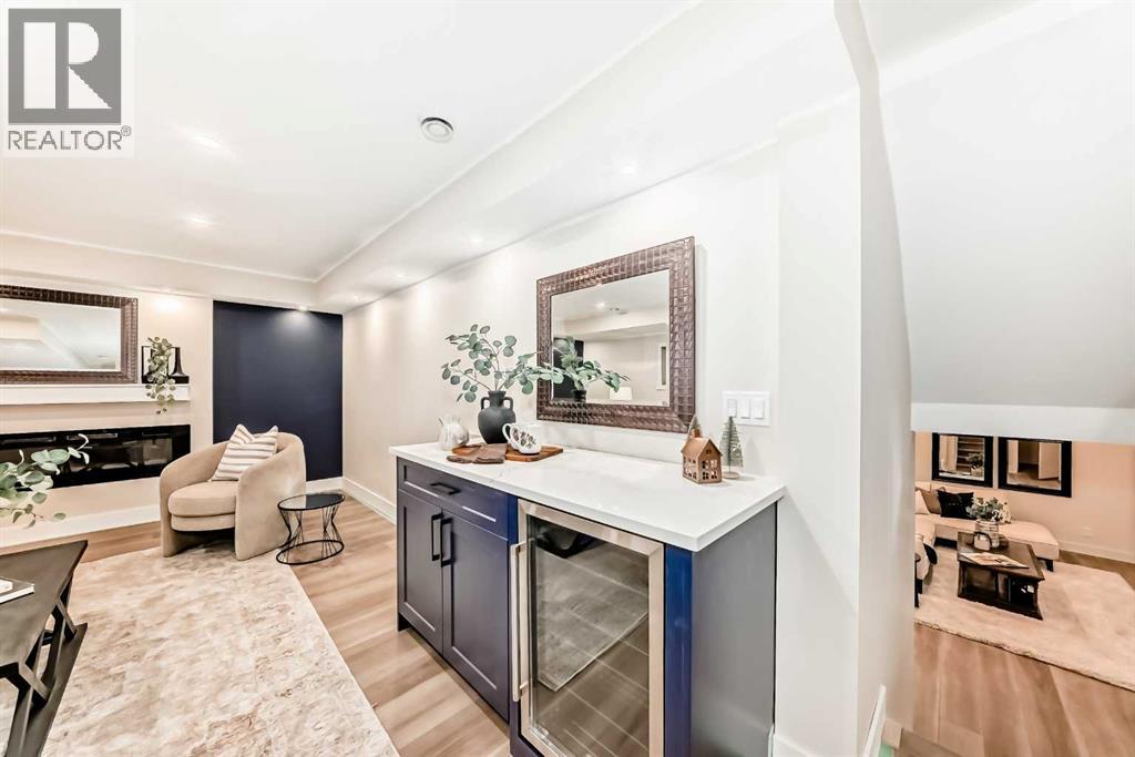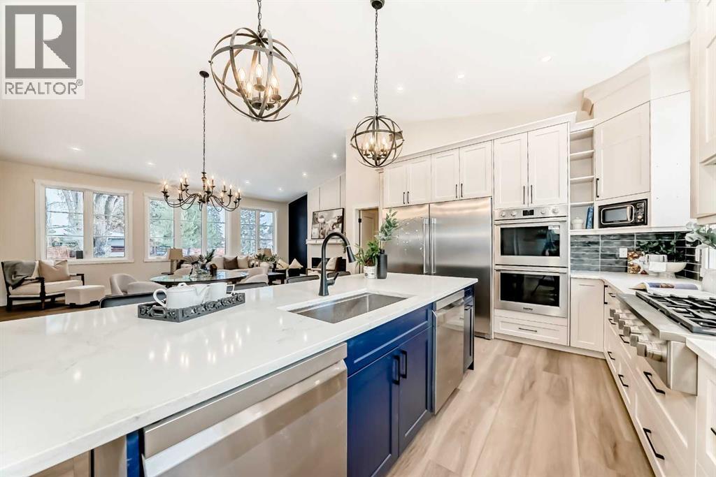 SIMPLY STUNNING! This beautiful home was completely rebuilt walls and new roof trusses to including additions to the main and upper levels. Now 3300 sq feet on three levels plus basement. 10 foot ceilings on the main floor 15 foot peak vaulted ceiling plus numerous windows allowing natural light to filter throughout the great room. The chef's kitchen is the hub of the home and features a large eat up island that seats 6, double door professional fridge/freezer, 6 burner gas cooktop, 2 dishwashers, double ovens and quartz counters. The large walk-in pantry/mudroom is steps from the kitchen and is complete with tons of storage and closets. Step into the sunny west side yard via the garden doors, where you will find a perfect space to BBQ and dine al fresco on the private patio just steps from the large sunny yard. This huge pie lot extends west to the fence. The yard also features a double gate and gravel pad allowing for RV parking, or would make a great space for a dog run or outdoor storage. Upstairs is the Owner's suite, with a generous bedroom, custom walk in closet with built in drawers, a 5 pc ensuite with soaker tub , shower and Japanese style high end toilet, as well as an additional closet/vanity area. The two additional bedrooms on this level are bright with oversized windows, and share access to the main bathroom. One bedroom features a door directly into the main bath. The oversized laundry room has ample cabinetry side by side washer/dryer, sink and space to hang dry. The inviting third level offers a cozy family room complete with an electric fireplace and bar, an additional guest bedroom or den. Garden doors on this level lead you to the amazing 4 season sunroom. This large 12x34 ft room features windows all around, 3/4 inch rubber flooring and is fully heated. This room is the ideal space for a games room, gym or quiet sitting room overlooking the large sunny yard. Downstairs on the 4th is an additional space for a media room, kids play space, gym or office and also features a 3 pc bathroom and tons of storage. High end 10 inch wide plank vinyl flooring runs throughout the home with dry core insulated boards on the concrete third and fourth levels. All new mechanicals, including AC, new underground plumbing with backflow valve, new electrical panels with second one in garage with 220 plug and new garage heater. Exterior is completer with all new James Hardie boards, new asphalt singles 2025, new landscaping and trees planted. Front walk and driveway were done by Urban Rubber a wonderful no slip surface and so easy to shovel. Drone video and picture gallery of the transformation in supplements. Beautifully treed and private crescent, close to schools, shops and Edworthy Park. (id:55690)