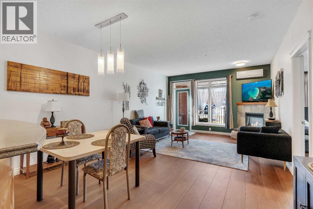 GROUND FLOOR WITH PRIVATE FRONT ACCESS | RENOVATED INTERIOR | TITLED UNDERGROUND PARKING | A/C | FLOODED WITH NATURAL LIGHT | LARGE SOUTH FACING WINDOWS | Welcome to Unit #101 at Copperwood in Spruce Cliff, ideally located just steps to Edworthy Park, the Bow River pathway system, and Shaganappi Point Golf Course. This upgraded 1 bed + 1 bath condo offers over 750 sqft of open concept living with fresh paint, high end engineered hardwood flooring, upgraded lighting, and a refreshed bathroom. The large kitchen is outfitted with stainless steel appliances, Corian countertops, garburator, a generous breakfast bar, and plenty of cabinetry for both storage and display. The living area centres around a cozy gas fireplace and flows seamlessly to the spacious covered patio, perfect for morning coffee or direct street access for dog owners or those who prefer to avoid elevators. The primary bedroom features a walk in closet with built in organizers and a 4 piece en suite. Additionally there is a built in desk or work area at the front that is perfect for those working from home. Additional features include in suite laundry with extra storage, built in central A/C, a titled heated underground parking stall, an assigned storage locker, and access to Copperwood’s outstanding amenities including a massive fitness facility, guest suite, party room, car wash bay, and secure bike storage. Not to be overlooked, the parking, storage, and elevator are all within a few metres of each other, a convenience often missed in other condo developments. Pet friendly and perfectly suited for professionals, travellers, or downsizers looking for a Spruce Cliff condo in a vibrant inner city location, walkable to Westbrook C Train Station, Westbrook Mall, the public library, groceries, parks, pathways, and just 5 minutes to downtown Calgary. Please reach out to book your private showing today. (id:55690)