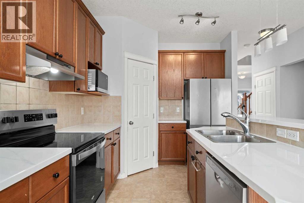 HUGE LOT. RARE WALKOUT BASEMENT. FAMILY-FRIENDLY CUL-DE-SAC. OVER $100K IN NEW EXTERIOR UPGRADES. This home is an excellent fit for families looking for outdoor space, peace of mind, and long-term value in a well-loved NW community. It is set on one of only two cul-de-sac streets in all of Kincora, a detail many residents value for safety, privacy, and reduced traffic. Families will appreciate the quick access to Kincora Glen Park and the wide walkout lot that gives kids and pets room to spread out. The exterior has been thoughtfully refreshed. With more than $100,000 invested in exterior improvements, this home comes with a renewed exterior and the kind of long-term stability families appreciate. Updates include a new roof, new siding, new eavestroughs, repainted exterior trim, a new garage door, and new front and side windows. Even the dryer is new, adding one more thing future owners do not need to worry about. Inside, the layout is bright, comfortable. The kitchen features a central island with a raised eating bar, a walk-in pantry, and a breakfast nook with access to the rear deck. It is an easy place for family meals and summer BBQs. The living room has a gas fireplace, and the front flex room can function as a formal dining space, home office, or play area. Upstairs, the bonus room works well as a family hangout or media space. The primary bedroom includes a walk-in closet and a four-piece ensuite with a private water closet, soaker tub, and separate shower. Two additional bedrooms, a full bathroom, and a convenient upper-floor laundry room complete this level. The walkout basement, with rough-in plumbing, is ready for future development and offers room for a recreation area, guest suite, or home gym. Kincora is known for its family-friendly feel and strong community involvement. Early Discoveries Nursery School is a short walk away, and a new CBE middle school for grades five to nine is planned for the nearby Sage Hill and Kincora area. Transit is close, and daily essentials such as shopping, medical clinics, and pharmacies are minutes from the home. The community association also maintains an outdoor ice rink each winter. This home brings together a large lot, a full walkout basement, a quiet cul-de-sac location, and extensive recent exterior improvements. It is move-in ready with room to grow in a community that families continue to choose, again and again. (id:55690)