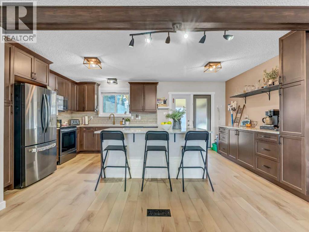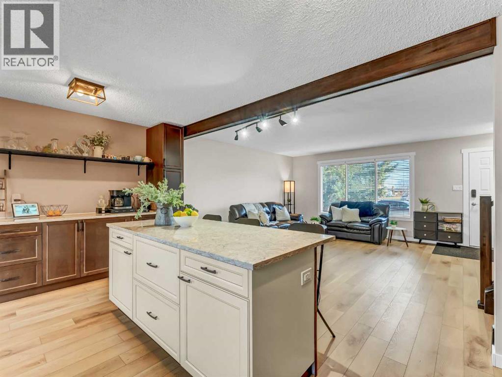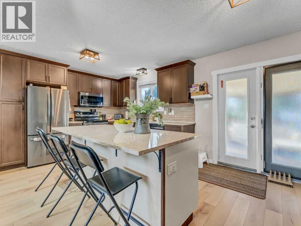Move-In Ready, Nicely Renovated 4-Level Split with Heated Garage. Welcome to 103 Ewart Crescent SE—a beautifully renovated 4-level split offering 4 bedrooms, 3 bathrooms, and a layout that’s perfect for growing families. New, gorgeous vinyl plank flooring flows throughout the home, setting the tone for a bright and modern feel. The main floor features a huge front living room that opens seamlessly into the renovated kitchen (2020), creating an ideal space for everyday living and entertaining. The kitchen is a standout with tons of cabinetry and storage, newer appliances (2020), quartz countertops (2023), a large centre eat-at island, and a stylish coffee bar/serving station. Upstairs, you’ll find three bedrooms including the primary suite with a private 2-piece ensuite, along with the main 4-piece bathroom featuring a re-glazed tub. The third level adds even more functional living space with a large family room complete with a surround sound system—perfect for movie nights—plus a 3-piece bathroom, a spacious laundry/storage room, and direct access to the double attached heated garage. The lowest level offers exceptional flexibility with a large flex room ideal for a games room, gym, playroom, or additional living space, along with the fourth bedroom. Outside, the fully fenced backyard is ready for family fun with underground sprinklers, a covered deck, a shed, and a play centre—making it an ideal space for kids and pets. This thoughtfully updated home offers space, comfort, and functionality in a great SE location. A must-see for families looking for a move-in-ready home with room to grow. (id:55690)