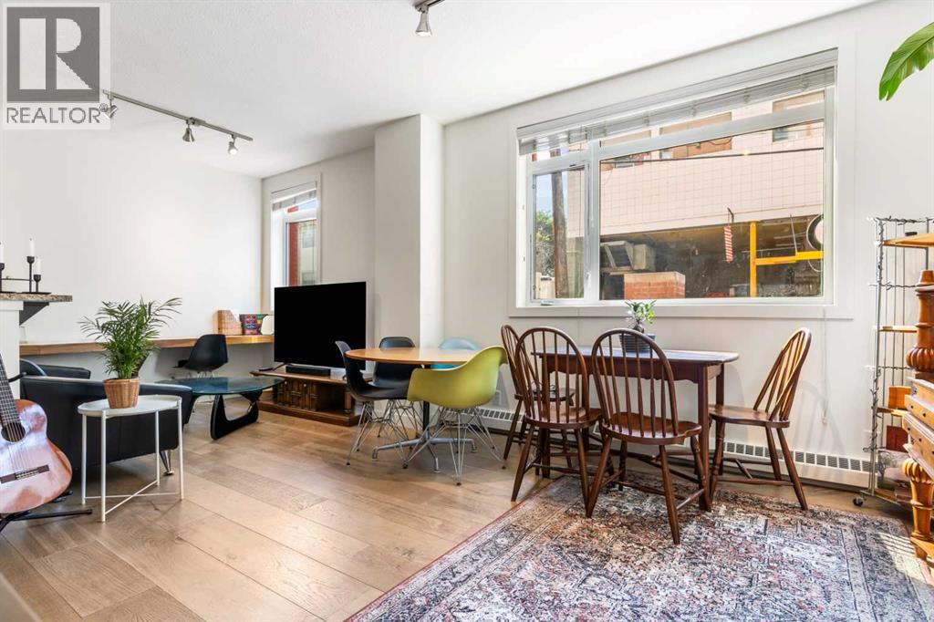 Discover the perfect blend of style, convenience, and investment potential in this chic condo located in the heart of Mission—a rare find in a concrete 6-storey building! Whether you're a first-time buyer looking for your dream home or an investor seeking a prime rental opportunity, this unit offers exceptional value in one of Calgary’s most vibrant communities. Step into a bright and spacious living area featuring hardwood floors and large south-facing windows that fill the space with natural light. The stylish kitchen is a chef’s delight, with granite countertops, a sleek tile backsplash, matching stainless steel appliances, and a convenient breakfast bar—ideal for casual dining or entertaining friends. The open-concept living and dining areas provide plenty of space for relaxing or hosting, and you’ll love stepping out onto the patio, perfect for outdoor gatherings or unwinding after a long day. The bedroom offers a generous full-width closet and direct access to a modern en-suite, complete with granite counters & a tiled shower. With in-suite laundry, a titled parking stall in the heated parkade, a storage locker, and access to a stunning rooftop patio with city views, this condo has everything you need for comfortable urban living. Plus, the building is meticulously maintained with exceptional management, ensuring your investment is well-protected. Located in the sought-after Mission neighborhood, you’ll be within walking distance of trendy restaurants, cozy cafes, parks, and transit, with easy access to major routes—making it a fantastic location for both living and renting. Don’t miss out on this incredible opportunity to own in one of Calgary’s best communities—whether you’re starting your homeownership journey or expanding your investment portfolio, this condo is a smart choice! (id:55690)