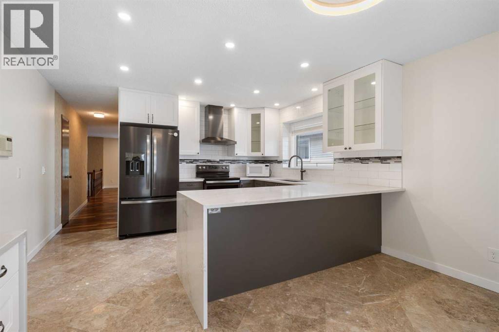 Welcome to this beautifully upgraded bi-level home, perfectly situated in the heart of the highly desirable community of Woodbine, just steps from Fish Creek Park, excellent schools, and everyday conveniences, including Costco, shopping, and quick access to Stoney Trail. With over 2700 square feet of developed living space, this house boasts high standards of comfort and perfect functionality, highlighted by three bedrooms, three bathrooms, and several other functional rooms. Step inside, you will first be greeted by a spacious living room with a large triple-pane window and a traditional fireplace. Going further on the main floor, the house is laid out as two areas with different functionality. On the left-hand side, there is a big dining room open to the living room and a fully renovated kitchen with granite counters, plenty of modern cabinets, a gorgeous breakfast bar, and all-new charcoal stainless steel appliances. This kitchen is really a dream for the home chef! A large sliding door from the kitchen opens out to a nice balcony which overlooks a flourishing backyard with mature trees and flower beds. Three spacious bedrooms, two bathrooms, and a laundry room are located on the right-hand side of the main floor. The huge primary bedroom possesses a renovated ensuite and a large walk-in closet. Going downstairs, the fully finished walkout basement hosts a huge recreation room with a beautiful wet bar and a gas fireplace, a big family room, a den/home office, and a 4-piece washroom. Look at the brand new carpet throughout the basement! Further for your comfort and daily relaxation, there is a generously sized private sauna and an attractive Jacuzzi hot tub (**). The beautifully landscaped backyard can be accessed through the walk-out door of the basement or through the balcony outside the kitchen. Now it’s your time to grab this gem. Book your showing today! (**Seller believes the jacuzzi tub in the lower level sauna room is functioning, but is not certain, there fore it will be sold 'as is'). (id:55690)