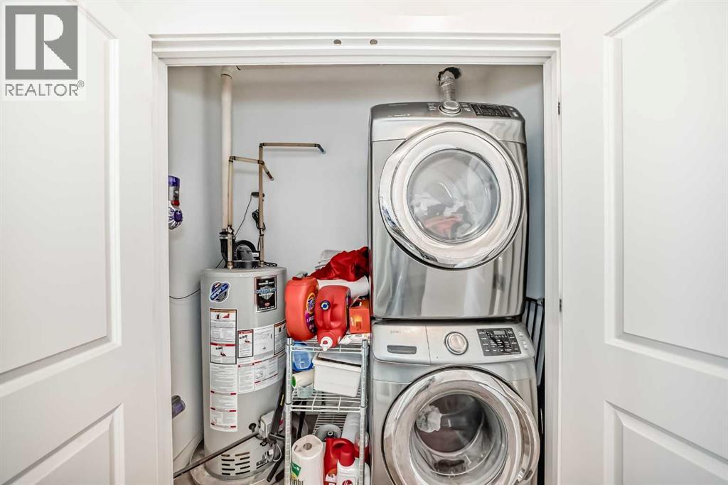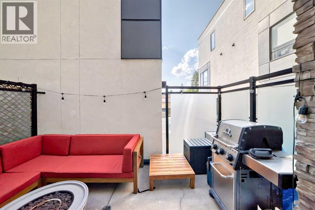 Welcome to The Rosscarrock Retreat, where high-end urban living meets architectural brilliance. Located at 109, 15 Rosscarrock Gate SW, this stunning 2-bedroom, 3-bathroom townhome offers a rare four-level floor plan designed for the modern professional. From the moment you arrive at your private street-level entrance, the quality is evident—custom built-in storage keeps your transition seamless, while a convenient powder room serves the main floor. Just steps below, you’ll find the ultimate city luxury: secure, underground heated parking and additional storage space. The heart of the home is a culinary masterpiece. The second level features a gourmet, European-style kitchen finished with sleek white soft-close cabinetry, premium quartz countertops, and a designer stainless steel appliance package. The center island serves as the perfect social hub for entertaining, with easy access to a truly unique feature—a private patio with heated concrete, ensuring year-round outdoor comfort. Moving up, the third level provides a dedicated sanctuary for relaxation, anchored by a cozy electric fireplace and a secondary private balcony for fresh-air breaks. The top floor is dedicated to rest and productivity. The deluxe primary suite is a true "executive" escape, boasting a spa-like 4-piece ensuite with dual sinks, an oversized walk-in shower, and a large walk-in closet with custom organizers. A second spacious bedroom and a bright, skylit flex space—ideal for a home office—complete the upper level along with enclosed laundry. Perfectly positioned near Bow Trail, the LRT, and the lush pathways of Edworthy Park and Shaganappi Golf Course, this home offers an uncompromised lifestyle in one of Calgary's most vibrant inner-city communities. Book your viewing today! (id:55690)