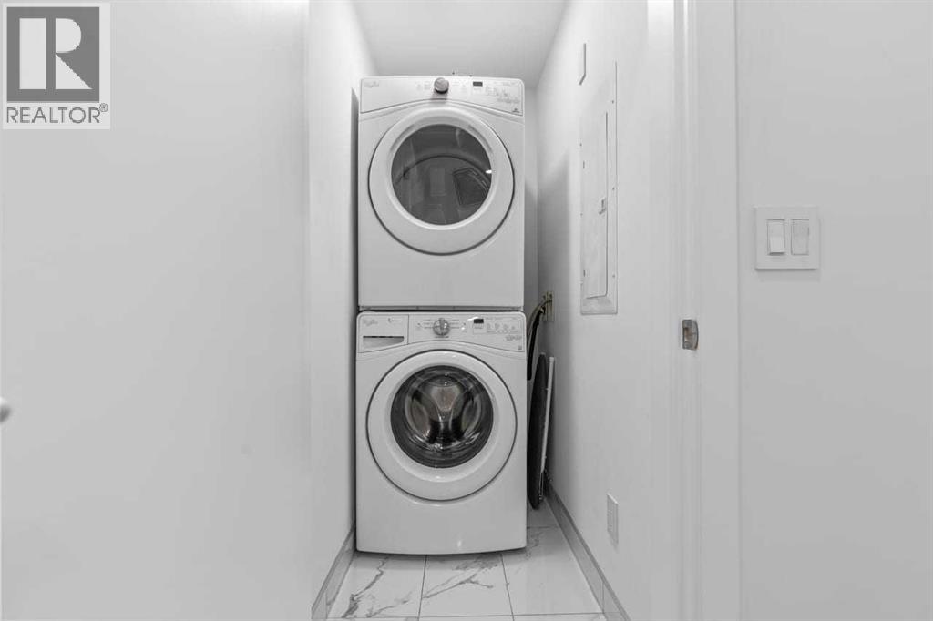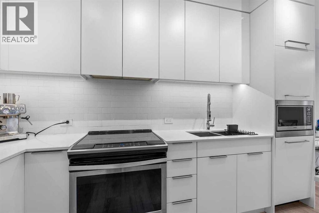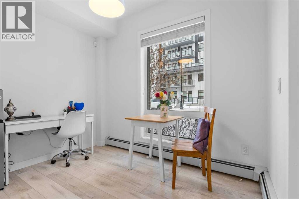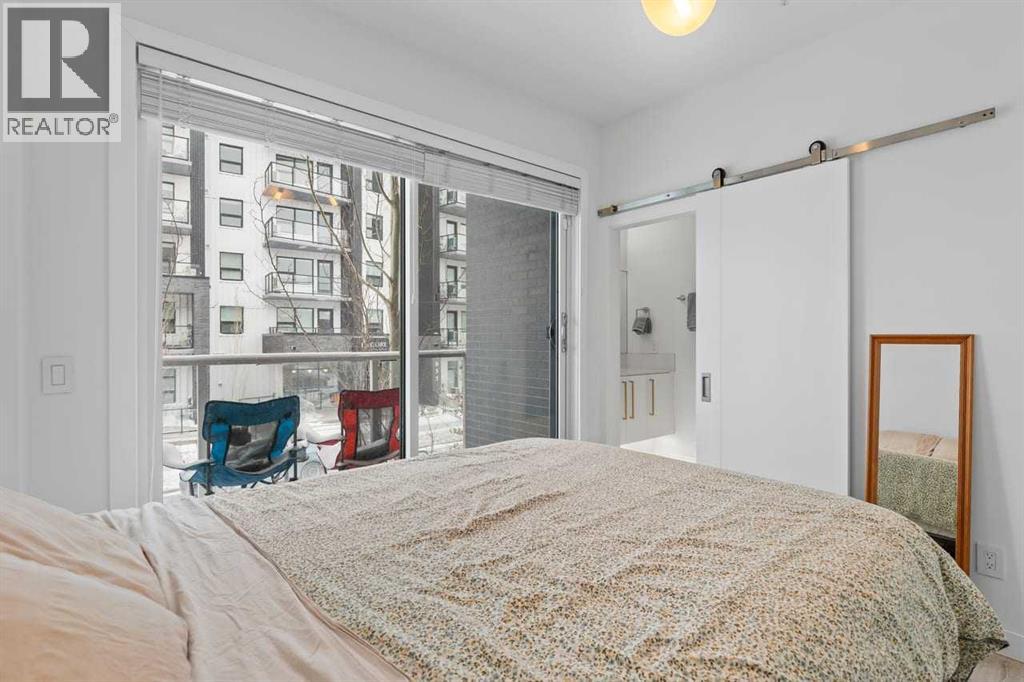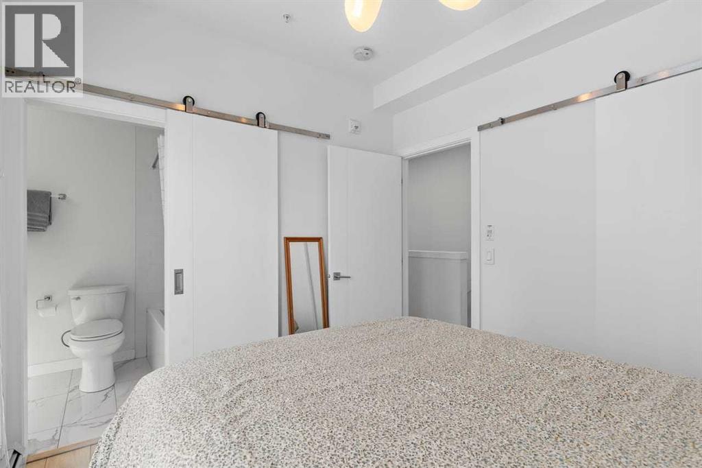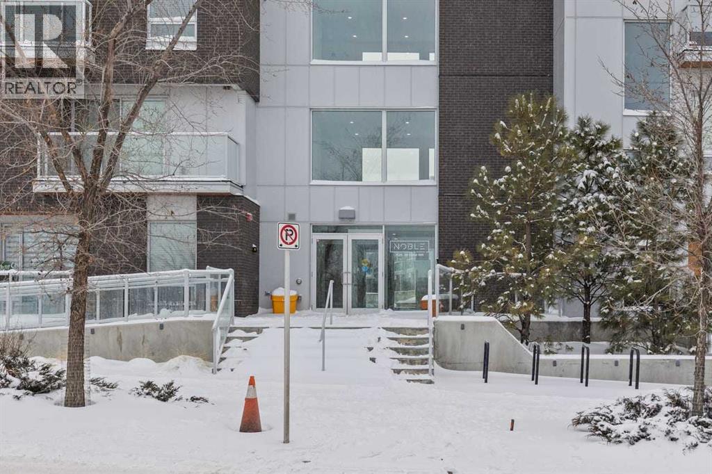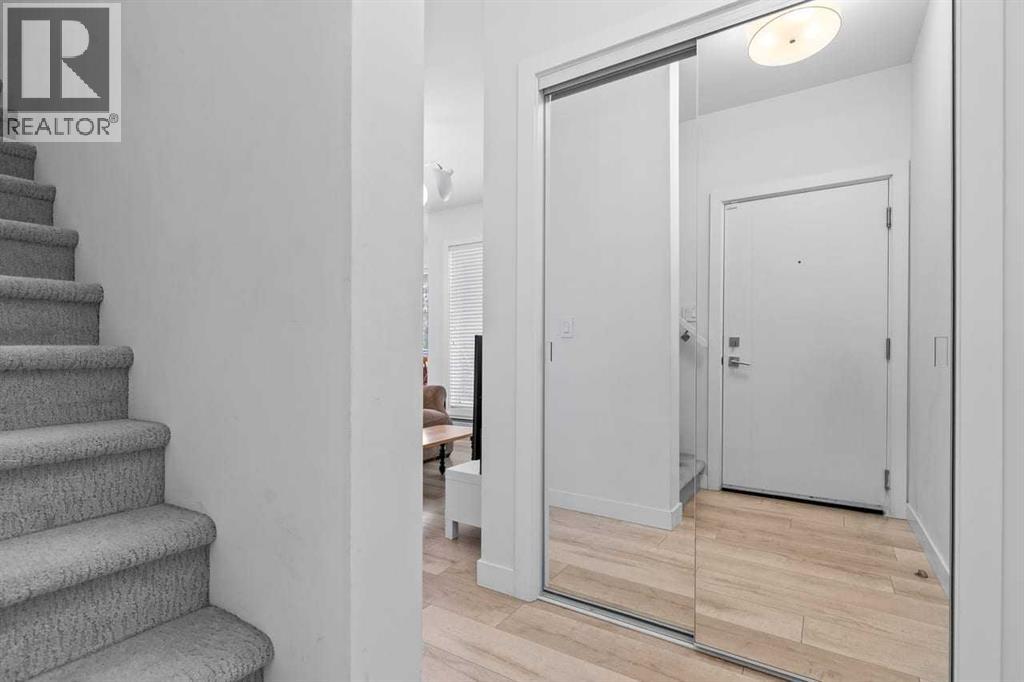 Welcome to Noble by Truman, an exceptional townhome-style residence in the heart of Calgary’s award-winning University District — one of only three communities in Canada where every building meets a minimum Built Green Gold certification. Designed for vibrant urban living with a remarkable Walk Score of 90, everything you need is just steps from your door — parks, cafés, restaurants, shopping, and entertainment. This rare two-level condo with a private exterior entrance offers the feel of a townhome with the convenience of condo living. Inside, you’ll find 2 bedrooms and 2.5 bathrooms thoughtfully laid out across two spacious levels, plus interior access to the building lobby and facilities, and your titled underground parking stall. The main level showcases 9’ ceilings, expansive south-facing windows, and contemporary laminate flooring throughout both floors. The gourmet kitchen is beautifully appointed with quartz counter tops, full-height cabinetry, a designer panel-ready energy-efficient appliance package, LED under-cabinet lighting, and an upgraded island featuring additional drawers and a 12" overhang — perfect for casual seating and entertaining.Upstairs, the bright and airy bedroom level continues with 9’ ceilings, attractive barn doors for closet’s and en-suite bath and premium finishes. Both bedrooms enjoy abundant natural light, and the well-appointed upgraded bathrooms carry through the home’s modern aesthetic. Enjoy not one, but two private south-facing outdoor spaces — a main-floor patio complete with gas line for your BBQ, and morning coffee, and a second upper patio, off the primary bedroom, perfect for evening relaxation outdoors. Hosting guests is effortless with convenient street parking right outside your private entrance, two underground visitor stalls, and additional exterior visitor parking. The location is truly unbeatable — minutes to the University of Calgary, Alberta Children’s Hospital, Foothills Medical Centre, and surrounded by boutiq ue shopping, dining, a theatre, and beautiful green spaces connected by wide pedestrian-friendly sidewalks.Modern design, sustainable living, and an unbeatable lifestyle — this is University District living at its finest. (id:55690)