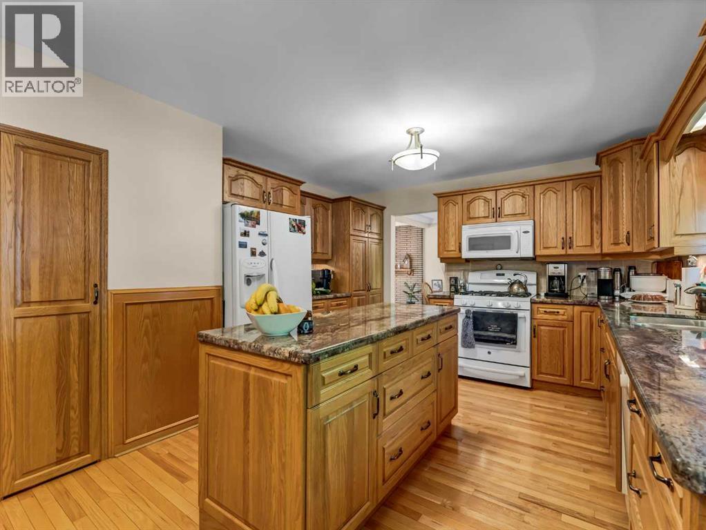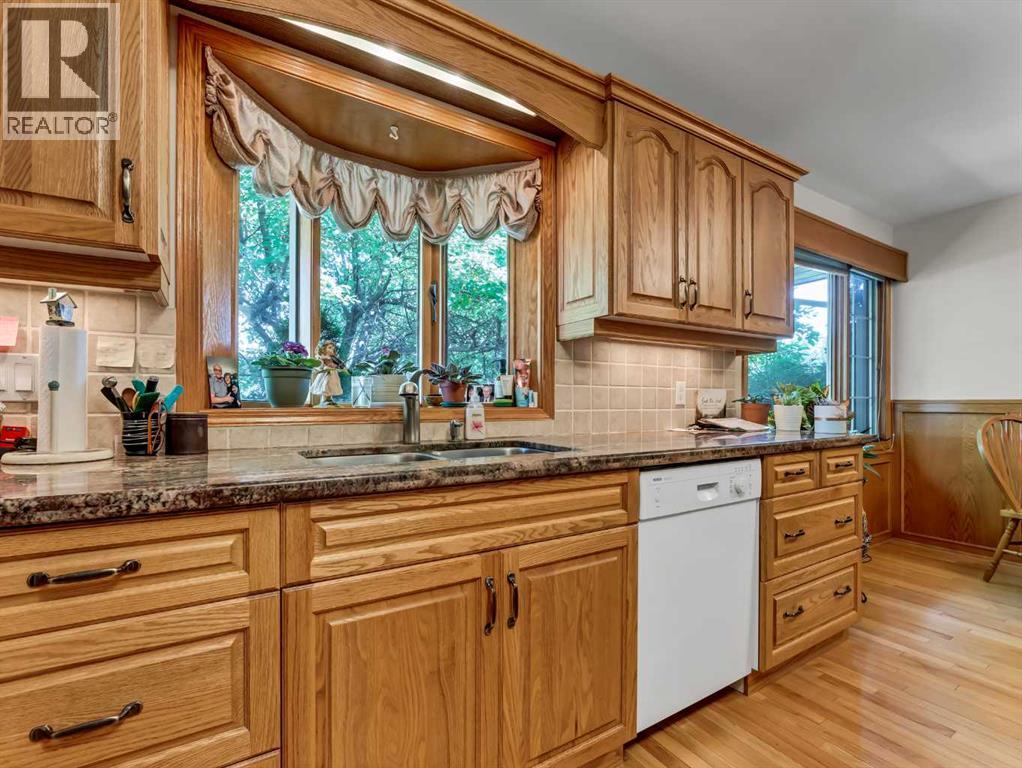 An exceptional opportunity on a large corner lot in the desirable SW Hill area. This well maintained 3 level split offers over 2,000 sq. ft. of developed living space, combining functionality, character, and pride of ownership throughout. The main floor welcomes you with a bright and inviting living room featuring hardwood floors and a cozy gas fireplace framed with classic brick accents. The kitchen is thoughtfully designed with granite countertops, a center island, ample cabinetry, and a convenient breakfast nook, while the separate dining area provides the perfect space for hosting and everyday living. Upstairs, you’ll find 4 generously sized bedrooms and a full 4-piece bathroom, including a primary suite complete with its own 2-piece ensuite. The third level offers added versatility with access to the heated double attached garage and workshop, along with a stunning enclosed four season sunroom; an ideal retreat for plant lovers or a relaxing year-round space. The fully developed basement features a self contained suite with its own private entry, furnace, and hot water tank. This space includes a living room, bedroom, 4-piece bathroom, laundry area, and a functional summer kitchen—perfect for extended family or added income potential. Outside, the maturely landscaped yard offers plenty of room for family enjoyment, while the large driveway and heated double garage provide ample off-street parking. A solid, well cared for home in a great location—ready for its next owners to move in and enjoy. (id:55690)
