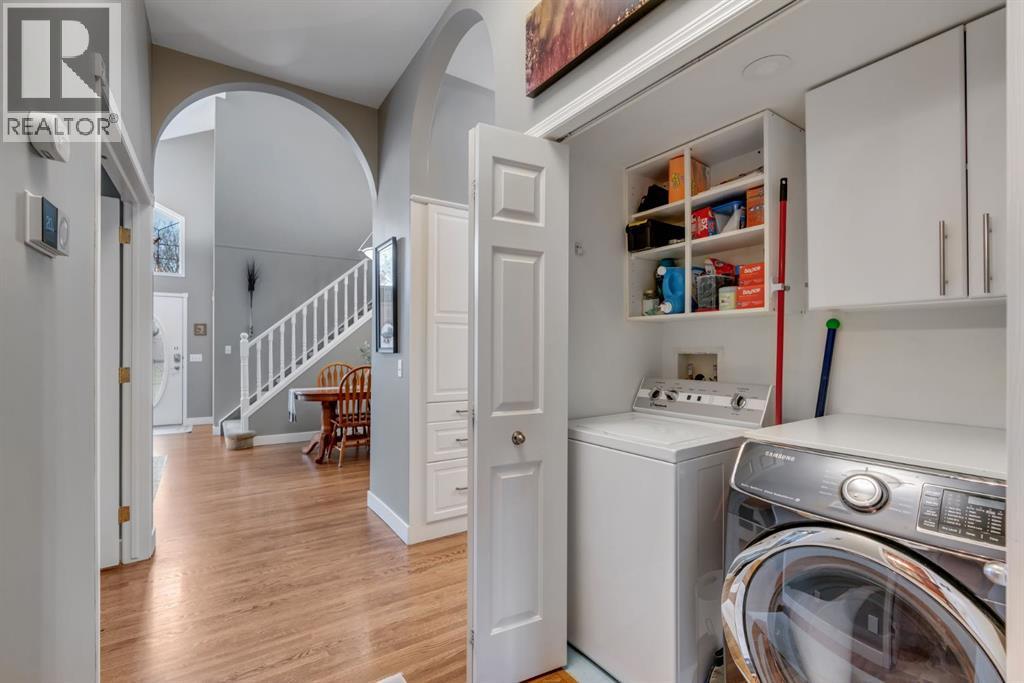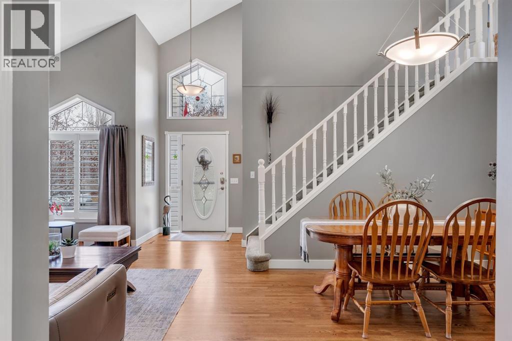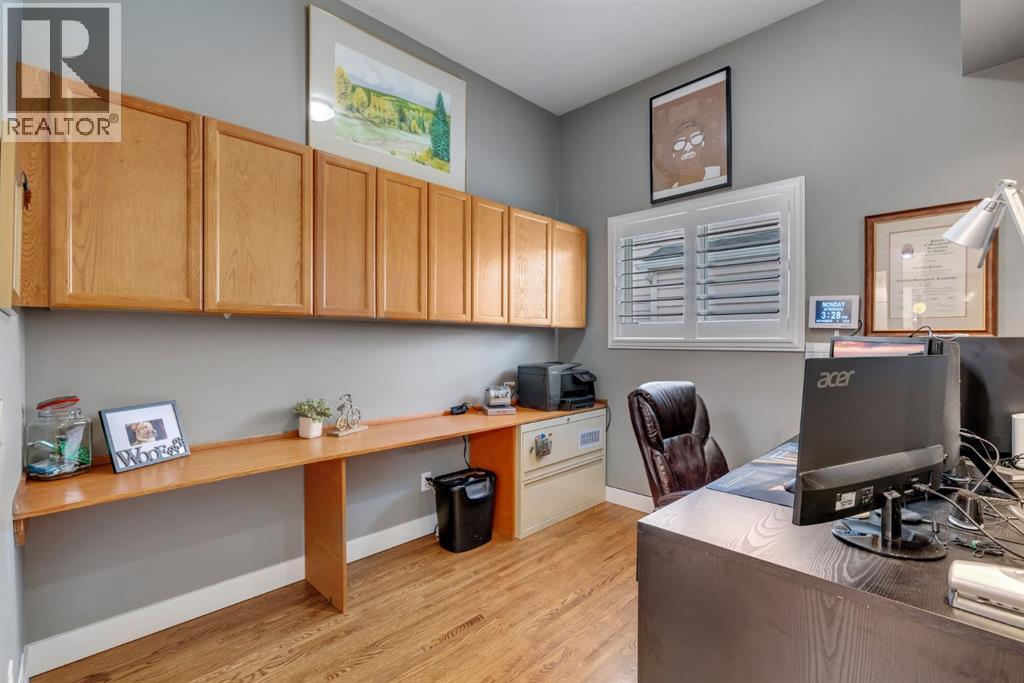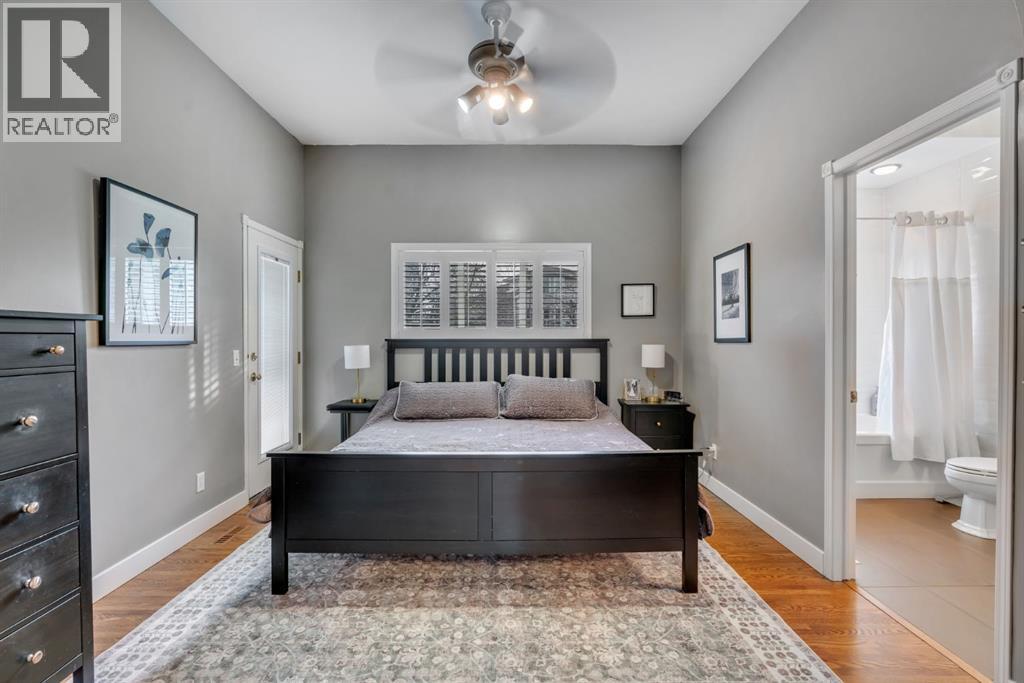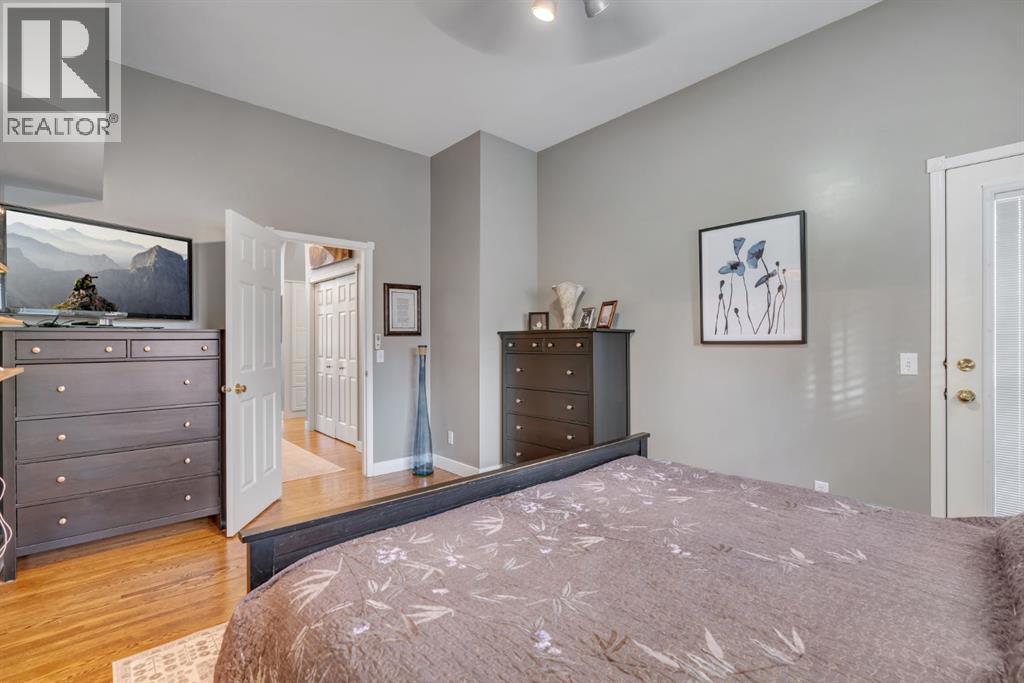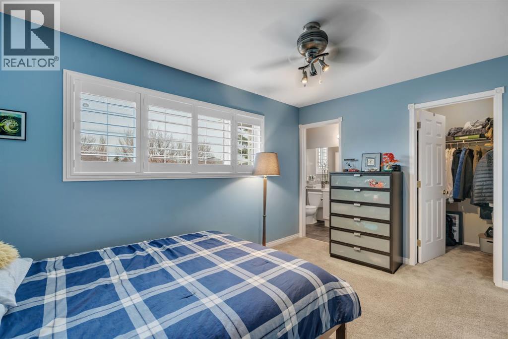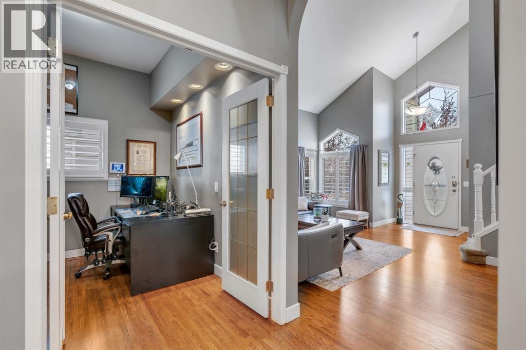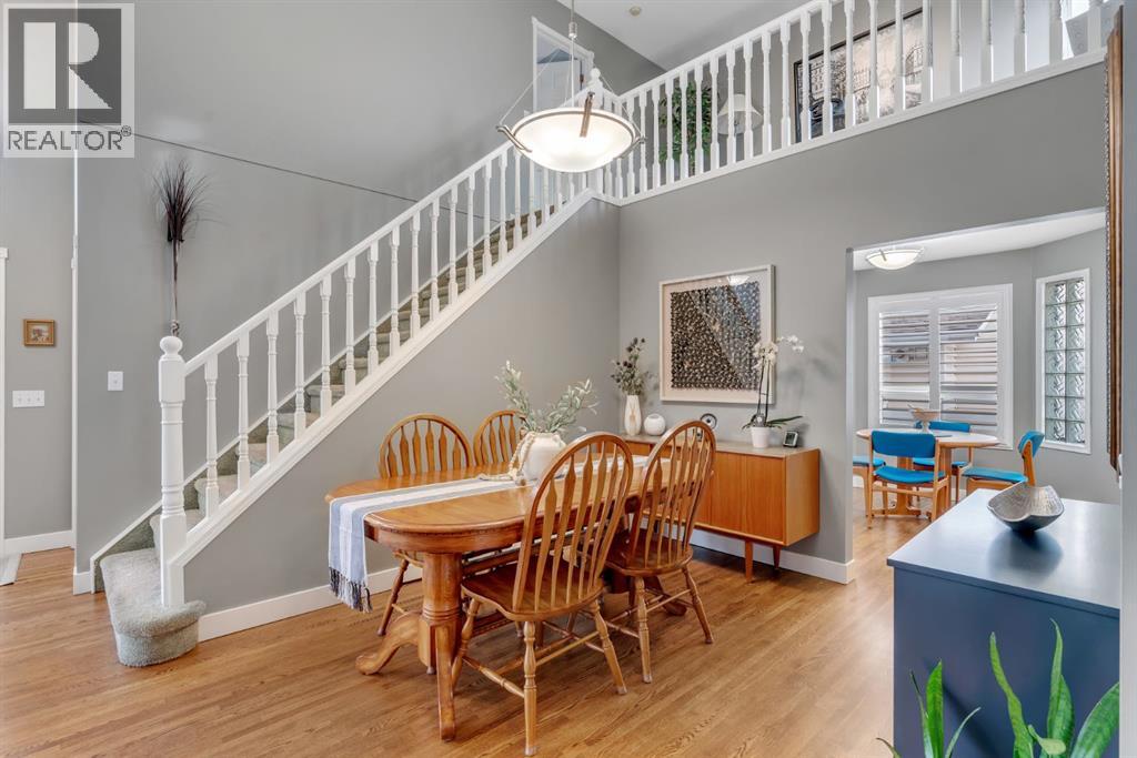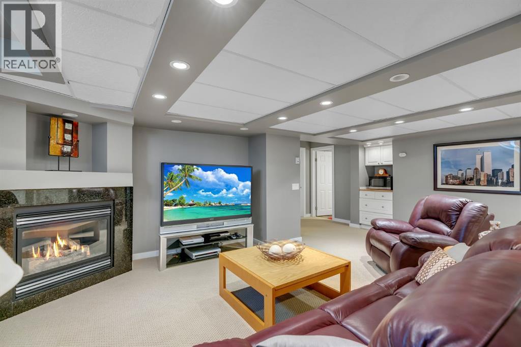 **Open house cancelled** This beautifully upgraded home backs onto greenspace with a sunny south backyard and offers bungalow style living with bonus space for guests or family. As you enter, the main level features soaring vaulted ceilings in the living and dining rooms, refinished hardwood floors throughout, and an upgraded white kitchen with quartz countertops, eating bar, under-cabinet lighting, pull-out drawers, a pantry with organizers, and a newer white glass front Samsung Bespoke fridge with beverage center and induction stove (2023) plus the nook has extra storage. The family room with skylights and beautiful gas fireplace with tile surround provides direct access to the no-maintenance deck overlooking the greenspace. The primary bedroom on the main floor offers the ultimate convenience—no stairs required—and includes a walk-in closet, updated ensuite with new shower and soaker tub and heated floors. It also provides deck access. A main floor den/office, powder room and laundry room complete this ideal layout. Upstairs, the loft is perfect for a reading area or office and the additional bedroom with walk-in closet and ensuite make the perfect private space for older kids, guests, or extended family. The developed basement adds even more versatility with two additional bedrooms (one with a built-in Murphy bed), bathroom with shower, a spacious rec room with a gas fireplace, workout area with cork flooring and plenty of storage. Additional updates and features include: air conditioning, all Poly-B replaced, California shutters, new garage door (2023), newer furnace (2019), extra-wide driveway, gas BBQ line on the deck and backyard shed. This home truly combines the ease of one level living with the flexibility of additional space — a rare and truly special find in Riverbend! Ideally located on one of the community’s best streets, it backs directly onto greenspace and is just a short walk to the Bow River pathways, Quarry Park amenities, and offers quick acce ss to Glenmore Trail and Deerfoot- don't miss out on this great home! (id:55690)
