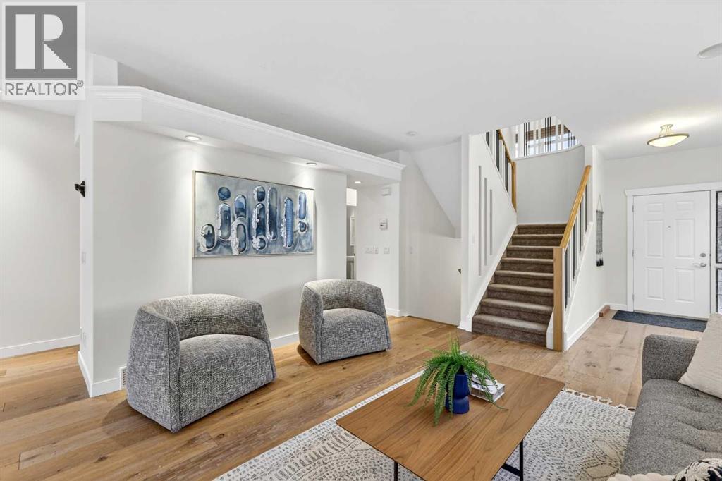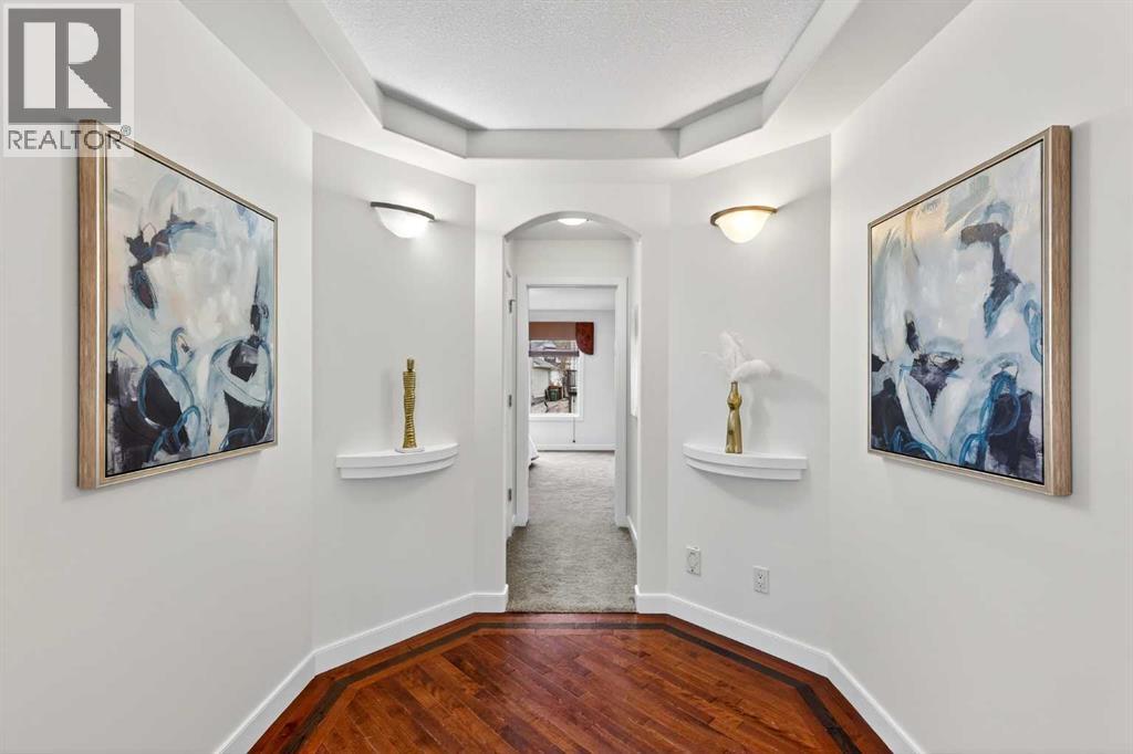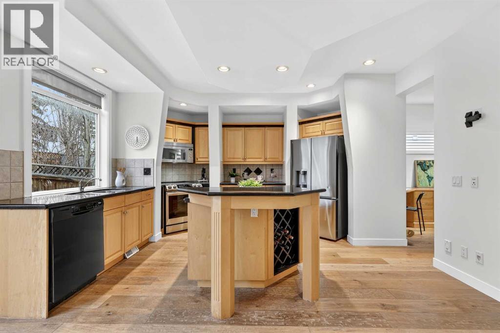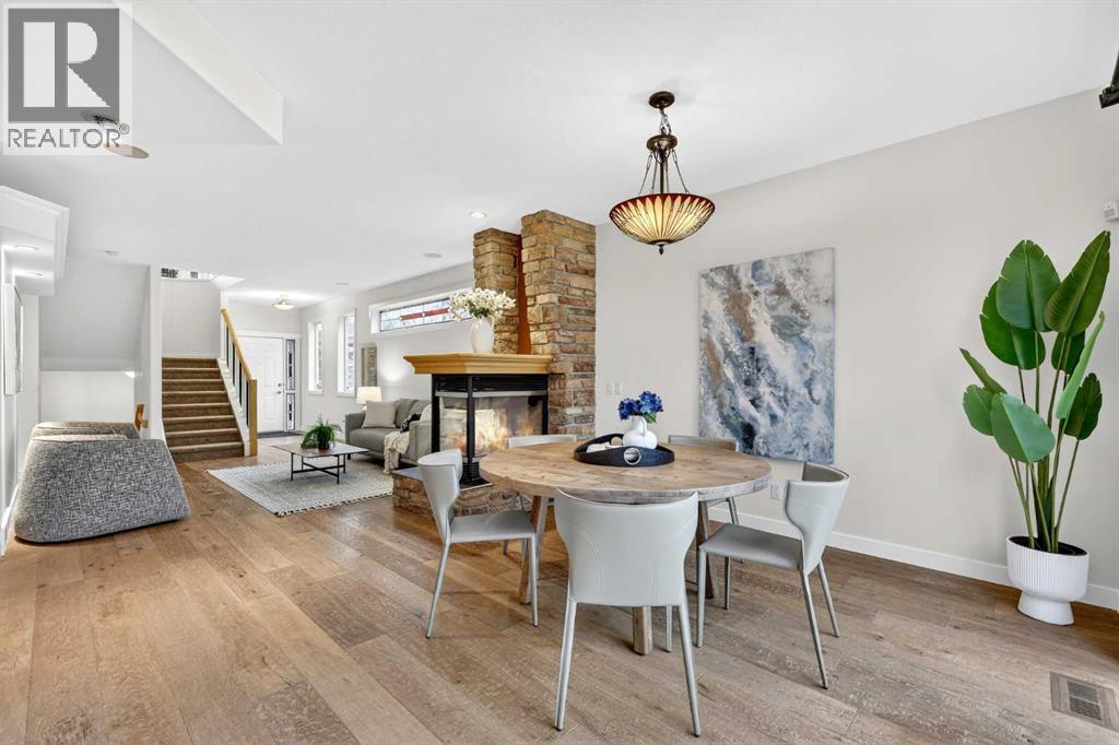 Welcome to an exceptional former estate show home that truly stands apart, offering a rare blend of thoughtful design, premium upgrades, and timeless comfort. Ideally located in the sought-after community of Valley Ridge, this beautifully appointed two-storey residence presents a refined living experience from the moment you step inside. The main level showcases 9-foot ceilings and high-quality engineered hardwood flooring that flows throughout the inviting, open-concept layout. At the heart of the home is a bright, gourmet kitchen featuring rich maple cabinetry, granite countertops, stainless steel appliances, a large central island with wine storage, breakfast bar seating, and built-in shelving. A versatile butler’s pantry—perfectly suited as a home office or additional prep space—adds exceptional functionality. The adjacent living and media area is warm and welcoming, anchored by a striking three-sided fireplace and enhanced with built-in speakers and surround sound, making it ideal for both entertaining and relaxed family evenings. A convenient powder room and combined mudroom/laundry area complete the main floor Upstairs, you’ll find a spacious bonus room with soaring ceilings and a 5.1 surround sound system, creating the perfect setting for a home theatre, games room, or additional family lounge. The primary retreat is a true sanctuary, offering a luxurious five-piece ensuite with dual vanities, a deep soaker tub, and a walk-in shower. Two additional generously sized bedrooms and a four-piece bathroom complete the upper level. The fully developed basement extends your living space with a large recreation/family room, a fourth bedroom, and another four-piece bathroom—ideal for guests, teens, or a private home office. This home continues to impress with its extensive list of comfort-focused upgrades, including central air conditioning, central vacuum, two furnaces, a sprinkler system, and an oversized double attached garage with in-floor heating—an incredibly ra re and valuable feature. Step outside to enjoy your private deck, perfect for summer gatherings or quiet mornings. Surrounded by the natural beauty and charm of Valley Ridge, you’re just moments from parks, golf courses, scenic pathways, schools, shopping, and major roadways, offering effortless access to downtown Calgary and the mountains. With exciting nearby developments and world-class amenities such as COP, Trinity Hills, the Calgary Farmers’ Market, and the Calgary Climbing Centre, this location delivers both convenience and lifestyle. This is a remarkable opportunity to own a former show home loaded with premium features in an outstanding community. (id:55690)