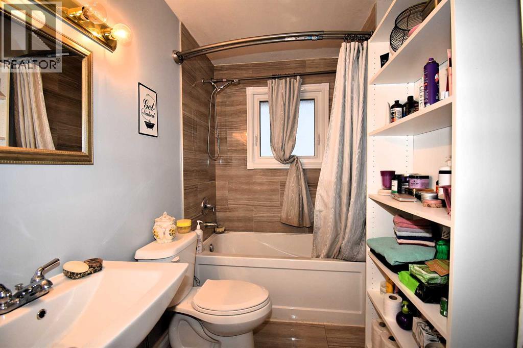 Well looked after home with 2 beds up, 1 down. There is a washer hook-up in the kitchen. Nice and clean, ready to move into. The basement is developed, has a big laundry (wooden clothes rack stays). It also has a big 3 pc bath, a family room & bedroom. The shingles on both the house & garage were redone in 2010, the windows all replaced in 2012. The exterior is carefree stucco. The garage has power & cabinets that stay. The yard is AWESOME! Nicely landscaped with a firepit area, fenced off spot with garden boxes. This home & yard are quaint & cozy. There is a ton of parking - big RV spot, parking in front of it, a second drive beside that, and a third drive leading to the garage. Tons of parking!!! This bungalow is a great starter home or perfect downsize home. (id:55690)