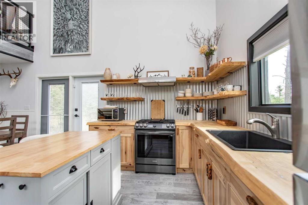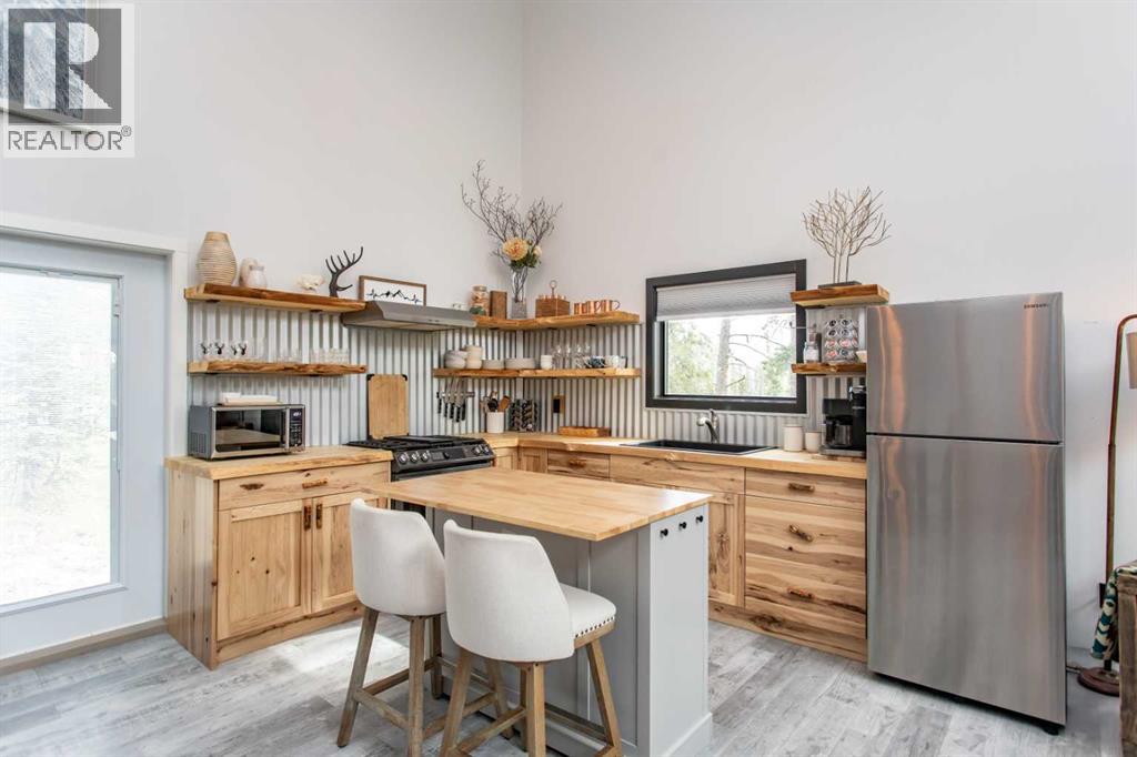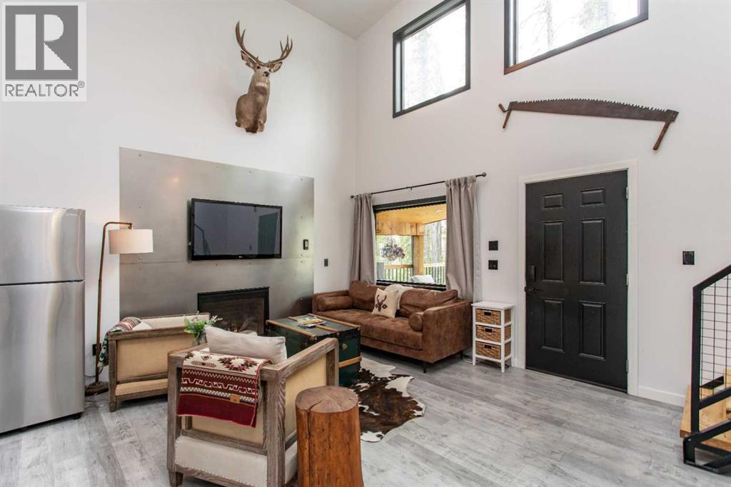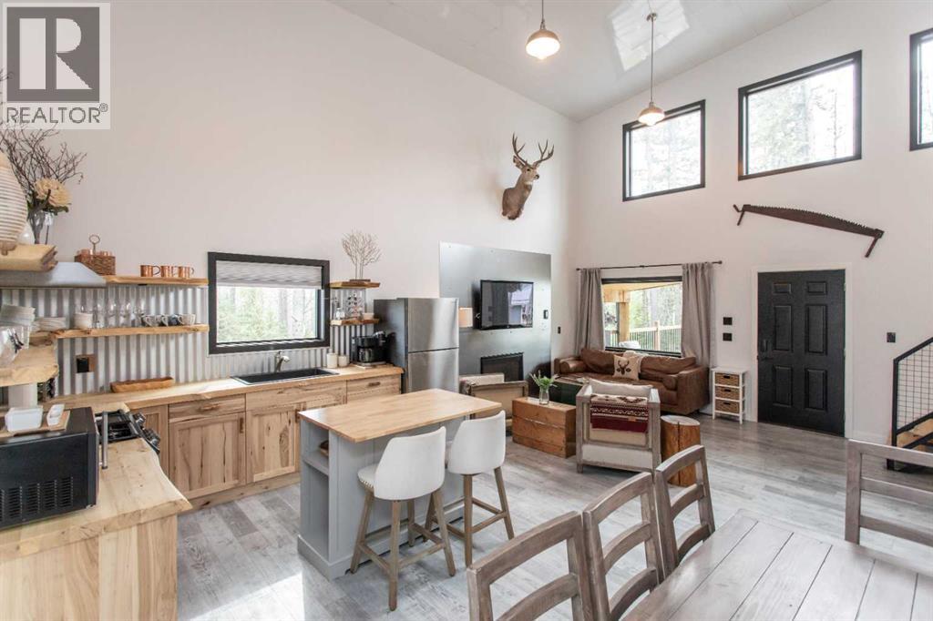 This property has operated as a successful county-approved short-term rental and is being sold turnkey, fully furnished and equipped. The property can be easily managed remotely, with security, water, sewer and propane systems that can all be monitored and managed off-site. 2026 bookings are already showing strong consistent growth compared to 2025.Welcome to a truly unique mountain retreat located in the growing recreational destination of Nordegg. Set on a rare 1.46-acre private, flat and fully usable treed lot, this beautiful cabin offers privacy, functionality, and year-round enjoyment in one of Alberta’s most stunning and up-and-coming outdoor playgrounds.Built in 2019, this 1.5 storey cabin features an open concept layout with soaring ceilings, large windows, and a warm modern rustic design. The custom poplar kitchen with live-edge countertops, open shelving, new stainless steel appliances with propane range and centre island which creates a space that is both functional and visually stunning. The main living area includes a cozy propane fireplace, perfect for relaxing after a day outdoors. The home offers 2 good sized bedrooms, 1 full bathroom with custom cedar shower, main floor laundry, and a loft space for additional sleeping or living area. Built for efficiency and year-round comfort, the cabin features 2x6 wall construction with additional exterior insulation, an ICF foundation, tankless hot water, air conditioning, a 2200-gallon water cistern, and septic tank with heat-traced lines.The property itself truly sets this listing apart. The lot is significantly larger and more usable than many surrounding properties, with flat topography, mature trees for privacy, a large parking area, camping space, storage shed, and future building potential for a garage with carriage suite or additional structure (subject to approval). The property has been fire-smarted with deadfall removed and landscaping completed with fresh gravel throughout. Enjoy the outdoor liv ing areas including the composite front deck and secluded fire pit area near the rear of the property, all surrounded by beautiful mature forest.Whether you’re looking for a private recreational property, a mountain getaway, or an investment opportunity, this Nordegg property offers a rare combination of location, land, and cabin design.GST may be applicable to the sale and is in addition to the purchase price. Buyers should consult their accountant regarding GST implications. (id:55690)
