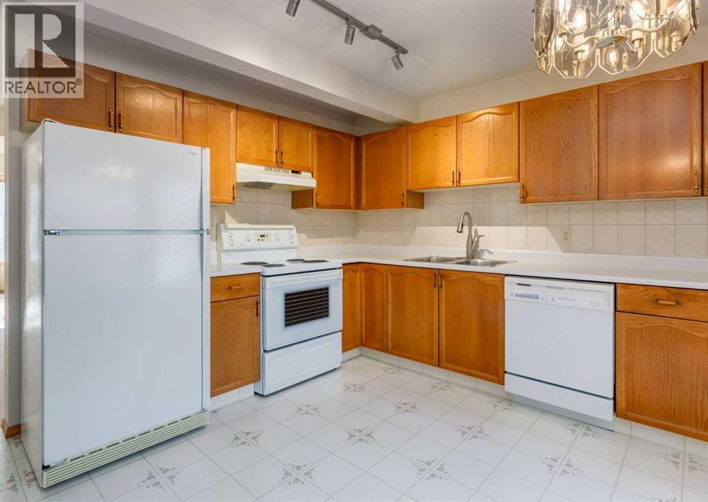 Welcome to this spotless 3-bedroom townhouse nestled within a beautifully maintained, pet-friendly complex. This charming home offers the perfect balance of peaceful natural surroundings and everyday convenience, ideally located close to schools, shopping, Fish Creek Park and Glenmore Park with quick access to the Ring Road. The bright and inviting main floor features a spacious living and dining area highlighted by a cozy gas-burning fireplace and large bay windows that fill the space with natural light. The functional oak kitchen showcases classic oak cabinetry, white appliances, tile backsplash and a generous bay window, creating a warm and welcoming space for cooking and casual dining. Step outside to your private deck backing directly onto a lush green belt with mature trees — the perfect spot to enjoy morning coffee, summer BBQs, or simply relax and take in the peaceful setting. Upstairs you will find three well-sized bedrooms including a spacious primary bedroom with dual closets, along with a full bathroom that completes the upper level. Additional highlights include beautiful mature landscaping throughout the complex, reasonable condo fees, an assigned parking stall located right in front of the unit with an additional stall available for rent, and plenty of nearby visitor parking. Significant exterior upgrades have already been completed in recent years including new siding, shingles, decks and railings, providing peace of mind for years to come. Enjoy an active lifestyle with South Glenmore Park, extensive bike paths, and off-leash dog parks just minutes away. With schools within walking distance and quick access to major routes, this is an exceptional opportunity to own in a well-managed complex in a highly convenient location. (id:55690)