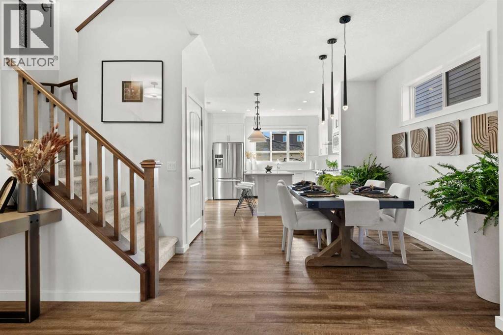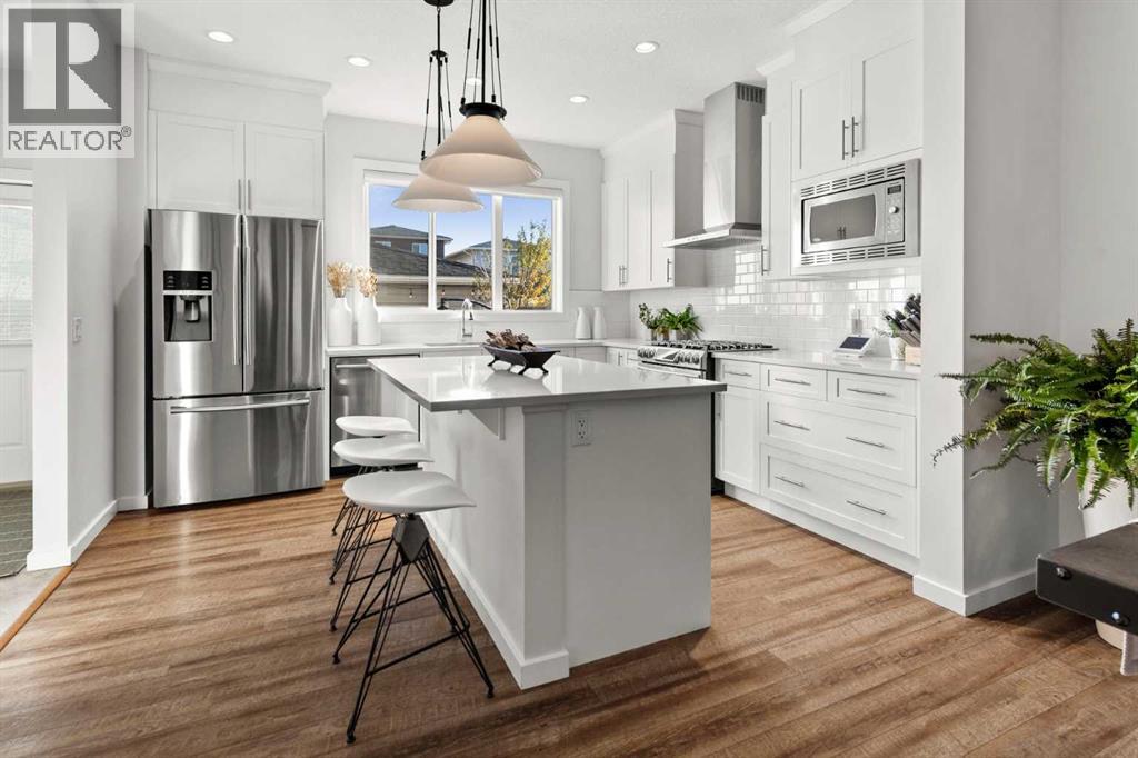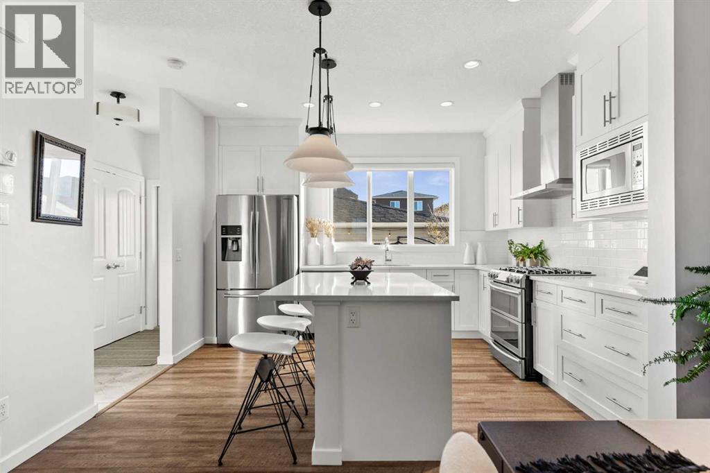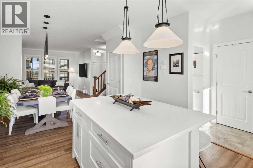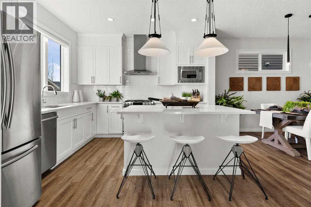 Immaculate and stunning! This 3 bedroom, 2.5 bathroom home is tucked away in the desirable west Cochrane community of Heritage Hills. Combining modern comfort with timeless charm, this property offers the perfect balance of style, functionality, and location. From the inviting front porch to the thoughtfully designed interior, every detail has been carefully considered. The open concept main floor is filled with natural light, creating a warm and welcoming atmosphere. The spacious living room flows seamlessly into the dining area and modern kitchen complete with sleek stainless steel appliances including a gas range, ample cabinetry, and plenty of counter space — perfect for family meals or entertaining guests. Upstairs, you’ll find three bedrooms, including a generous primary suite featuring a walk-in closet and private ensuite bathroom. Two additional bedrooms, full laundry room and a full bath provide plenty of room for family or guests. The basement offers endless potential to customize the space to suit your needs — whether it’s a recreation room, home office, gym or additional living area. Outdoors, enjoy a low maintenance landscaped rear yard with a patio ideal for relaxing or hosting summer barbecues. The oversized detached double garage provides ample parking and storage space, and features a secondary overhead garage door offering convenient backyard access. Located just steps from a playground and minutes from amenities and scenic walking trails, with exceptional access to the majestic Rocky Mountains, this home perfectly blends convenience and community. Experience the best of Cochrane living in this exceptional Heritage Hills home. (id:55690)