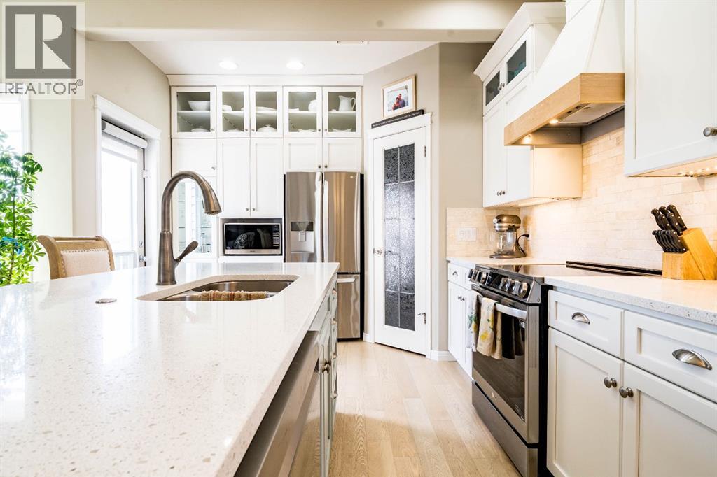 Welcome to this beautifully maintained two storey home that is truly move-in ready. With six bedrooms and four bathrooms, there is room here for everything and everyone without sacrificing style or comfort.The main floor offers a bright, open concept layout that feels both spacious and welcoming. The kitchen has been thoughtfully updated with quartz countertops, added cabinetry for extra storage, a modern backsplash, and newer LG appliances (stove and fridge approx. 3 years old, dishwasher approx. 1.5 years). It flows seamlessly into the living area with a cozy gas fireplace, making it perfect for both everyday living and entertaining. Main floor laundry adds that extra level of convenience.The layout is incredibly functional, featuring a primary bedroom on the main floor, three bedrooms upstairs, and two additional bedrooms and a bathroom with in floor heat in the fully developed basement. Large basement windows bring in plenty of natural light, making the lower level feel anything but “basement.”Throughout the home, you’ll find a beautiful mix of hardwood, cork, and carpet all in excellent condition and clearly well cared for.The heated, finished garage is a standout with new LED lighting, and outside, the backyard is beautifully landscaped with underground sprinklers and drip lines to keep everything looking its best. The fencing is built to last, with posts reinforced by steel set in concrete, solid, secure, and not going anywhere.Additional updates include a roof done in 2020 with 25-year shingles and a hot water tank approximately 5 years old.This is one of those homes where you can feel how well it’s been cared for the moment you walk in. Clean, solid, and completely ready for its next owners (id:55690)