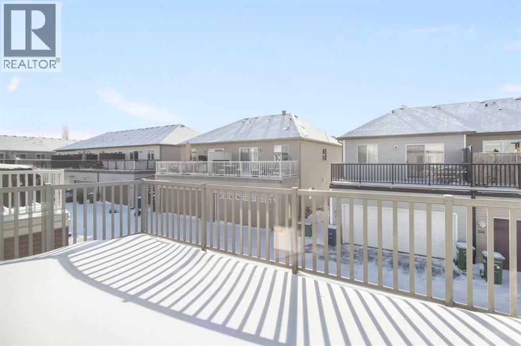 Welcome to this stylish and affordable end-unit two-storey townhome in desirable Windsong, offering unbeatable value with no condo fees, a double attached garage, and a massive south-facing rooftop patio. Located on a quiet, family-friendly street with abundant parking, this home features a front yard, side green space, attractive landscaping, and a spacious covered front porch. Inside, a bright entryway leads to an open-concept main floor with a generous living room, dining area, and well-designed U-shaped kitchen complete with stainless steel appliances, electric stove, built in dishwasher, pantry, raised eating bar, and ample cabinetry and counter space. A mudroom off the kitchen provides convenient access to the garage and main floor half bath. Upstairs offers a versatile bonus/tech space with direct access to the sunny Duradek rooftop patio, along with three well-sized bedrooms including a primary suite with walk-in closet and 4-piece ensuite, plus an additional full bathroom. The unfinished basement includes laundry, bathroom rough-in, and room for future development. Perfect for first-time buyers, downsizers, or anyone seeking a low-maintenance lifestyle, this move-in ready home is close to schools, parks, shopping, dining, medical services, and scenic pathways, delivering exceptional comfort, functionality, and value in a vibrant community. (id:55690)