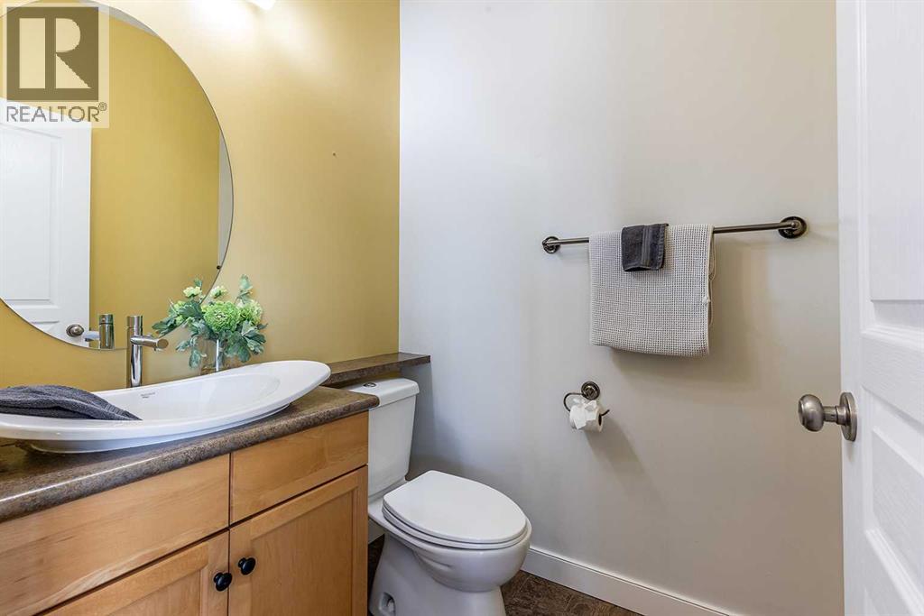 Executive Walk-Out Living with Sweeping River Valley Views - 137 Ranchlands Blvd NEFrom the moment you arrive, this executive walk-out half duplex makes a lasting impression with its distinctive architecture, charming curb appeal, and welcoming covered front veranda. Step inside to a spacious entryway with a generous closet—ideal for busy households and everyday convenience. The main floor is thoughtfully designed for both comfortable daily living and effortless entertaining. At the front of the home, the inviting living room is accented by stylish acoustic panel features and modern LED lighting, creating a warm yet contemporary atmosphere. Toward the back of the home, the space opens to the kitchen and dining area—where the true showstopper awaits. Unforgettable river valley views provide a breathtaking backdrop and can be enjoyed from nearly every angle.The kitchen is both functional and inviting, offering ample cabinetry, granite countertops, and excellent workspace for the home chef. Step outside to the expansive covered deck, complete with sunshade and a gas line for your BBQ—an ideal setting to cook, dine, or relax while taking in the sweeping scenery. The main level also includes a convenient powder room, laundry area, and a smartly designed built-in desk with granite countertop, tucked neatly into a functional workspace nook. Upstairs, the primary suite is a true retreat featuring a walk-in closet, a spacious ensuite with heated floors, and its own private balcony, perfectly positioned to take in beautiful sunrise views and start your day with morning coffee. A versatile bonus room sits between the bedrooms, ideal for a family room, home office, or play space. The second generous bedroom also offers a walk-in closet and is serviced by a full 4-piece bathroom. The fully developed walk-out basement adds even more living space, featuring a comfortable family room, dining area with fridge and coffee bar, a large additional bedroom, a 4-piece bathroom, and ample storage. From here, enjoy direct access to the fully fenced and landscaped backyard with underground sprinklers, as well as the attached garage and large driveway conveniently located off the alley. Bonus Value: This home is being offered fully furnished, with the exception of a few staging pieces—providing a rare, turnkey opportunity for buyers seeking a seamless move-in experience. Offering exceptional comfort, thoughtful design, and views that simply can’t be replaced, this is a truly unique property. Homes like this don’t come along often—schedule your private showing today. (id:55690)