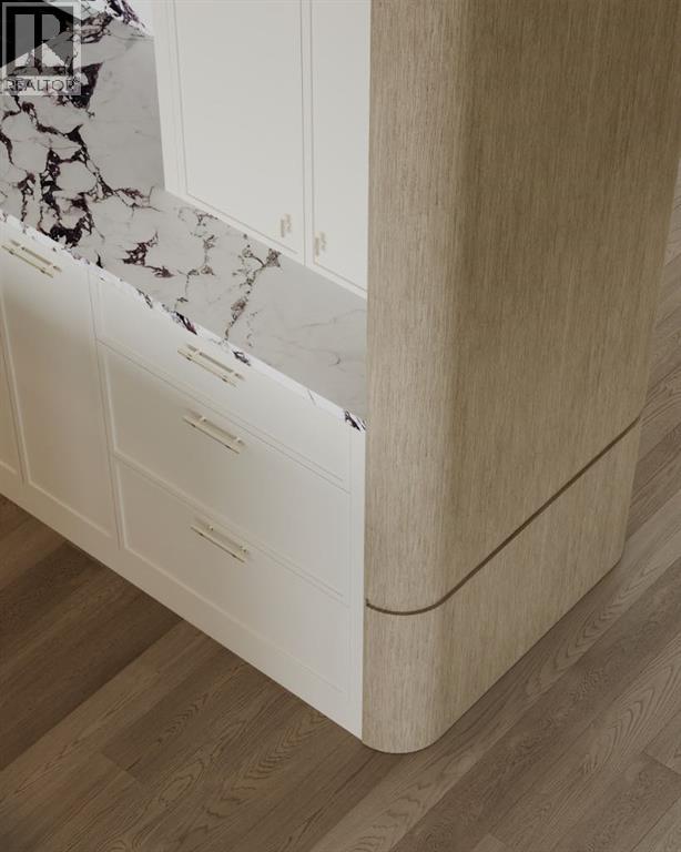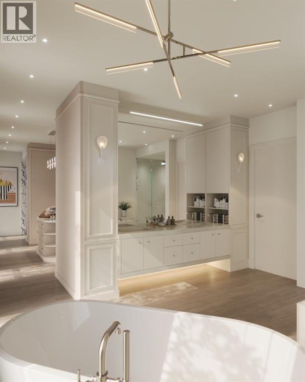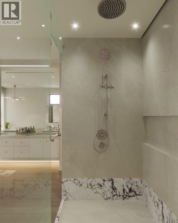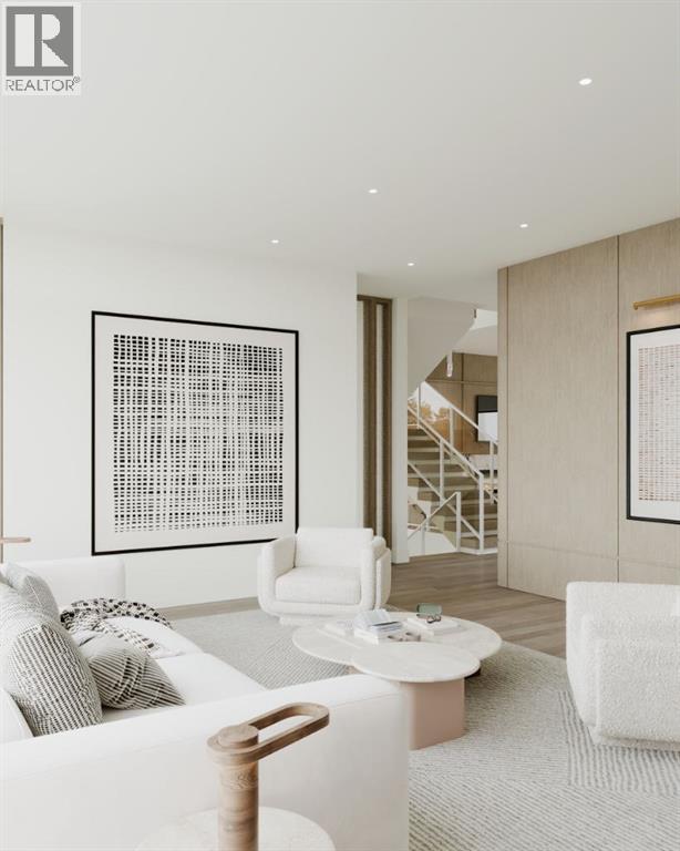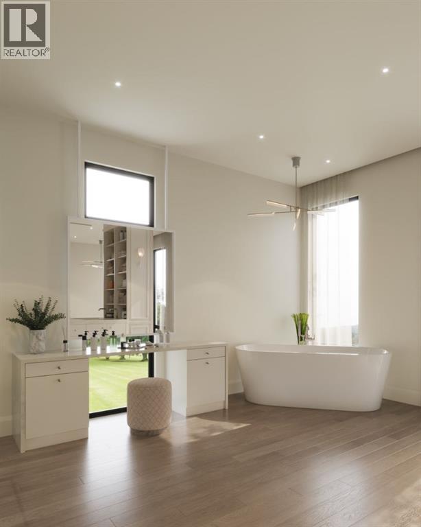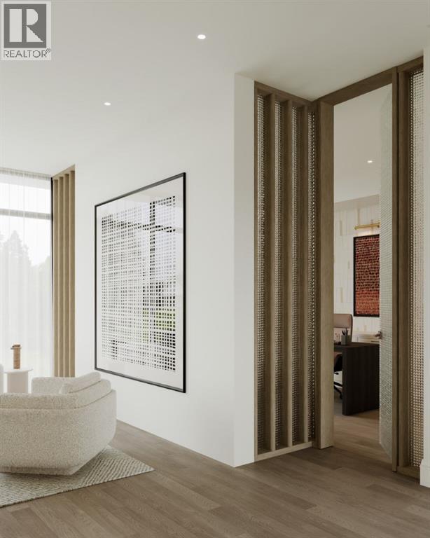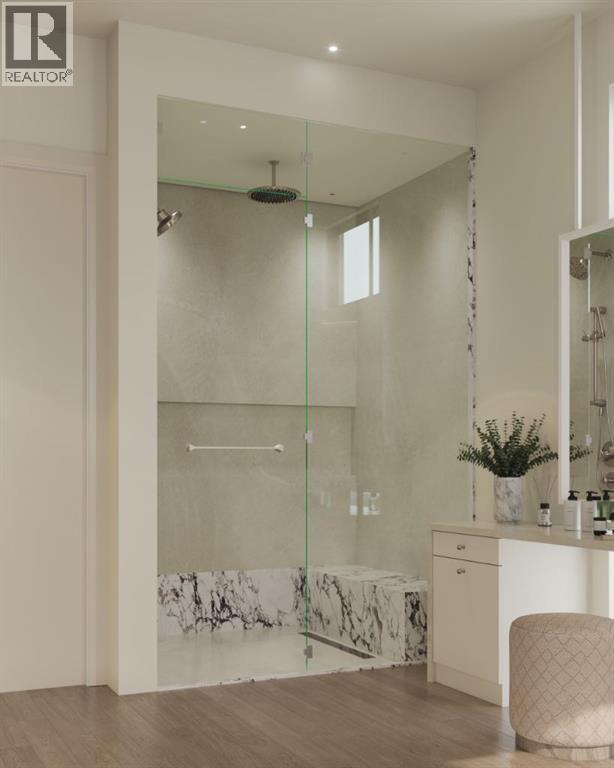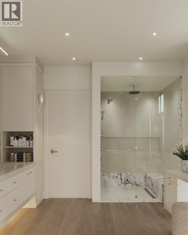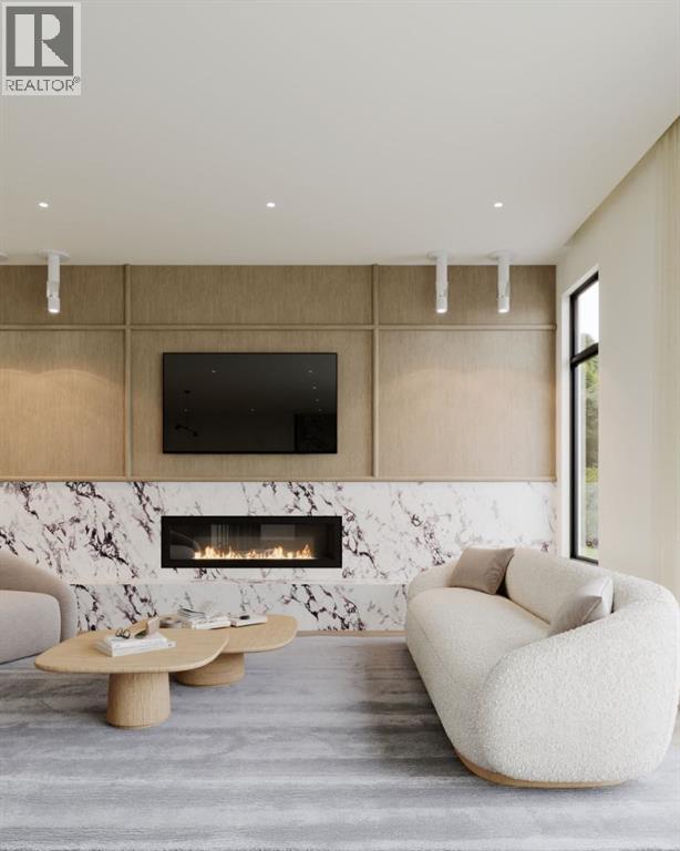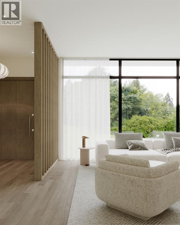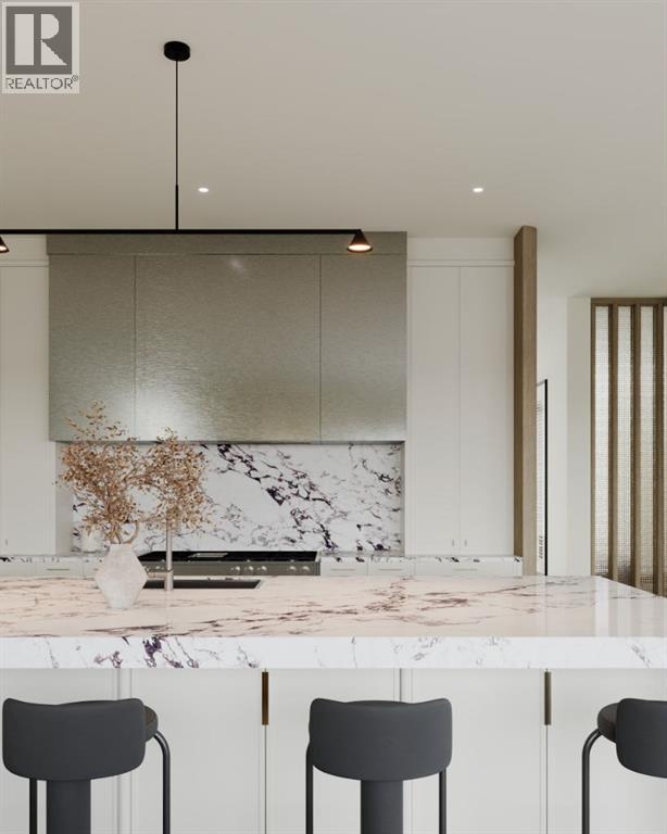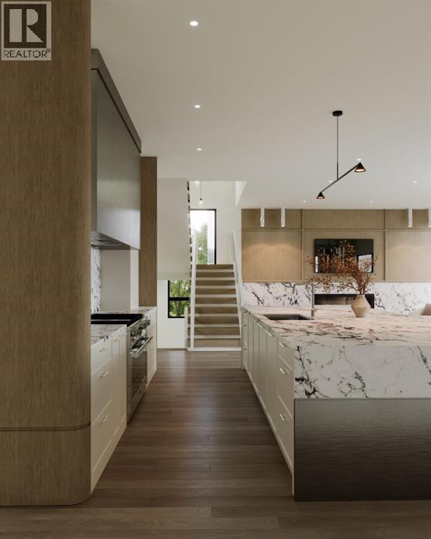Experience an extraordinary expression of modern luxury in this architecturally striking residence designed by Midnight Designs, with interiors curated by Stephanie Martin and meticulously built by Ambedo Homes. Thoughtfully composed with clean contemporary lines, expansive windows, and a refined material palette, the home offers over 5,500 square feet of total developed living space, including a fully finished lower level and a rare attached triple tandem garage. The main floor unfolds through a dramatic open concept layout where natural light fills the interiors, and wide plank hardwood flooring and warm textures create an inviting yet sophisticated atmosphere. A welcoming foyer introduces the home’s architectural language, while a private main floor office offers a refined workspace with custom built in cabinetry. The heart of the home is the stunning chef’s kitchen designed as both a functional workspace and architectural showpiece, highlighted by an oversized waterfall island finished in bold stone with rich burgundy veining, custom cabinetry with integrated hardware, and a concealed range wall framed by textured metal panels and full height stone surfaces. Premium appliances are complemented by a fully equipped walk through pantry with additional prep space and storage, while the adjacent dining and living areas flow seamlessly together, anchored by a striking linear fireplace set within a dramatic feature wall, custom oak panelling, and expansive windows. A thoughtfully designed mudroom with built in storage connects directly to the attached triple tandem garage, while sculptural lighting, curved millwork transitions, wood stair treads, and a dramatic staircase illuminated by large picture windows add architectural presence throughout the home. The upper level offers four bedrooms, including an exceptional primary retreat, a central loft style bonus space, and a convenient laundry room with built in cabinetry. The primary suite unfolds through a series of ele gant spaces beginning with the serene bedroom and continuing through a dressing gallery lined with windows into a boutique style walk through wardrobe with custom cabinetry and a center island. The spa inspired ensuite features a freestanding soaker tub beside oversized windows, custom double vanities with brass hardware, in floor heating, and a large walk in steam shower finished with full height stone tile, bench seating, and dual rainfall and handheld fixtures. The fully developed lower level expands the home’s functionality with a spacious recreation and media lounge, gym, one additional bedroom, and a full bathroom ideal for guests or extended family. Situated on a quiet tree lined street in one of Calgary’s most sought after inner city communities, this exceptional residence offers a rare combination of architectural sophistication, curated interiors, and elevated modern living just minutes from parks, schools, and the city’s best amenities. Call today to book your private tour! (id:55690)
