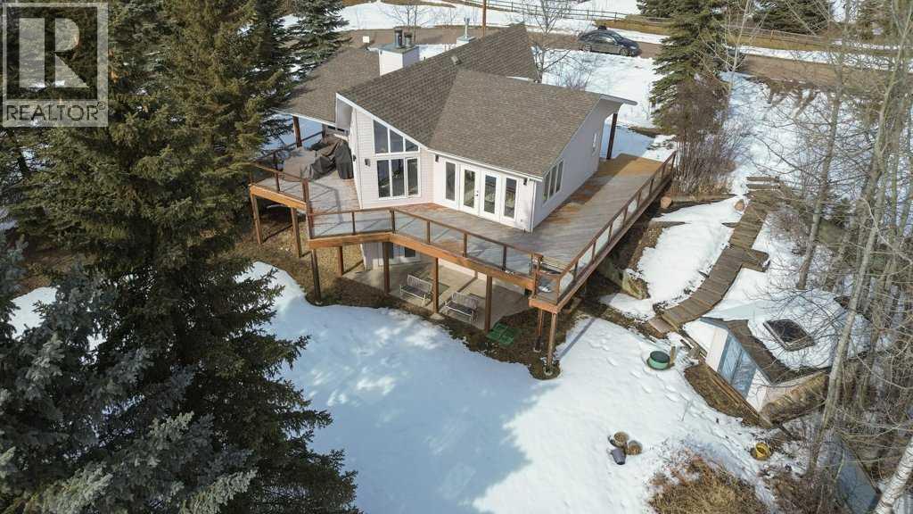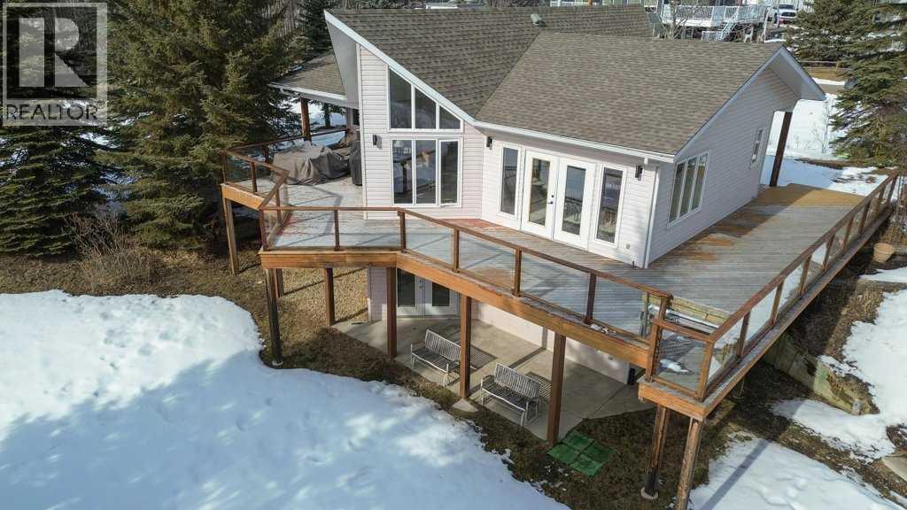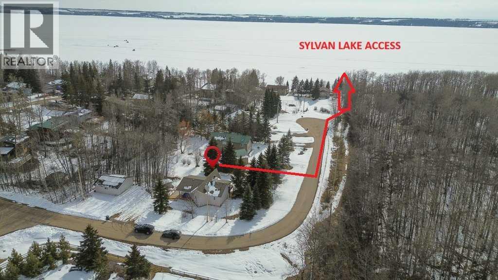Just steps from the sunny west-facing shores of Sylvan Lake, this inviting home offers the perfect blend of comfort, space, and year-round enjoyment. Complete with the rare bonus of lake access and BOAT SLIP! Inside, soaring vaulted ceilings create a sense of openness, while expansive windows surround the living spaces, flooding the home with natural light and seamlessly bringing the outdoors inside. The large living room is anchored by the aroma of the wood burning fireplace, making it ideal to unwind after a day on the lake. The spacious kitchen features warm oak cabinetry, crisp white appliances, and a central island for additional seating. Dine inside or step out on to the massive wrap around deck and soak up the sun throughout the day. The walkout basement expands your living space with a fantastic family room. Another wood burning fireplace welcomes you with warmth to this lower level. The versatile flex space could accommodate a pool table or games area. Two generous bedrooms and 4-piece bathroom are perfect for company. Sliding glass doors lead directly to the backyard, offering easy access to the outdoor living space. The double detached garage provides plenty of indoor parking, and the large shed offers storage for yard equipment and lake toys. Whether you are looking for a weekend escape or a full-time retreat, this exceptional property offers an incredible opportunity to embrace a Life at the Lake! Furniture and Furnishings negotiable. (id:55690)