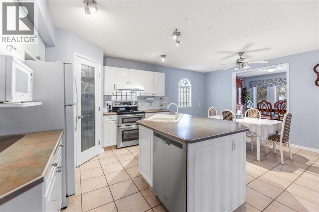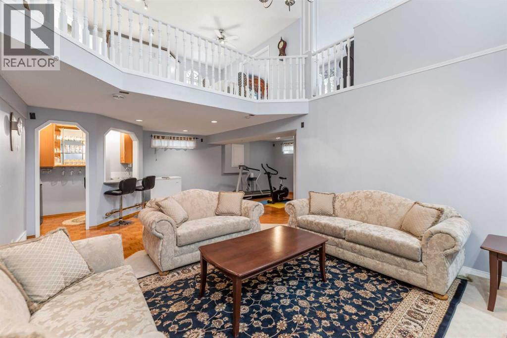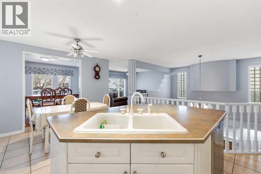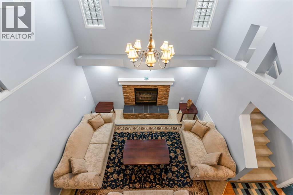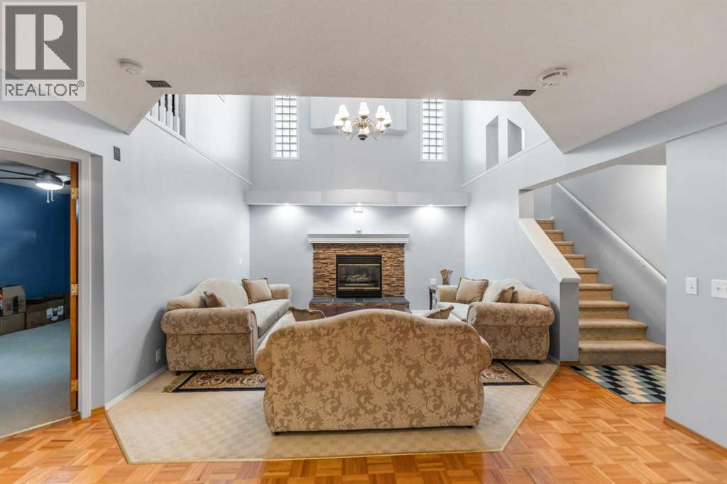 Very rare concept of open to above basement plan & custom-built two-storey family home featuring 4 bedrooms and exclusive lake access. This well-designed open-concept layout welcomes you with a spacious foyer finished in ceramic tile, flowing seamlessly into the bright kitchen and dining nook. House has central air conditioning and water softener as well. The kitchen offers a large island, corner pantry, and overlooks the inviting sunken family room complete with a stone-faced gas fireplace.The main floor also includes living and dining areas with hardwood flooring and direct access to the deck and backyard—perfect for entertaining.Upstairs, you’ll find four generously sized bedrooms. The primary suite features a 4-piece ensuite, walk-in closet, and a private retreat area with patio doors leading to a balcony. A vaulted-ceiling den with skylights and a second fireplace adds a unique and cozy touch to the upper level.The fully developed basement expands your living space with a comfortable family room with gas fireplace, games area, bar, fifth bedroom, and a 3-piece bathroom.Complete with a double attached front-drive garage and lake access, this is an ideal home for comfortable family living and entertaining. (id:55690)