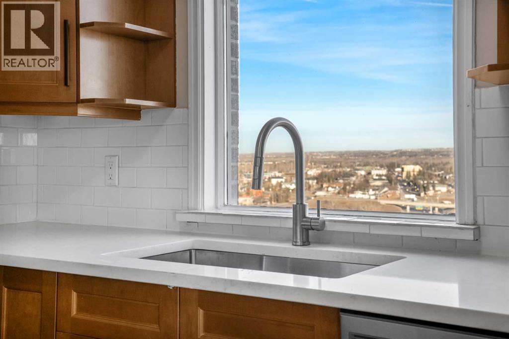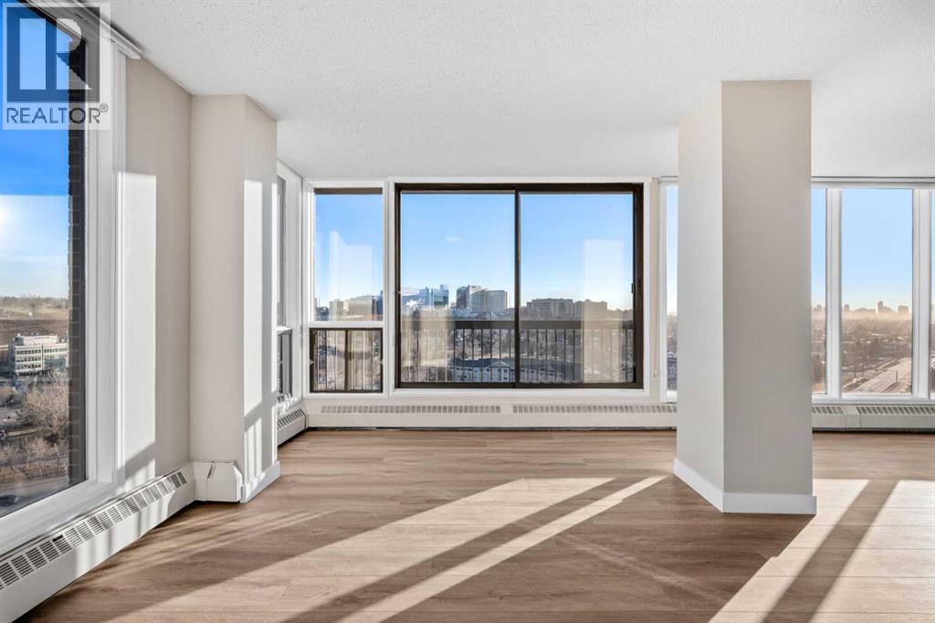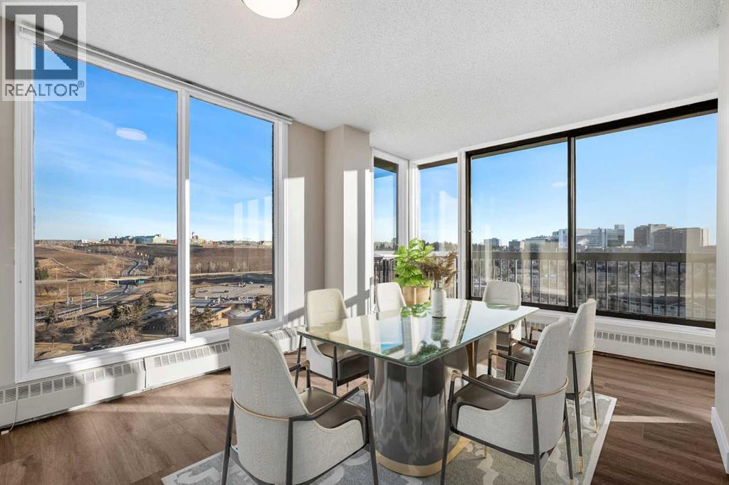 Welcome to Riverside Towers in Point McKay, one of Calgary's most desirable inner-city 18+ high-rise communities, perfectly situated along the banks of the Bow River and just minutes from downtown. This updated 2-bedroom, 2-bathroom corner unit feels like a luxurious hotel and is just minutes from downtown. It boasts stunning floor-to-ceiling, 180-degree panoramic views of the Calgary skyline and the scenic northwest rolling hills.Inside, the bright and open layout has been freshly painted, creating a functional and inviting space perfect for everyday living and entertaining. Thoughtful updates include wide neutral luxury vinyl plank flooring throughout, a beautifully renovated kitchen with solid wood cabinetry featuring dovetail drawers, imported quartz countertops, a tiled backsplash, and brand-new stainless steel appliances. Natural light fills the space, highlighting the modern finishes and expansive views.The primary bedroom serves as a private retreat, complete with a walk-in closet and a 2-piece ensuite. The generously sized second bedroom is versatile, suitable for a roommate, guest bedroom, or home office. The main bathroom features an oversized vanity with ample storage and a walk-in shower. Additional conveniences include in-suite laundry, extra in-suite storage, and upgraded lighting throughout.This home comes with one underground heated and secured parking stall, a separate storage locker, and access to a car wash bay in the parkade. Residents benefit from 24-hour concierge service, enhancing security and fostering a true sense of community. The amenity-rich complex includes access to a fitness center with a pool, a liquor store, a dental center, a library, an indoor golf range, a hot tub, a spa, and indoor pickleball courts currently under construction (discounted membership available). You will never want to leave!Located just steps from the Bow River pathway system, Edworthy Park, Foothills and Children's Hospitals, the University of Calgary, and with quick access to downtown and the mountains, this is urban living at its finest and did i mention the building is super pet friendy? Whether you're enjoying daily river walks or taking advantage of the unbeatable location, this home offers exceptional lifestyle, comfort, and value. Book your private showing today. (id:55690)