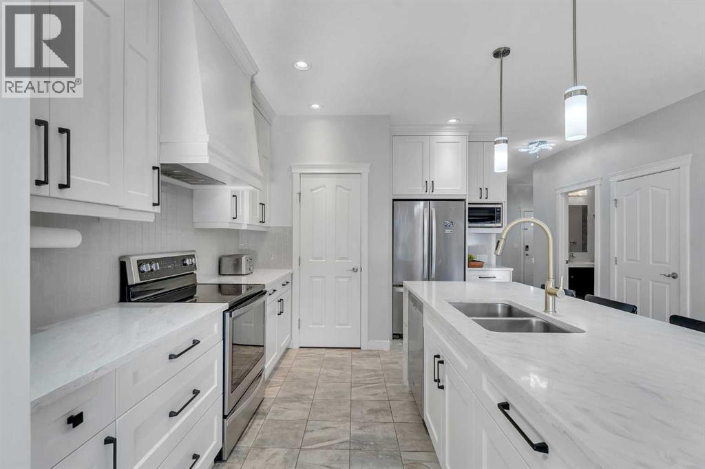 Calling all car and toy enthusiasts, hobbyists, and savvy buyers! This custom-built air-conditioned home offers just over 2,250 sq. ft. of upgraded living space with an illegal basement suite, solar panels (valued aprox. at $23,000), two garages, 5 bedrooms, 4 bathrooms and RV parking. This home is not only energy-efficient but also sufficient for the whole family and more. Step inside to discover a thoughtfully designed main floor that features a bedroom and full bathroom, ideal for guests, aging parents, or a convenient home office. The stunning kitchen is a true showstopper with white cabinetry, an elegant hood range, sleek stainless-steel appliances, and a spacious island with waterfall quartz countertops. The kitchen flows seamlessly into the dining area and bright living room, where a gas fireplace serves as the focal point, creating a warm, inviting space to gather. Upstairs, you'll find two additional bedrooms, a full bathroom with dual sinks so the kids don't have to share, a bonus room ideal for family living, and a generous primary suite with a beautifully finished en-suite bathroom and walk-in closet. Outside, the spacious backyard offers even more to love, featuring a detached 19' x 20'11' garage, RV or trampoline parking, and double-gate access, providing options for however you'd like to utilize the space. The attached garage is oversized 23' x 23'6' with an 8 door, providing ample room for your vehicles, tools, and toys. The lower level features a well-laid-out one-bedroom illegal suite with a separate entrance and 9' ceilings, an open-concept living and dining area, ample cabinetry, and a full bathroom, making it ideal for extended family or guests. This home truly has it all, with upgraded finishes, flexible living spaces, room to grow, and a garage and yard setup hard to find. You won't want to miss the opportunity to call this exceptional property yours. Conveniently located in the desirable, family-friendly neighborhood of Ravenswood, you are cl ose to multiple schools, parks, pathways, and have quick access to shopping and the highway out of town. (id:55690)