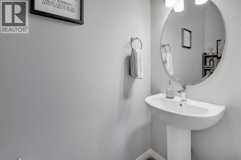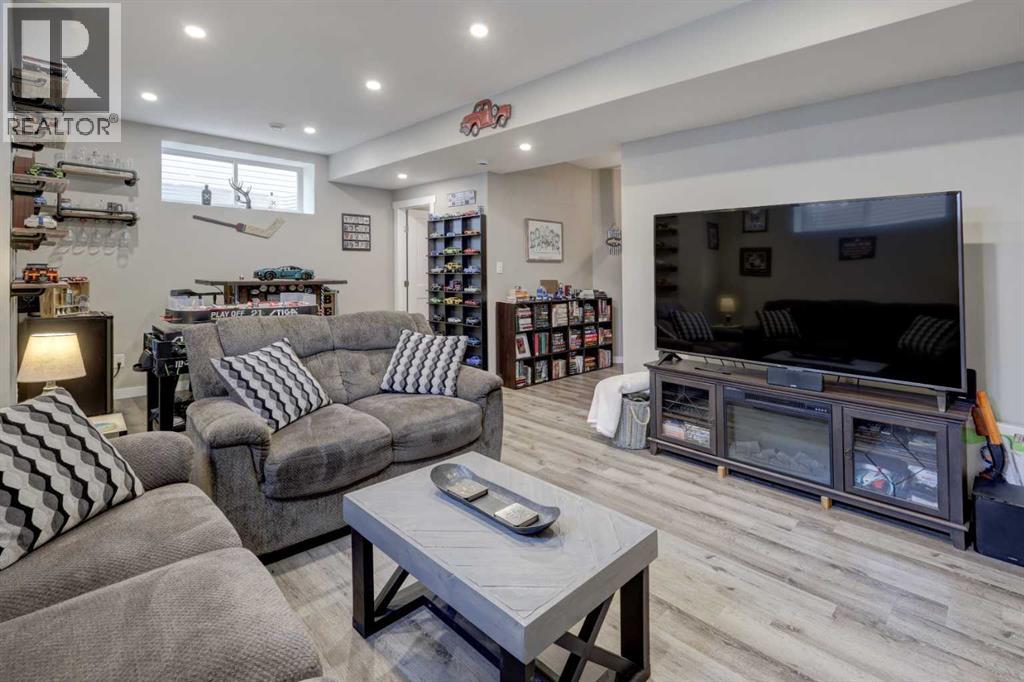 HOME SWEET HOME! Welcome to this outstanding, custom-built, and RECENTLY UPDATED FORMER SHOWHOME situated in the quiet and family friendly community of Wildflower backing on to a picturesque green space/playground in the heart of the charming town of Strathmore. This magnificently modern home offers 3 bedrooms, 4 bathrooms, 2,179 fully developed, sophisticated SQFT of living space throughout, central air conditioning and an oversized double garage. Heading inside the home you will be blown away by the amazing pride of ownership, luxury vinyl plank flooring, custom lighting upgrades and the well maintained living space offering a bright foyer, formal dining area with access to the spacious deck and patio, 2 piece vanity bathroom, mud room, sun-drenched living room perfectly complimented by a floor to ceiling rustic, stone gas burning fireplace and the gourmet chef’s kitchen complete with quartz countertops, a large quartz island, convenient walk through pantry, sleek soft close cabinets, upgraded stainless steel appliances and built-in vacuum system. Heading upstairs you will find 3 great sized bedrooms including the dreamy primary bedroom complete with a spacious walk-in closet and upgraded 3- piece ensuite bathroom with an oversized shower with a bench. Completing the upstairs is a large laundry room and a wonderful 4-piece main bathroom. The recently developed basement contains a 2-piece vanity bathroom, huge recreation/living/games room and an office nook perfect for a growing family and tons of storage space. Outside you will find the oversized double attached garage with additional driveway parking and the beautifully landscaped and partially fenced backyard with an upgraded, new patio, deck with new rails, cedar plant boxes and built in firepit. Upgrades in the works include a new window in the bathroom and new eves, downspouts, and some soffits. Unbeatable location steps from 9 miles of pathways, high School, Kinsmen and Gray Parks, Outdoor Rink, Skatepark, Strathmore Stampede Grounds, shopping, the Recreation Centre, the Strathmore Golf Club, hospital and so much more. You are a short 25 minutes from Calgary city limits! Strathmore is known for it’s quieter and slower pace of living and strong community ties. Don’t miss out on this amazing opportunity! Book your private viewing of this GEM today! (id:55690)