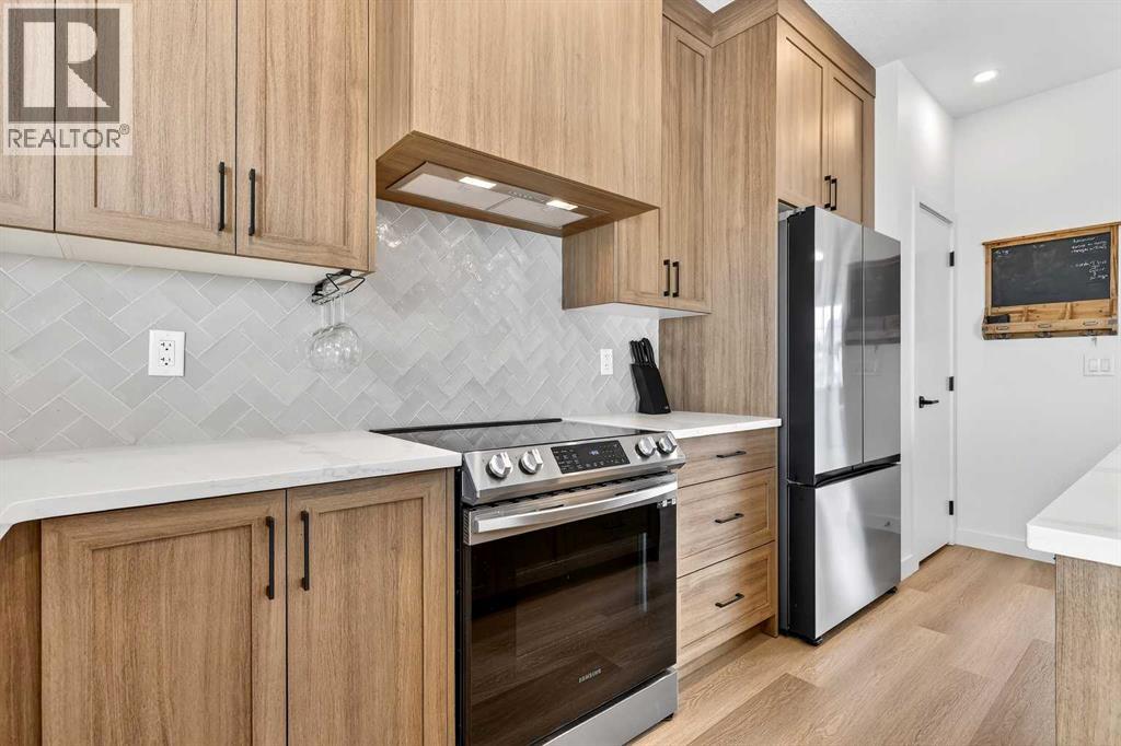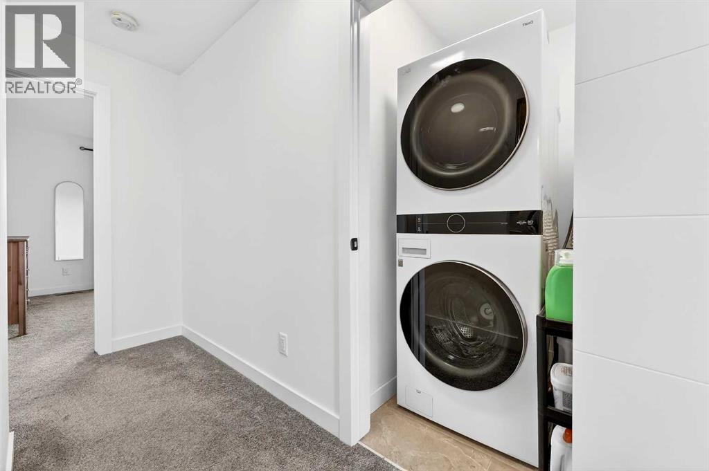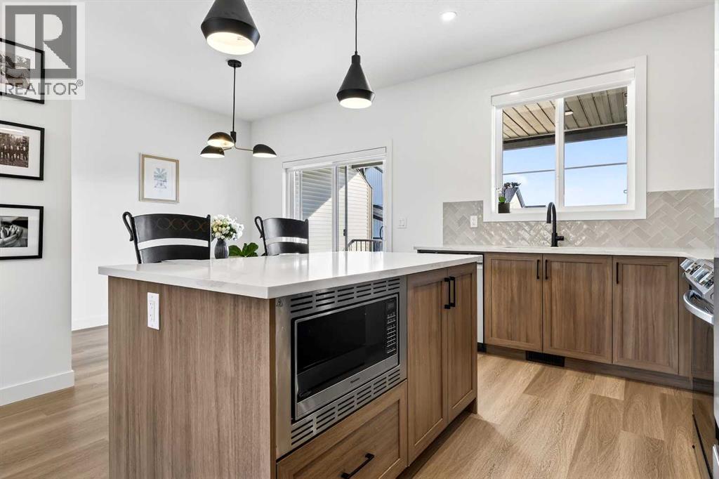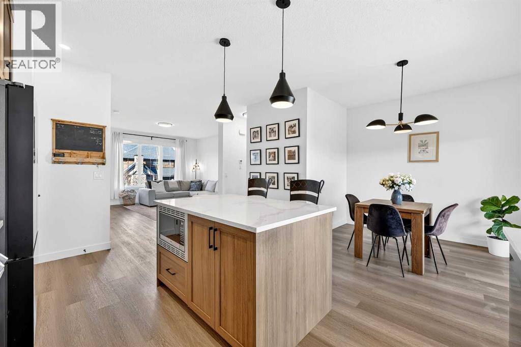 Open House Saturday February 21st 2:00pm-4:00pm and Sunday February 22nd 12:00pm-2:00pm. Welcome to #1604 – 201 Cooperswood Green SW, a beautifully designed 3-storey Village Townhome in the highly sought-after Vesta Elevate Collection in Cooper’s Crossing, an 11-time winner of Airdrie’s Best Community Award. Blending modern contemporary architecture with upscale interior finishes, this home offers exceptional style, functionality, and an unbeatable location.The thoughtfully designed open-concept layout features 3 bedrooms, 2.5 bathrooms, and a versatile flex room ideal for a home office, gym, or additional living space. The bright and spacious main floor is perfect for both everyday living and entertaining. The gourmet kitchen is a true highlight, complete with full-height cabinetry to the ceiling, sleek modern finishes, generous prep space, and a layout that flows seamlessly into the dining and living areas. A convenient main floor powder room adds comfort and practicality for guests.Upstairs, the deluxe primary suite provides a private retreat, while the secondary bedrooms are impressively sized compared to most townhome layouts, offering flexibility for families, guests, or work-from-home needs. The overall design maximizes space, natural light, and livability across all three levels.Parking is never a concern with a double attached garage plus two additional private driveway stalls — a rare and valuable feature in townhome living.Located directly across from Cooper’s Town Promenade, you’ll enjoy walkable access to Save-On-Foods, Starbucks, McDonald’s, Shoppers Drug Mart, Pet Value, and everyday amenities. Parks, pathways, schools, and green spaces are all nearby, making this an ideal home for professionals, families, or investors looking to be in one of Airdrie’s premier communities.This is an opportunity to own a stylish, low-maintenance home in a vibrant, award-winning neighborhood where convenience meets elevated living. (id:55690)
