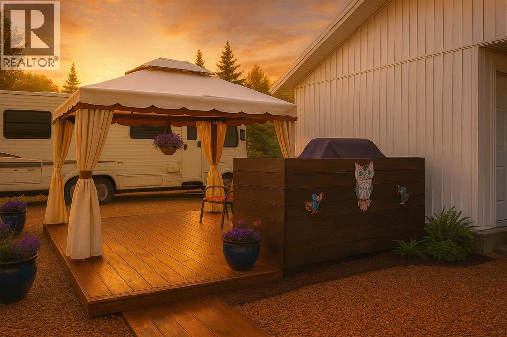 Set on a massive 10,500 sq. ft. estate-style lot in Newcastle, this fully finished bungalow offers rare space, utility, and long-term value in the heart of Drumheller.At approximately 1,840 sq. ft. above grade, this single-level home provides comfortable, functional living with the convenience today’s buyers are prioritizing, no stairs required. The property features an oversized 22x24 double garage, RV parking with 30-amp hookup, dual driveways, and room for tools, toys, trailers, or a home-based setup.For buyers relocating from larger centres, this is an opportunity to trade density for space, enjoy a ¼-acre residential lot, privacy, and secure storage while remaining minutes from town amenities and tourism landmarks.Inside, recent renovations blend warmth and modern utility. The kitchen features extended custom cabinetry, quartz peninsula workspace, soft-close drawers, ceramic apron-front sink, and updated LG appliances. The living space showcases upgraded finishes, new flooring, fresh paint, and a distinctive wood feature wall.The primary suite includes a whirlpool tub, tiled shower with seating, and double vanity. In total, the home offers 4 bedrooms and 3 bathrooms, providing flexibility for families, guests, or work-from-home needs.Efficiency and durability are standout features:Steel roofing on both home and garage.Rockwool insulation & R60 attic insulation.Pellet stove heating up to 2,000 sq. ft.New electrical panel & wiring.Heated, insulated crawlspace.New doors & windows.Outdoor living is equally impressive with multiple deck areas, an 18x27 patio with fire pit, gazebo lounge space, established apple trees and berry bushes, and a fully fenced yard designed for low maintenance.Backing near the world-recognized Passion Play site and just minutes to trails, parks, live theatre, and the Royal Tyrrell Museum, this property blends lifestyle, land value, and long-term usability.For buyers seeking lot size, garage capacity, and functional space at a price point rarely found in larger centres, this is a compelling opportunity.Book your private viewing today. (id:55690)