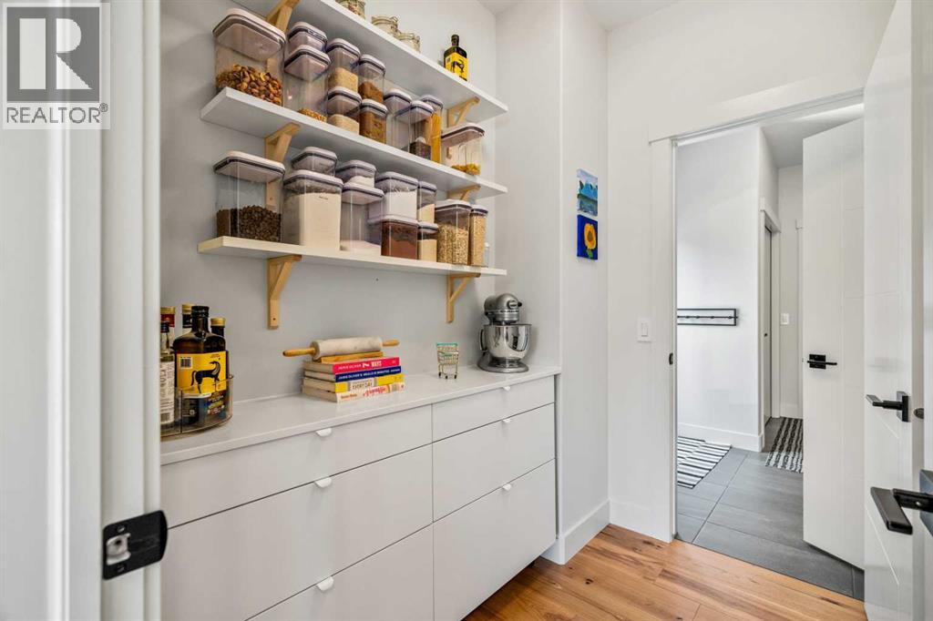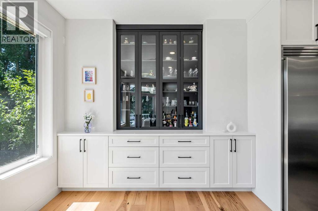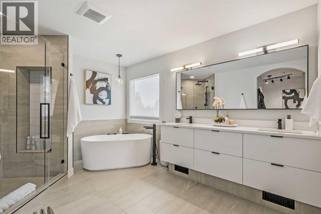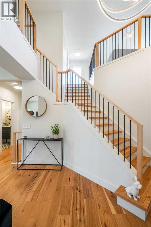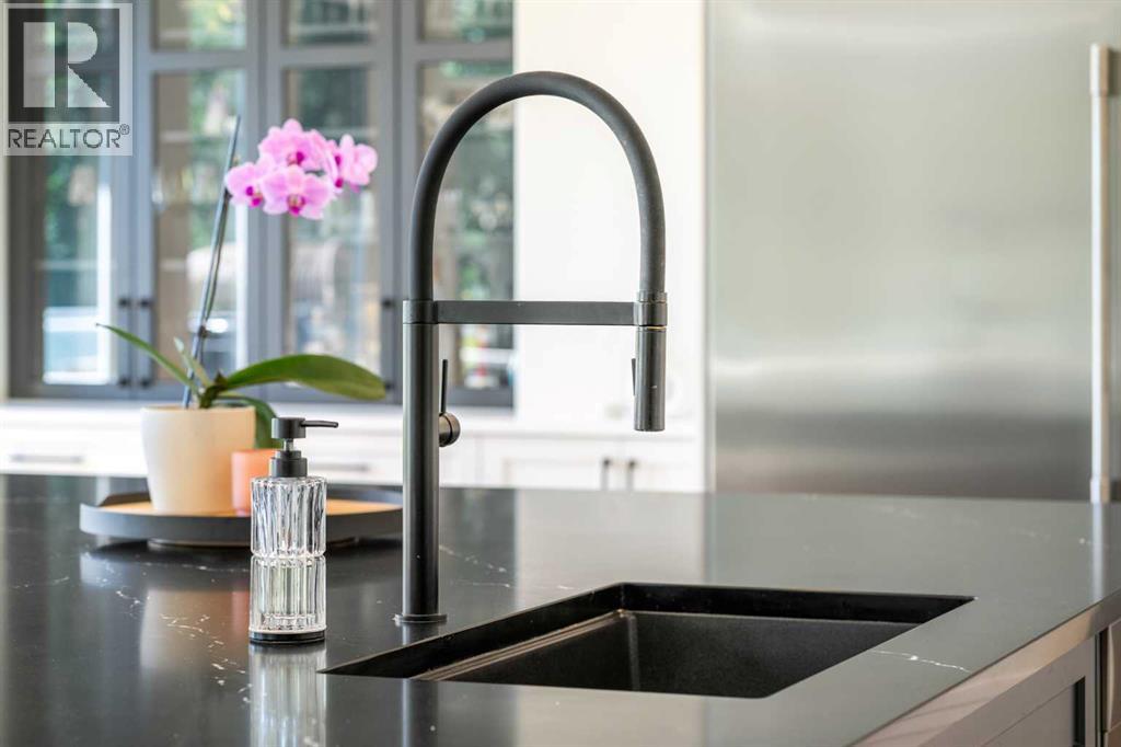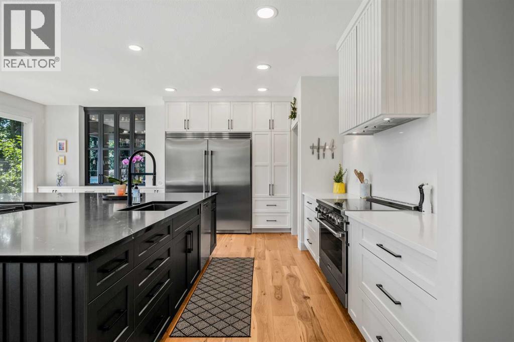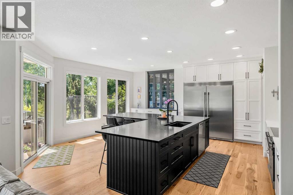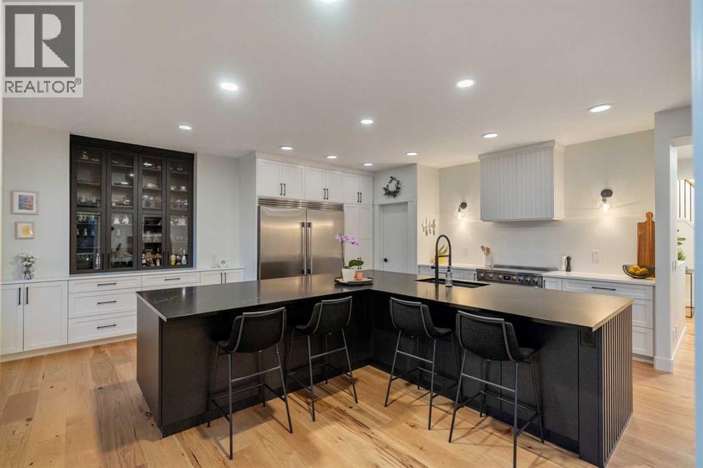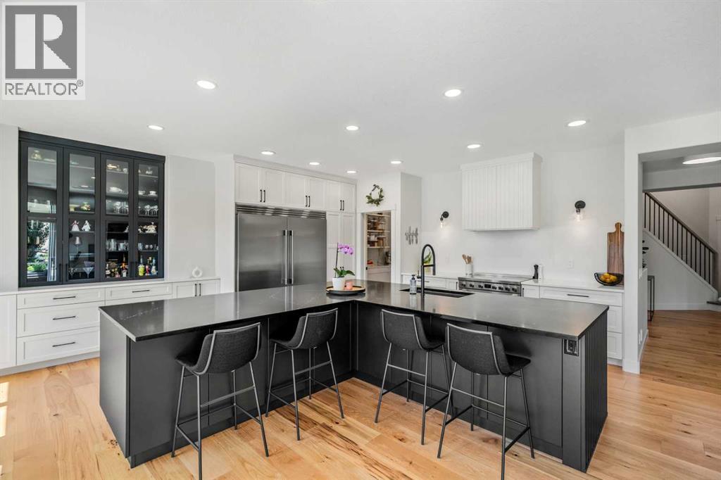 Presenting a remodelled masterpiece nestled within the prestigious enclave of homes located at The Lake in Heritage Pointe. This estate backs directly on to a greenspace and is situated in the only portion of the hamlet with Lake Privileges - and rarely does a renovated home come on to the market! This estate hosts over 4000 sqft. of developed living space on an impressive .17 acres! As you pull into the expansive, aggregate, driveway, you will love the striking stone and stucco exterior that envelopes your heated and epoxied triple car garage, a nod to the quality within. The foyer is inspiring, with twenty-foot ceilings and a grand staircase as an iconic feature of this classic floorplan. Step on to your gorgeous, engineered hardwood coloured in ‘Hickory’ that is thoughtfully illuminated by a striking chandelier. The office is adorned with floor to ceiling windows. The entire main level offers panoramic vistas of the green space and beyond, with a plethora of windows along the entire width of the home. The chef-inspired kitchen is extraordinary with two remarkable islands as the showpiece! This designer kitchen is thoughtfully curated with contrasting cabinetry including Carrera quartz in white and black stones, offering brilliant dimension. This retreat offers state-of-the-art appliances, a butler’s pantry and curio cabinetry. The kitchen transitions into the generous family room and formal dining with lavish wine display. From here, step outside onto the gorgeous deck and revel in the tranquil manicured lawns and views of the private park. As this home sides and backs on to the green space, it extends your outdoor living area without the added maintenance. Ascend upstairs, through the double doors, and into the primary suite. This retreat features a boutique worthy dressing room and an opulent six-piece spa. The upper level has a split wing design, with three spacious bedrooms ensconced on one end of the residence all with walk-in closets and a generous bonus ro om on the opposite wing, with jack and jill access to the five-piece bath. The upper has laundry too – a rare perk for a home in Heritage. Descend to the lower level, designed for entertaining with a recreational room that transitions into a sophisticated bar. Here you have two generous bedrooms, a four-piece bath, and a designated workspace. This residence is steps to the main beach, north dock, upper lake, the sports court and the all-new playground. This exclusive Lake community offers year-round activities such as kayaking, paddle-boarding, fishing, and skating. The area is surrounded by nature with blue tooth-controlled walking paths and is within a ten-minute radius to five world-class golf courses while only being three minutes south of Calgary! For your children, school buses stop at numerous points along the drive taking your kids directly to all levels of schooling. This once is a once in a lifetime estate is waiting for a connoisseur of fine living to call it home! Watch the video** (id:55690)