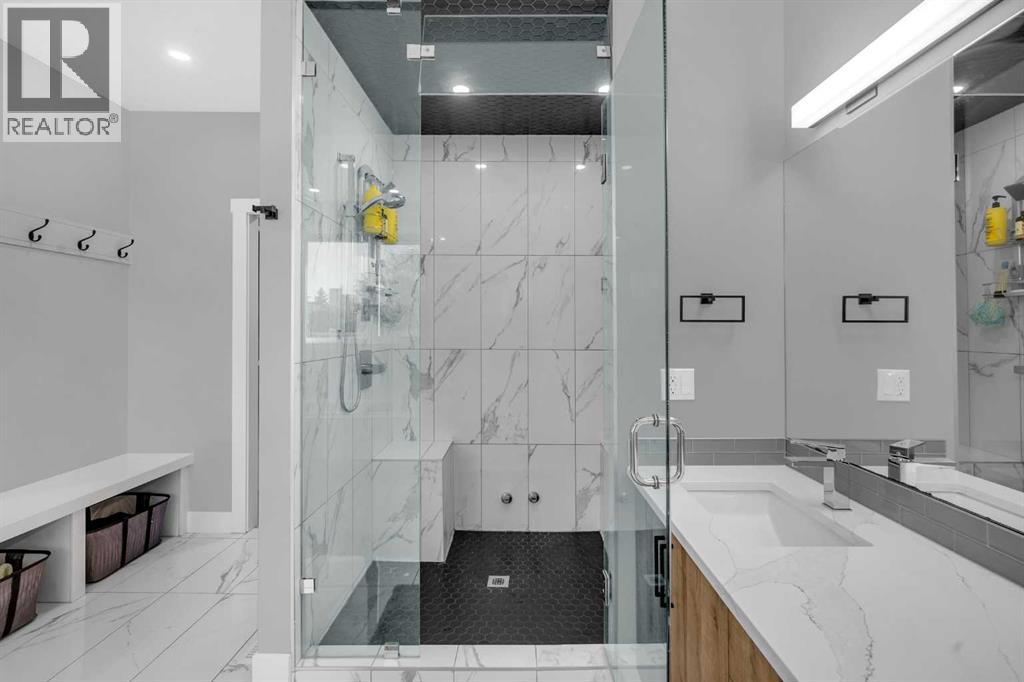 LUXURY DETACHED INFILL in the heart of INGLEWOOD!This impeccably crafted home blends contemporary elegance with thoughtful functionality, set in one of Calgary’s most iconic inner-city communities. Just steps from the Bow River pathway system, Bow Habitat Station & Sam Livingston Fish Hatchery, schools, fitness facilities, parks, and the trendy shops, cafés, and restaurants along 9th Avenue—this location offers the ultimate urban lifestyle. Plus, enjoy walking-distance access to one of Calgary’s top-rated daycares, making this home ideal for families.The main floor showcases soaring 10-foot ceilings, wide-plank hardwood flooring, and a stunning designer kitchen complete with quartz countertops and full-height cabinetry. A spacious modern office adds flexibility for work-from-home living. The inviting living room features a gas fireplace with custom millwork, oversized windows, and double sliding doors that open to the deck, landscaped backyard, and TRIPLE detached garage.Upstairs, the luxurious primary retreat includes heated floors, a steam shower, jacuzzi soaker tub, walk-in closet, and convenient access hatch to the adjacent laundry room. Two additional generous bedrooms share a Jack-and-Jill five-piece bathroom, completing the upper level.The fully finished basement offers a separate side entrance and a LEGAL suite registered with the City of Calgary. This bright and spacious space includes a full kitchen, large living/recreation area, two bedrooms, a full bathroom, oversized laundry room, and abundant storage—ideal for long-term rental, short-term rental/Airbnb (subject to City of Calgary regulations and licensing), or multigenerational living. The basement features upgraded flooring for a fresh, modern finish.Additional highlights include EV charger rough-in in the triple garage, water softener, full home security system with security cameras, brand new hot water tank, and full furnace service completed in December 2025.A rare opportunity to own a h igh-end inner-city home with exceptional income potential in one of Calgary’s most desirable neighborhoods. (id:55690)