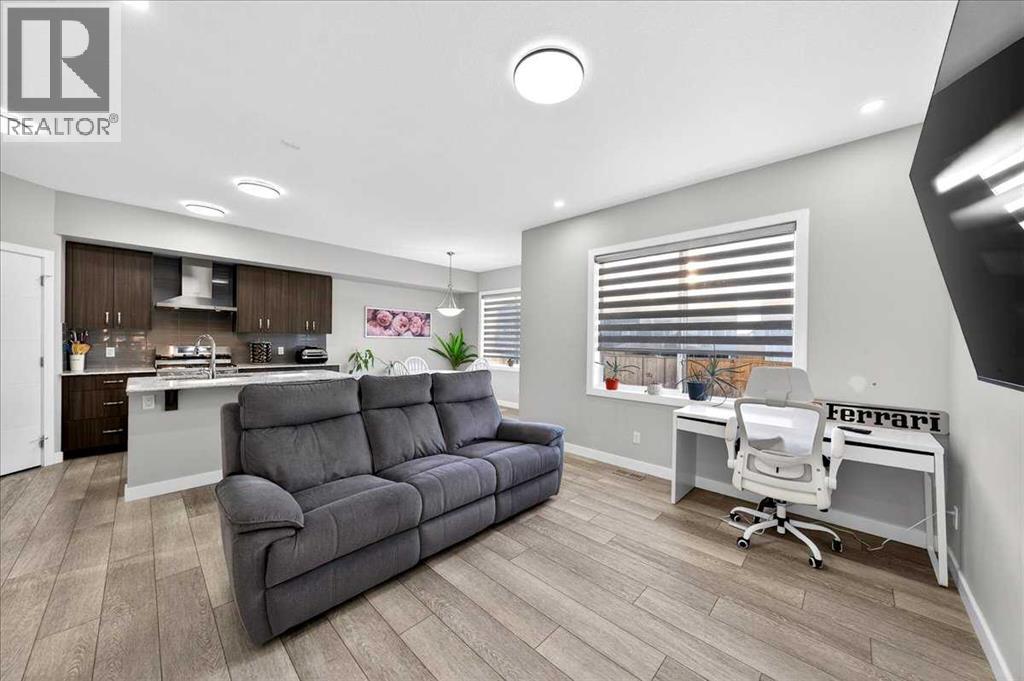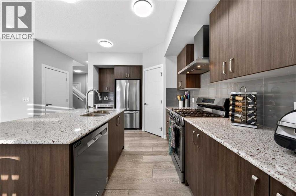 Welcome to Belmont, a thoughtfully designed two-storey home offering 1,706 sq ft of comfortable and functional living space. This beautifully upgraded home features 3 bedrooms and 2.5 bathrooms, perfectly suited for modern family living. The main floor boasts a bright rear dining nook and a spacious living room filled with natural light, flowing seamlessly from the upgraded kitchen. Enjoy quartz countertops, stainless steel appliances including a built-in microwave and gas stove, a large island, and a convenient walk-in pantry—ideal for both everyday use and entertaining. A practical mudroom and 2-piece bath complete the main level. Upstairs, you’ll find a central bonus/family room that provides a great space for relaxing or gathering, along with a full laundry room for added convenience. The private primary bedroom features a walk-in closet and a 3-piece ensuite, while the additional bedrooms also include their own walk-in closets, offering plenty of storage for the whole family. The basement is undeveloped and includes a separate side entrance, providing excellent potential for future development or rental income, subject to city approvals and permits.Close to all the amenities. With a well-balanced layout designed for both comfort and functionality, this home in the desirable Belmont community is a fantastic opportunity you won’t want to miss! (id:55690)