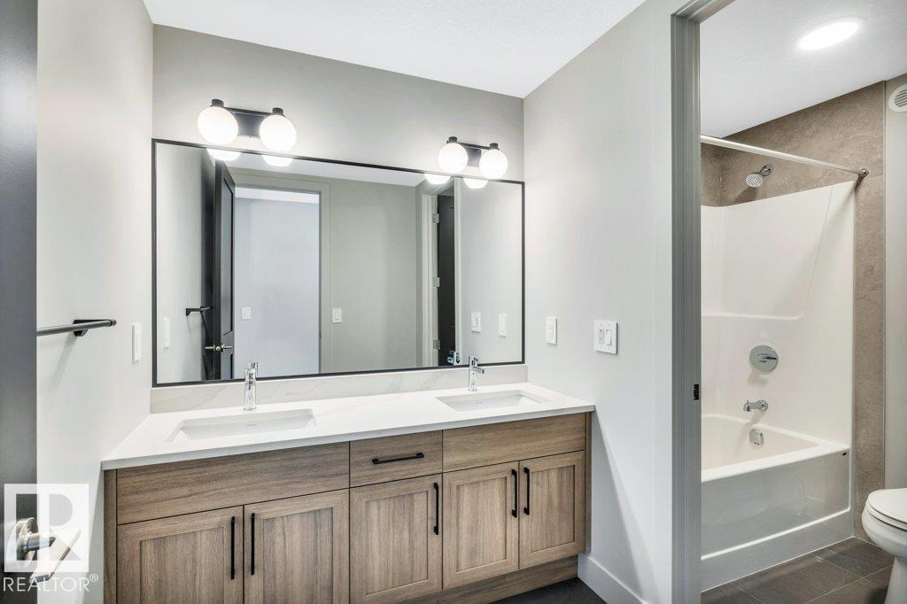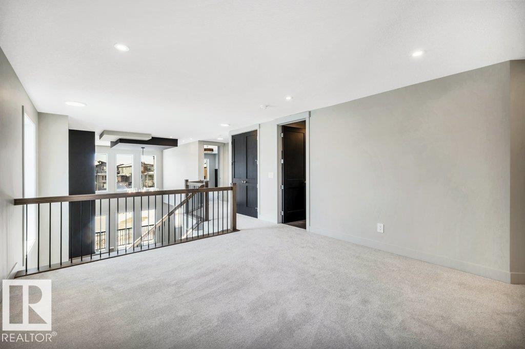 Welcome to this exquisite two-story walk-out home backing a pond built by Homexx. The main floor features an open-concept layout, ideal for entertaining. The chef-inspired kitchen boasts a large island, custom cabinetry, stainless steel appliances, and overlooks the dining area and great room. Upstairs, you'll find four spacious bedrooms, a bonus room with a vaulted ceiling, a laundry room, and two bathrooms. The primary bedroom is bright and airy, offering a 5-piece ensuite with a separate shower and tub, plus an impressive walk-through closet leading to the laundry. Additional highlights include quartz countertops, elegant lighting, luxury vinyl plank flooring, a gas fireplace, 8-foot interior doors, stylish railings with wrought iron spindles and 200 amp service. With excellent curb appeal, a double oversized attached garage, and proximity to walking trails this home has it all. (id:55690)