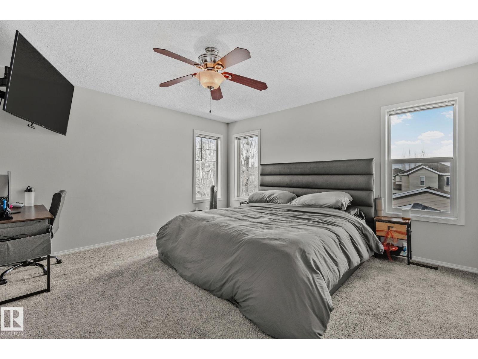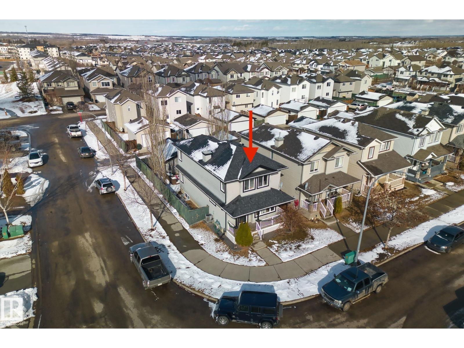 Welcome to this well-maintained 2-storey home in sought-after Spruce Village. The main floor features a bright flex room, a kitchen with ample cabinetry and stainless steel appliances, with space for an island or large dining table, plus a cozy living room with an updated fireplace. Upstairs offers a spacious primary bedroom with walk-in closet and 4-piece Jack & Jill bathroom, plus two additional bedrooms. The fully finished basement includes a second family room, 4th bedroom with 4-piece ensuite, and a large laundry/storage room. Outside enjoy a deck, shed, and detached double garage, plus brand new shingles installed March 2026! Walking distance to Jubilee Park, Prescott Learning Centre (K–9), Catholic schools, shopping, and dining. Quick Yellowhead Highway access for commuters. A fantastic opportunity for first-time buyers or investors in a thriving family community. (id:55690)