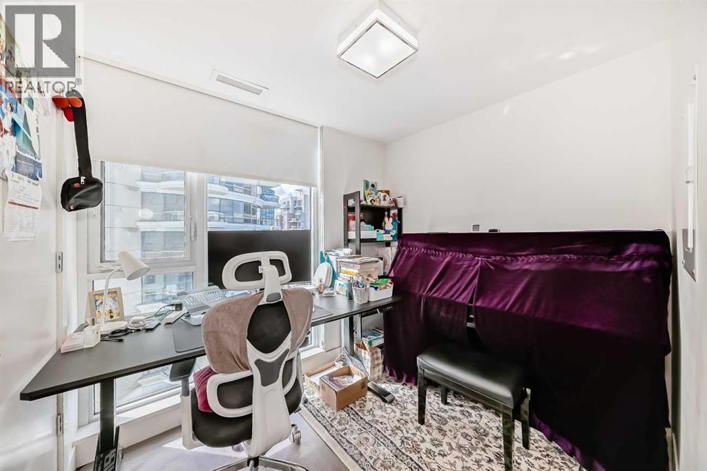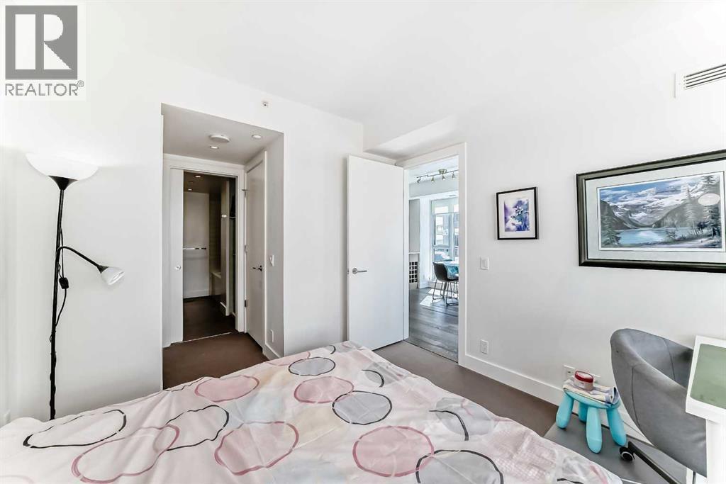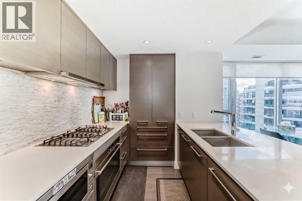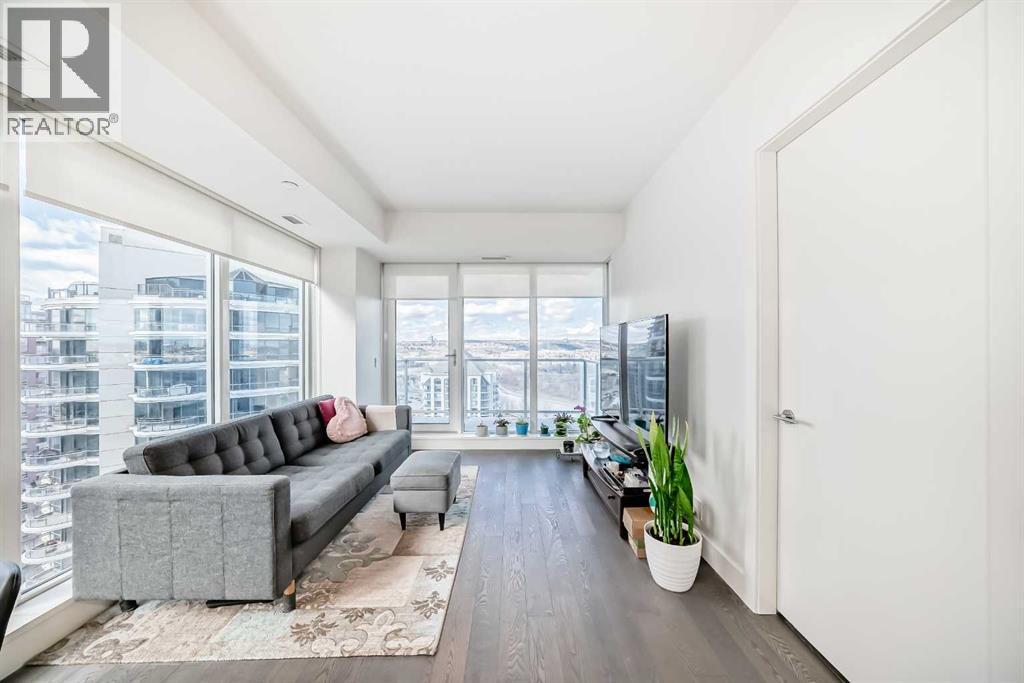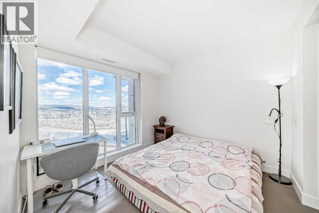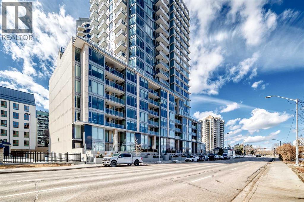 Experience elevated downtown living in this stunning corner unit at Avenue West End, offering breathtaking Bow River and Rocky Mountain views through expansive floor-to-ceiling window walls. This luxurious concrete building combines quality construction with exceptional urban convenience — just steps to downtown offices, river pathways, and Prince’s Island Park. This beautifully designed home features 2 bedrooms, 2 full bathrooms, plus a dedicated office/den, providing the ideal layout for professionals, downsizers, or investors. The gourmet kitchen is appointed with premium built-in appliances including a built-in refrigerator, high-end 5-burner gas stove, built-in microwave, quartz countertops, and sleek modern cabinetry. Rich hardwood flooring, quality carpet, air conditioning, and in-suite laundry complete the upscale interior. Enjoy your private balcony with panoramic river and city views, plus the convenience of titled underground parking, titled storage locker, and heated underground visitor parking. Avenue West End offers outstanding amenities including concierge service, security, fitness room and pet wash station. A rare opportunity to own a premium view unit in one of Calgary’s most sought-after downtown buildings — book your private showing today! (id:55690)