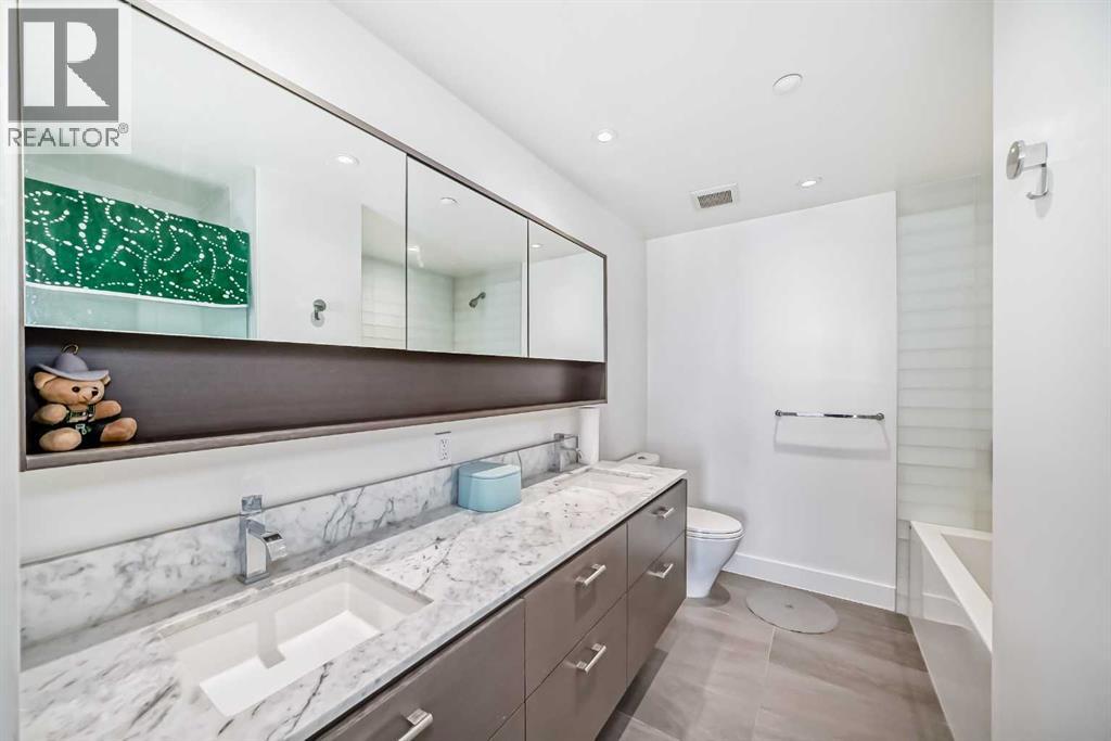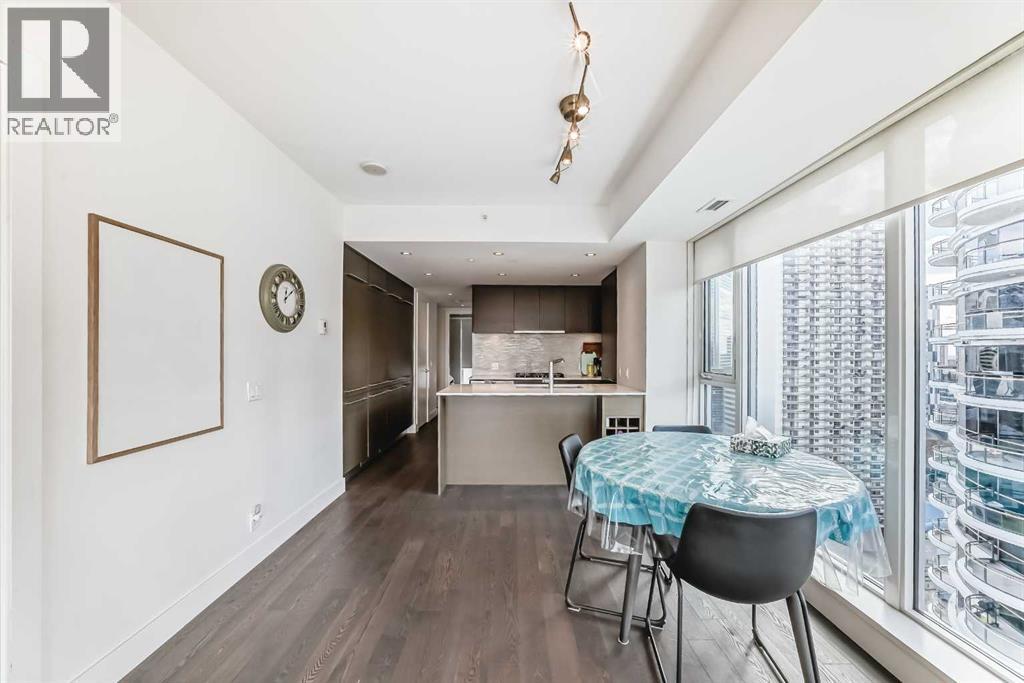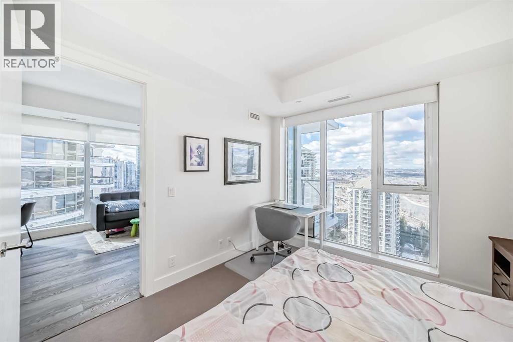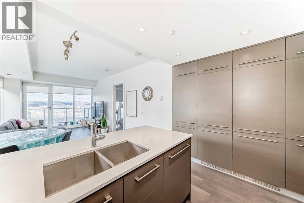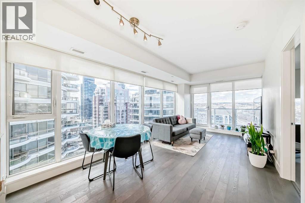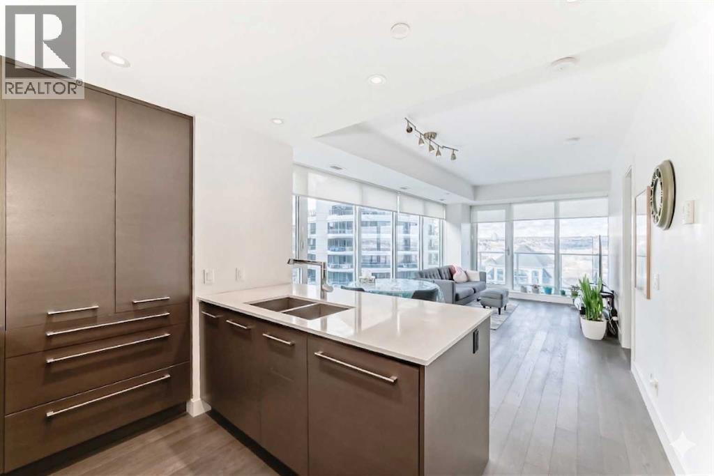 Experience elevated downtown living in this stunning corner unit at Avenue West End, offering breathtaking Bow River and Rocky Mountain views through expansive floor-to-ceiling window walls. This luxurious concrete building combines quality construction with exceptional urban convenience — just steps to downtown offices, river pathways, and Prince’s Island Park. This beautifully designed home features 2 bedrooms, 2 full bathrooms, plus a dedicated office/den, providing the ideal layout for professionals, downsizers, or investors. The gourmet kitchen is appointed with premium built-in appliances including a built-in refrigerator, high-end 5-burner gas stove, built-in microwave, quartz countertops, and sleek modern cabinetry. Rich hardwood flooring, quality carpet, air conditioning, and in-suite laundry complete the upscale interior. Enjoy your private balcony with panoramic river and city views, plus the convenience of titled underground parking, titled storage locker, and heated underground visitor parking. Avenue West End offers outstanding amenities including concierge service, security, fitness room and pet wash station. A rare opportunity to own a premium view unit in one of Calgary’s most sought-after downtown buildings — book your private showing today! (id:55690)