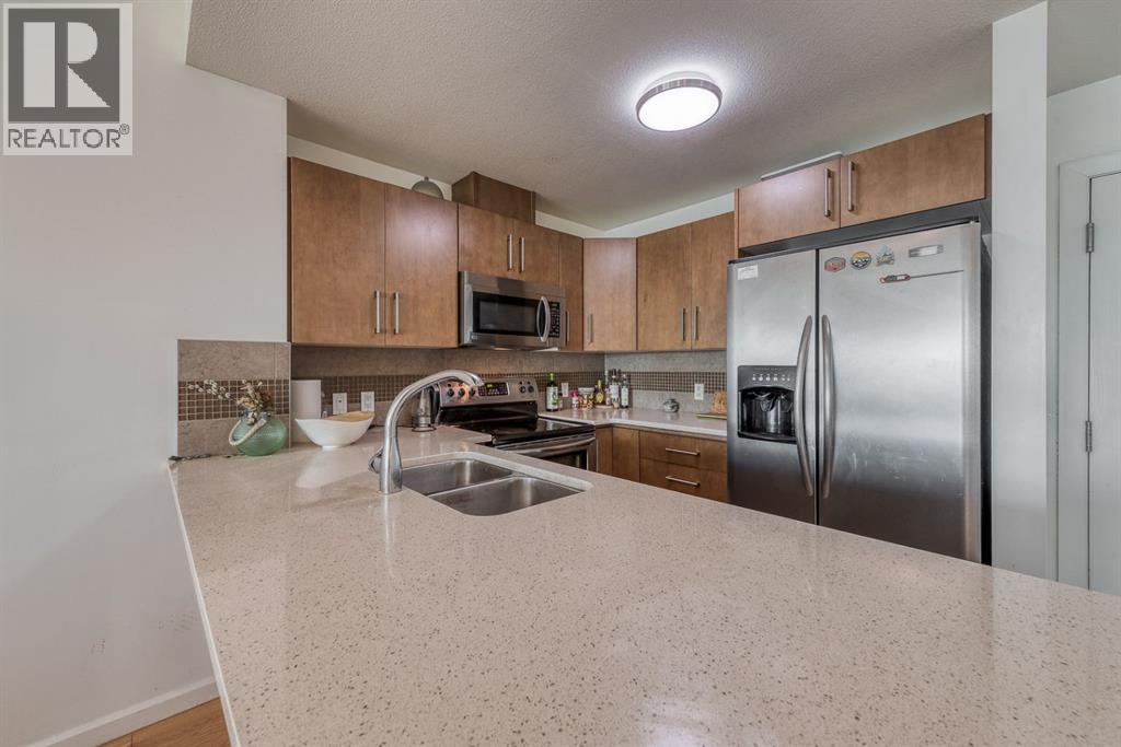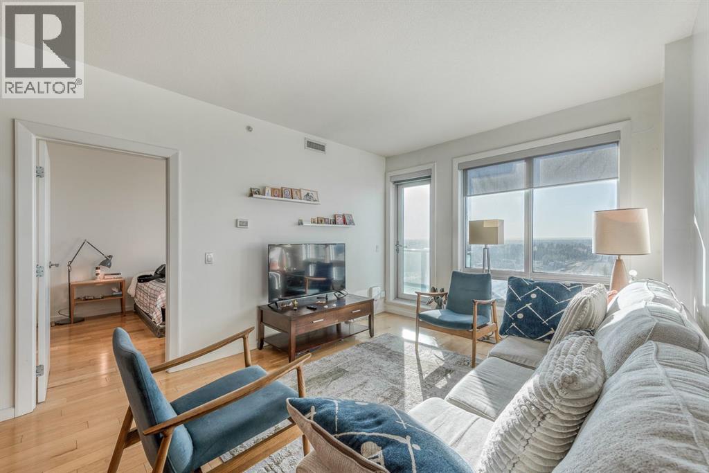 Urban Living at Its Best! Welcome to Vetro, where modern style meets unbeatable convenience. This 20th-floor, 2-bedroom, 2-bathroom condo offers panoramic south-facing views and an open, light-filled layout you’ll love coming home to. The kitchen features ample cabinetry, sleek quartz countertops, and a seamless flow into the dining and living areas — perfect for entertaining or simply relaxing with breathtaking city and mountain views. The split-bedroom design provides ideal privacy, while floor-to-ceiling windows bring in stunning natural light day and night. Enjoy the spacious balcony with gas hookup, in-suite laundry, titled underground parking, and assigned storage locker. Residents enjoy exclusive amenities including a fully equipped gym, hot tub, sauna, theatre, rooftop patio, entertainment room, and full-time concierge and security. Located steps from LRT, Stampede Park, the new Scotia Place Event Centre, Saddledome, downtown offices, and vibrant local shops and restaurants, this is the ultimate walkable lifestyle. All this with affordable condo fees of only $580/month, including underground parking and storage. Whether you’re a young professional, investor, or downsizer, this condo delivers high-quality living, unbeatable views, and exceptional value in one of Calgary’s most desirable urban towers. (id:55690)