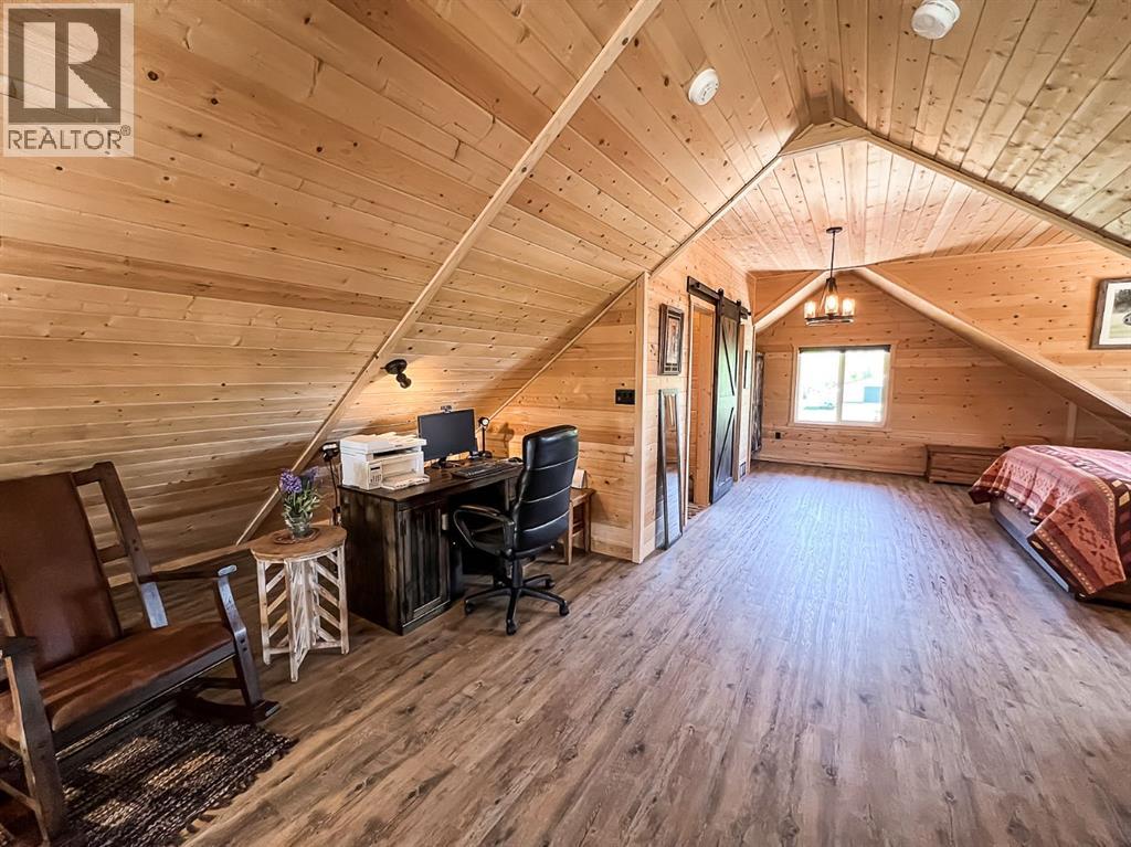 Just minutes south of St. Isidore, this beautifully crafted 1.5-storey Knotty Pine Home sits on a sprawling 156-acre property, offering the perfect blend of privacy, charm, and opportunity. Whether you dream of a peaceful rural retreat or the space to start a hobby farm, this property delivers. Step inside to soaring ceilings, a warm rustic aesthetic, and a bright open-concept layout filled with natural light. The spacious living and dining area features large windows and a cozy pellet-burning fireplace, creating an inviting atmosphere year-round. The kitchen is a true showpiece, complete with distressed hickory cabinetry, granite countertops, an eat-up island, and an abundance of cabinet and counter space, perfect for cooking, entertaining, and making memories. Upstairs, the entire level is a dedicated primary retreat featuring a private sitting loft, a full ensuite, and a walk-in closet, your sanctuary to unwind and recharge. The main floor offers two additional bedrooms and another full bathroom, ideal for a family or guests. Step outside and take in the peaceful prairie surroundings from either expansive decks. The covered front porch is the perfect place to enjoy stunning sunsets, while the back deck offers covered and uncovered areas, ideal for entertaining, dining, or simply soaking in the views. The beautifully landscaped yard leads to a 16x24 garage and a 36x48 insulated, wired barn/shop, giving you endless possibilities for storage, hobbies, or animals. As a bonus, the land is currently rented out, bringing in $7,150 annually to help offset property costs. The home is also connected to town water and features backup power with a generator offering extra convenience and peace of mind for rural living. This thoughtfully designed and exceptionally well-maintained home offers unmatched comfort, space, and peace of mind. From its quality craftsmanship to its panoramic prairie views, every detail has been carefully considered to deliver the ultimate country livi ng experience. The sellers would consider subdividing the property, offering approximately 10 acres for $550,000. Don't miss this rare opportunity, book your showing today and discover the perfect blend of serenity, style, and rural charm! (id:55690)