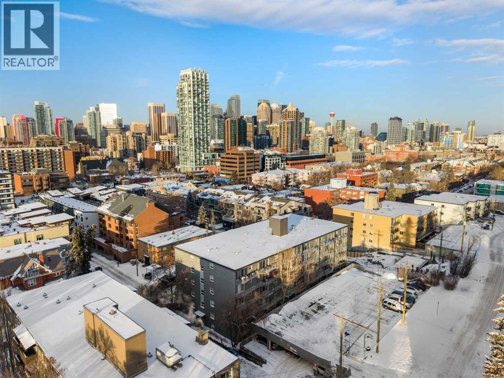 Located in the heart of Lower Mount Royal, this turn-key residence is the perfect live-in or rent-out investment as it has been gorgeously remodelled, is in a concrete building with low condo fees, showcases downtown views and is perfectly located just steps to the beltline! Step inside to your gorgeous renovation, as this unit has been exquisitely remodeled and promises to leave a lasting impression! From the moment you walk in, you will be captivated by the opulent finishes and premium selections offered in this home. The lavish renovation is inclusive of everything: new engineered hardwood, trim, doors, paint, hardware, potlights, light fixtures, appliances and of course you will love the luxurious details in the brand-new kitchen and bathroom! The gourmet kitchen is striking now that it has been opened up from its original closed off design and features timeless white cabinets elevated with transom details. The kitchen showcases granite countertops featuring a lavish waterfall edge, professional appliances, designer lighting – and a rare perk for a condo in this complex – in suite laundry! The European style washer/dryer is a coveted feature – as most units in the complex have to use the shared laundry room where you pay per use. The island is the perfect space for entertaining or cooking and opens onto an intimate dining area – they don’t make condos this spacious anymore! Your expansive family room is so impressive, and it has enough space to accommodate an in-home office too, plus it is adorned with natural light from the floor to ceiling patio windows that accesses your beautiful balcony facing downtown. Yes, the view is included as many units in this price range face a parking lot! Your primary retreat can fit a king-sized bed and sits adjacent to your re-designed four-piece bath featuring an extended vanity and granite countertops. Please note that the unit has a front hall closet, ample bedroom closet, linen closet, and a storage room RIGHT beside the uni t door. This unit is located in Churchill towers which is a well-maintained concrete building with a healthy reserve fund and recent building renovations (new elevator 2010, boilers 2015, renovated lobby 2012, & a security system). This location is within steps of Urban Fare (groceries), Goodlife Fitness, 17th Avenue restaurants/shopping, Canadian Tire, Shoppers Drug Mart, Stampede, Saddledome and the parks and paths surrounding elbow river. A perfect investment property that can be a part of this buildings managed rental pool so you can sit back and have someone take care of the tenants for you. There is street parking around and outdoor stalls available for rent (it is a waitlist system). This residence offers exceptional value – book your private viewing today! (id:55690)
