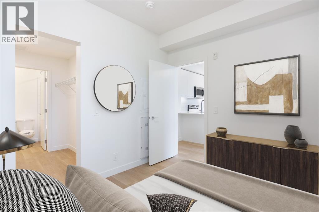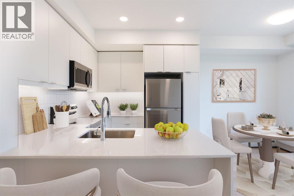 Ground level access with deck. Experience modern living with this stylish ground-floor 2 bedroom and 2-bathroom condo in East Hills Crossing, located directly across from East Hills Shopping Centre. With Costco, Walmart, Cineplex, and a variety of dining options just steps away, plus quick access to Stoney Trail and nearby transit, convenience is at your doorstep.This thoughtfully designed home offers 590 sq. ft. of contemporary living space, featuring a modern kitchen with an eating bar, a bright open-concept layout, and a spacious private deck—perfect for relaxing or entertaining outdoors. The primary bedroom includes a walk-through closet that leads into a private 4-piece ensuite, while the additional bedroom has easy access to the 3-piece main bathroom.Additional highlights include in-suite laundry, titled underground parking, and a separate storage unit. As a resident of East Hills Crossing, you’ll also enjoy access to the building’s rooftop patio in Building 1000, located on the sixth floor—ideal for socializing and soaking in the views.With elegant finishes, practical design, and a vibrant location, this condo is perfect for those seeking comfort, convenience, and contemporary style. (id:55690)
