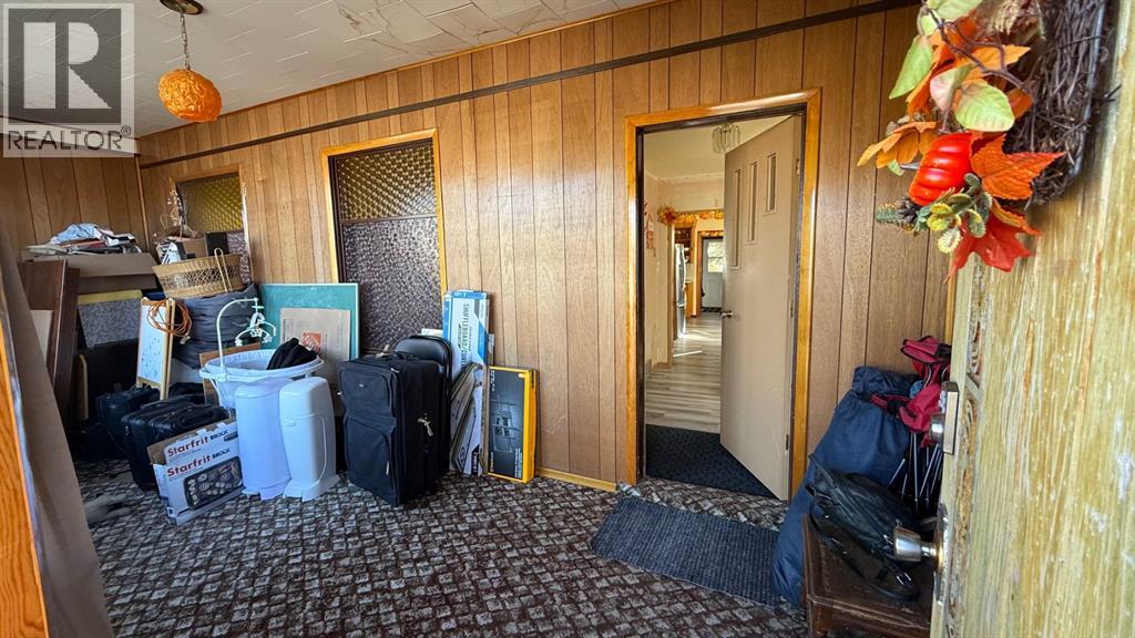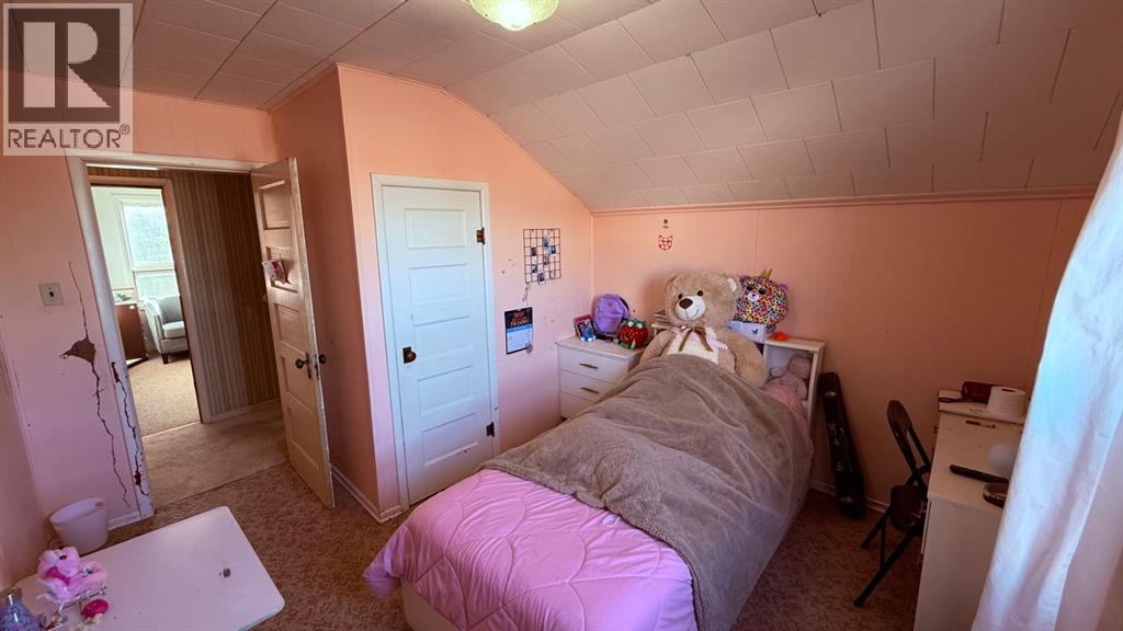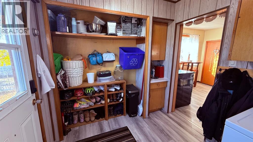 This charming family home offers 4 cozy bedrooms all together upstairs, making it easy to keep everyone close. On the main floor you’ll find a full updated bathroom and a laundry room , along with high ceilings and stylish vinyl plank flooring that give the home a bright open feel. The kitchen is spacious with many cupboards and practical with a dishwasher. At the front, the enclosed porch is not counted in the square footage but with a little heat it could be the perfect office, playroom or extra living space.The yard is large with lovely mature trees and the 20’ x 14’ garage provides plenty of room for parking or storage. Best of all this home is just a short walk to the school, pool and community centre an ideal spot for families to enjoy both comfort and convenience. Call for a showing today! Pictures inside the home will be uploaded Saturday October 11th. (id:55690)
