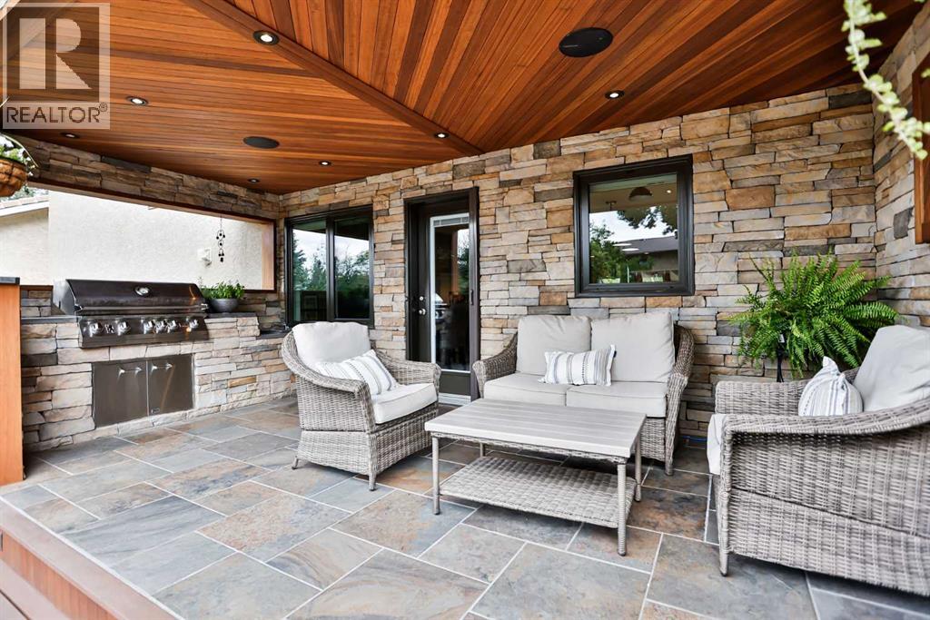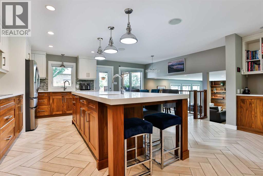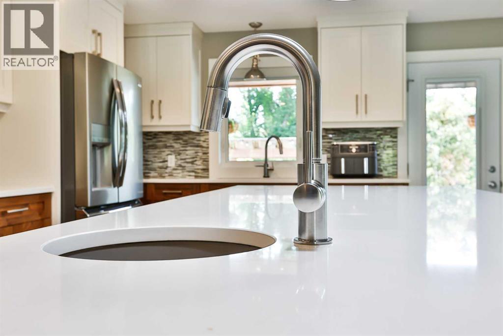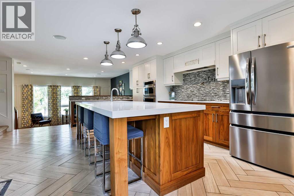Step into sophistication in this meticulously upgraded home, where every detail has been thoughtfully designed for comfort, function, and wow factor. From the grand entrance, you’re welcomed into a stunning formal living room with gleaming hardwood floors that flow into the heart of the home — an expansive kitchen and dining area that spans an entire level.This one-of-a-kind chef’s kitchen is a true showstopper, featuring custom cabinetry by Cabinet Expression, a massive 10-foot island, built-in stove and microwave, induction cooktop, refrigeration drawers, beverage fridge, two sinks, quartz counters, marble flooring, under-cabinet lighting, touch tap, and a garburator.Just off the kitchen is a warm and inviting family room and home office area, complete with a custom wall unit with built-in TV, shelving, and fireplace. Upstairs, you’ll find three bedrooms, all with plush, luxurious carpeting and two bathrooms. The primary suite is a personal retreat with its built-in TV, spa-inspired ensuite with double sinks, rainfall tile shower, heated floor, and an impressive custom walk-in closet.Near the garage entry, the mudroom includes access to a beautifully finished laundry room with sink, folding station, and hanging area. A stylish half-bath features a tile accent wall and built-in storage. The lower level offers a spacious fourth bedroom, home gym, and massive storage space.Downstairs, the basement is made for entertaining — complete with a large recreation area, wet bar, and a unique 3-piece bath with eye-catching aqua tile and finishes. The built-in speakers throughout the house, on the covered patio, and heated garage are linked to the Control4 System.Outside is your own private oasis: a covered patio with tile flooring, stone feature walls, a built-in gas BBQ and TV, plus two lower teak deck areas with lighting, built-in planters, and a cozy gas firepit. The yard is fully equipped with underground sprinklers and enclosed by a cinder block fence for privacy. R ecently installed triple glazed windows and newer high end kitchen appliances too! Ideally located directly across from Nicholas Sheran Park, you’ll enjoy instant access to 106 acres of green space, including a lake, 7 km of walking trails, disc golf, playgrounds, and nearby schools.This is more than a home — it’s your dream lifestyle waiting to happen. Don’t miss the chance to make it yours! (id:55690)