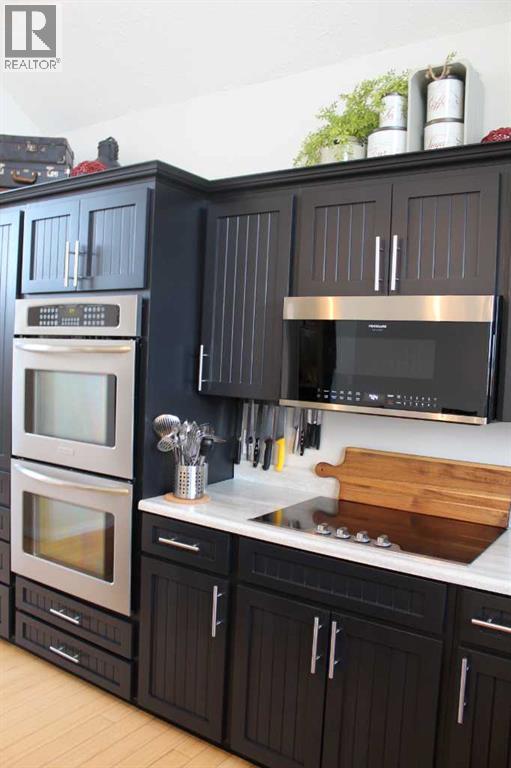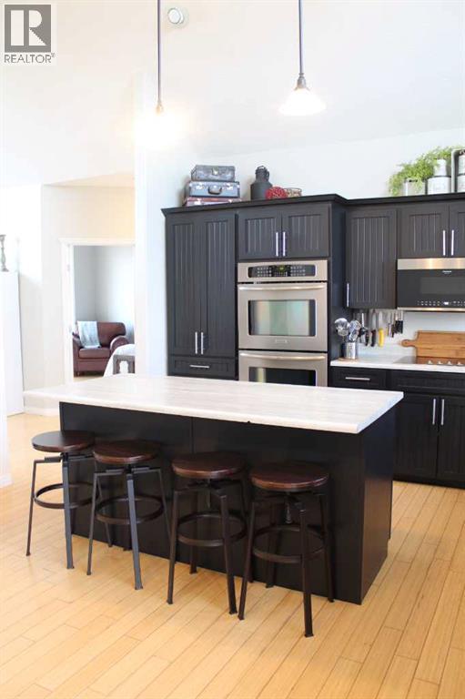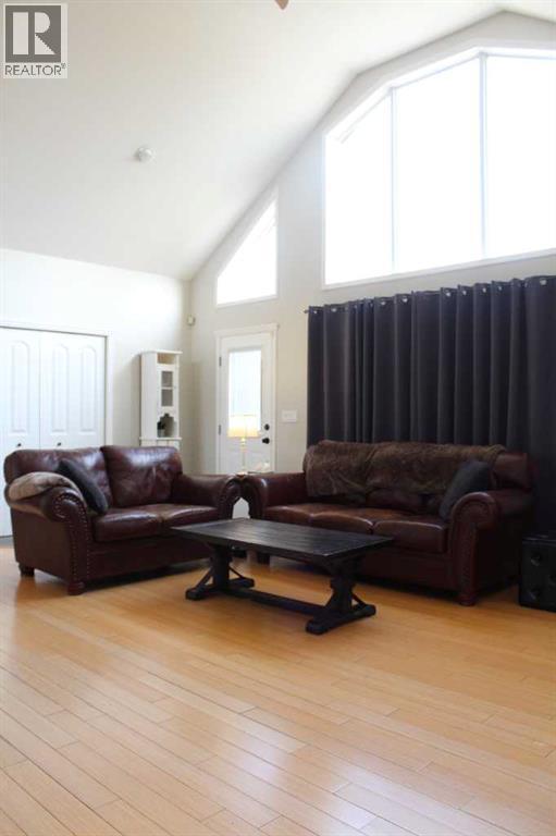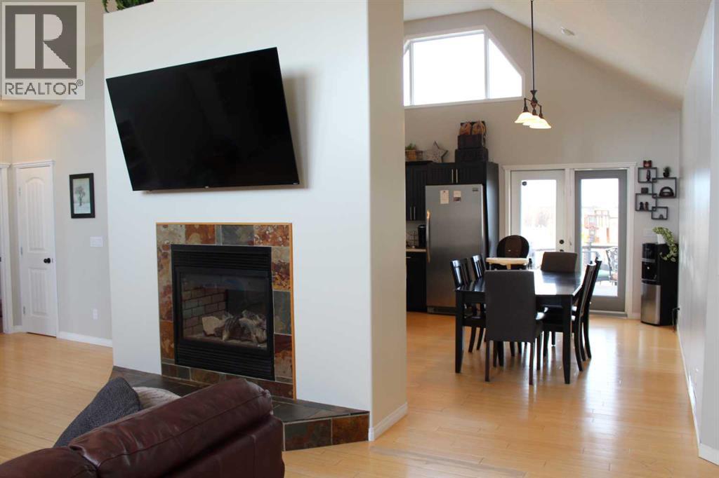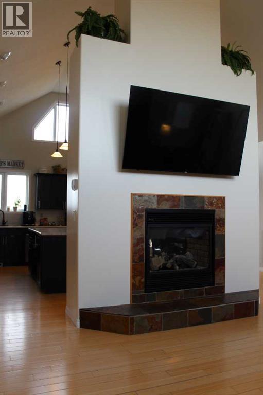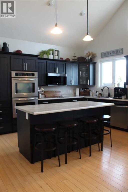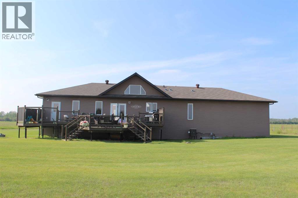 Proudly showing this luxury home that packs a punch! This stunning 37-acre fenced property perfectly blends timeless style and smart functionality. Conveniently located just off the pavement and minutes from Manning, this beautifully designed five-bedroom, four-bathroom home is built for modern living and effortless comfort. From the moment you step inside, you’re welcomed by a bright, open-concept layout with vaulted ceilings and a double-sided gas fireplace, creating a warm and inviting atmosphere. The heart of the home is the well-appointed kitchen featuring an abundance of cabinetry, a pantry cupboard, complete stainless steel appliance package including a built-in double wall oven, countertop stove, and a large central island with barstool seating - ideal for gathering with family and friends. French doors off the dining area lead to the oversized tiered deck, offering the perfect spot to relax and enjoy the expansive outdoor living space while watching the kids play. The main level includes a serene primary bedroom with a walk-in closet, a four-piece ensuite with jet tub. There are also two generously sized bedrooms and a full bathroom. In the spacious mudroom area, which connects easily to the kitchen and garage, is a larger closet, a potential space for main-floor laundry and a two-piece bathroom. The fully developed lower level boasts large windows that let in plenty of natural light, in-floor heating, a massive laundry room, two more bedrooms, a beautifully finished four-piece bathroom, an open family room with plumbing ready for a wet bar - perfect for entertaining. Additional features include on the water co-op system, central air conditioning for year-round comfort and stone veneer accent with vinyl siding for a timeless exterior appeal. This property truly has it all - luxury, space and practicality, making it the perfect place for your family to grow, thrive, and create lasting memories! (id:55690)