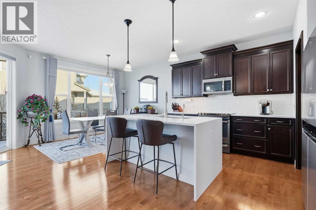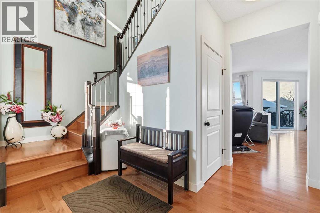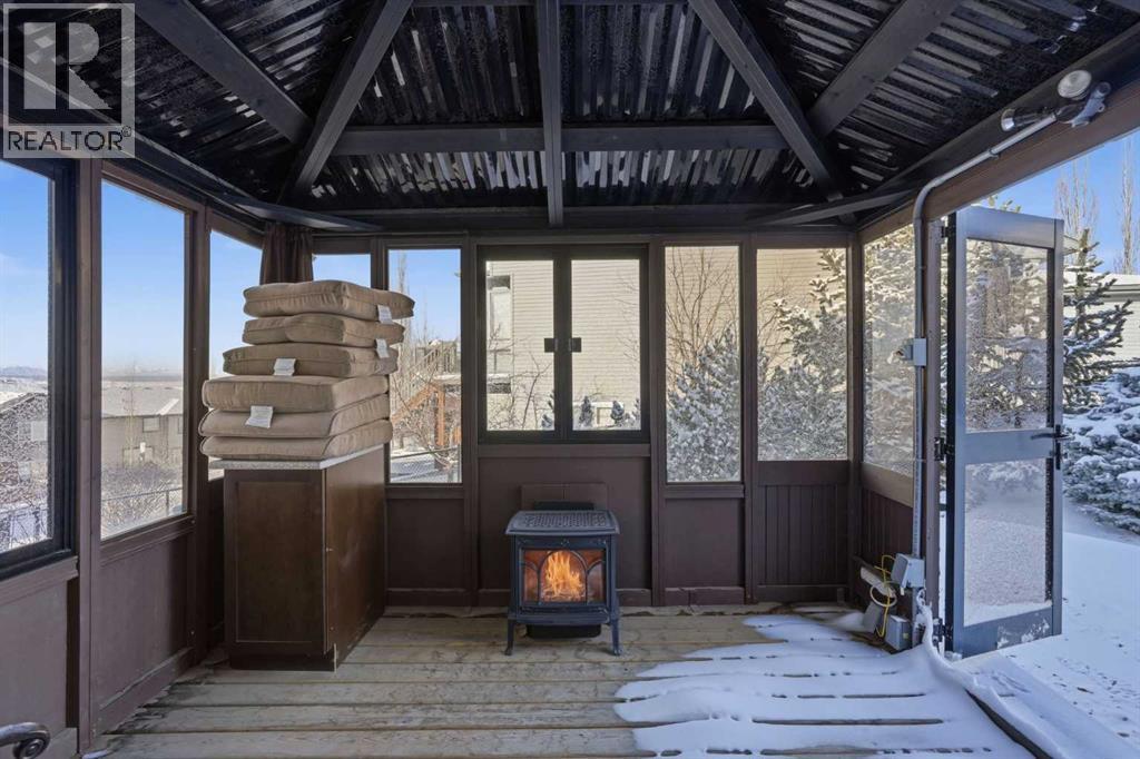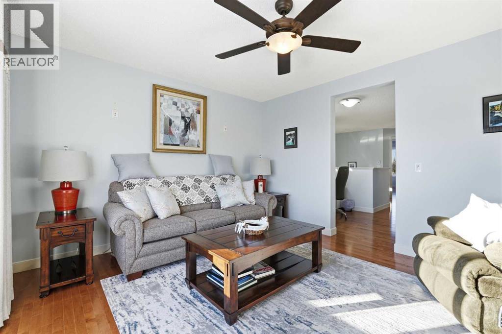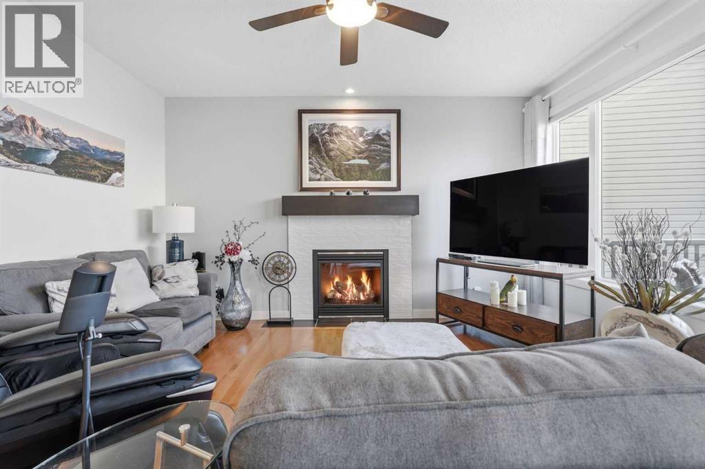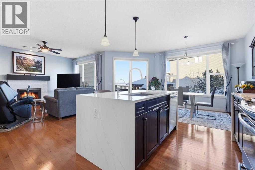 Welcome to one of the most uniquely positioned homes on the street, offering clear, unobstructed MOUNTAIN VIEWS from the backyard, dining room, primary bedroom, and even the ensuite bath. Surrounded by three green spaces, this home delivers a rare sense of privacy, openness, and connection to nature where morning coffee comes with mountain sunrises and evenings wind down under Cochrane’s painted skies.Extensively renovated and thoughtfully upgraded, the home features a 3-year-old designer kitchen with new appliances and three custom waterfall countertops, a true focal point for gathering and entertaining. Motion sensored Under-cabinet lighting, rounded drywall corners, hardwood floors on the main and upper levels, comfort, and quality throughout.Major mechanical upgrades provide peace of mind and everyday comfort, including AC, high-efficiency furnace (2021) with UV air purification system for crisp, clean air, an upgraded 60-gallon electric hot water tank, water softener, and a full home water filtration system with reverse osmosis (2013) for premium drinking water. Fireplaces have been recently cleaned and serviced. Fully wired with Telus security and surround sound speakers.Designed for both relaxation and entertaining, the home features two custom decks with a gas fire pit that capture the mountain views, along with a fully wired backyard gazebo complete with gas fireplace, TV hookup, electricity, and space to host year-round. The basement offers a wet bar, steam shower, and a versatile soundproofed entertainment area easily transformed into a theatre room, home gym, or yoga retreat.Zero-scaped landscaping ensures a low-maintenance lifestyle so you can spend more time enjoying the setting and less time maintaining it.A rare opportunity to own one of the few homes in this location with true unobstructed mountain views, thoughtful upgrades, and a lifestyle that’s hard to replicate. (id:55690)