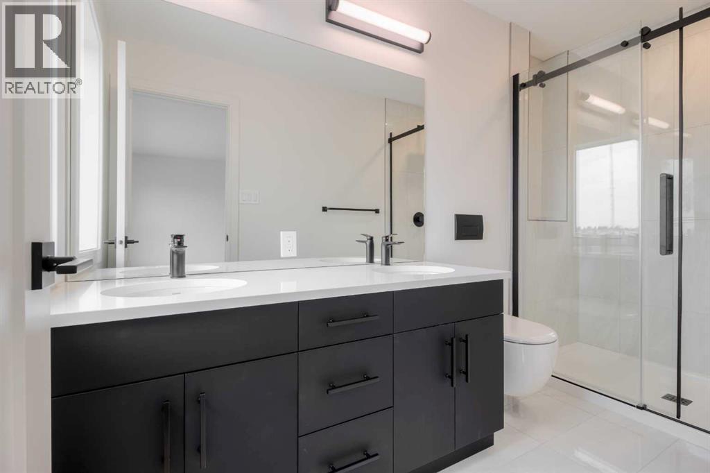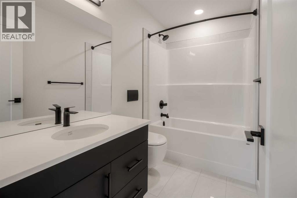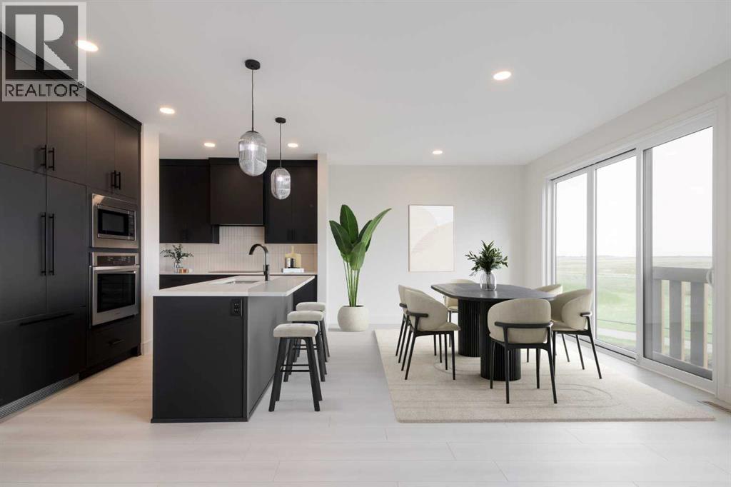 Welcome to the Westhill by Stranville Living in the popular community of BlackWolf in north Lethbridge! You can't talk about BlackWolf without focusing on Legacy Regional Park, the first major regional park on the north side, similar to Henderson Lake Park and Nicholas Sheran Park. The park spans 73 acres and was designed for people to play, relax and connect with their community. Amenities include Skate Park, Playground, Challenge Course, Fitness Equipment, Group Picnic Shelter, Belvedere Lookout and Amphitheatre, Discovery Playground , Tennis, Pickleball, Basketball, Baseball, Soccer, Public Washrooms, Paved Pathways, Natural trails, Outdoor Skating, Sledding Hill, Ornamental Gardens, Spray Park, Bookable Picnic Shelter, Bookable Pavilion, and Concession - Open weekends. ENOUGH ABOUT THE PARK! Let's get back to the two-storey home in this quiet cul-de-sac that is ready for move-in TODAY. At over 1,800 square feet of developed area, this 3 bedroom, 2.5 bath home is terrifically finished in selections made by the builder's skilled interior design team. The main floor includes a beautifully appointed kitchen in a sexy black "Velour Touch" finish by Adora Cabinets, fully tiled backsplash, and quartz countertops for both the base cabinets and island with extended bar. Stranville Living's top tier appliance package includes a seamlessly integrated paneled Fisher & Paykel fridge, paneled dishwasher, induction cooktop, built-in hood fan, and a stainless steel wall oven and microwave combo unit. A sleek electric fireplace accents the main floor living room with a wall mounted mantle that is crisp and clean. A large sliding glass door exits onto the future deck and sits adjacent to a massive rear window with park views for days. Upstairs, a large primary bedroom includes a tasteful double sink vanity, wall mounted toilet, and a sizeable tiled shower with glass door. Two more ample bedrooms, a 4-piece bathroom, and laundry closet also grace this upper level, but it is the 163 square foot media room that makes it complete. Don't forget about the high efficient mechanical equipment, Low E windows, and spray foam in the rim joists that help keep your heating and cooling costs in check. All the beautiful finishes of the home aside, it is the incredible size of the lot that sets this home apart from every other home on the street. Come by and see what I mean, you'll be happy you did. Pictures contain virtual staging. There's nothing like NEW! (id:55690)