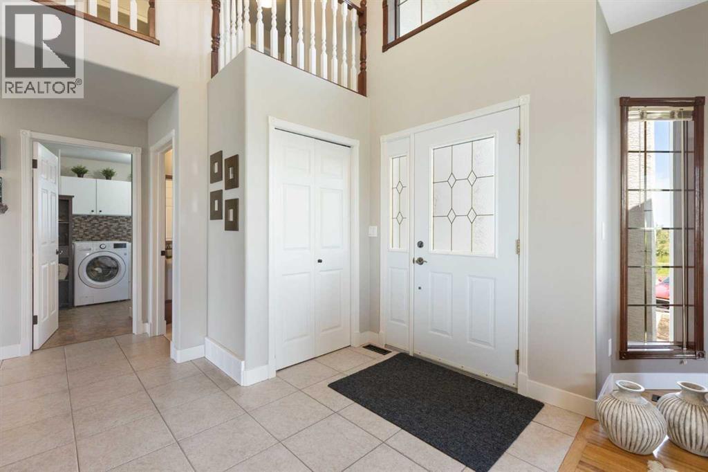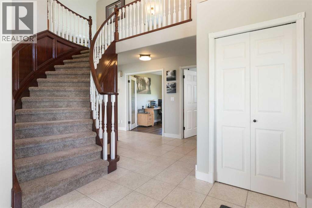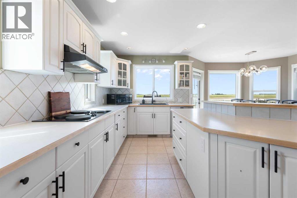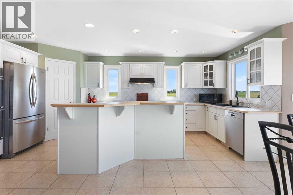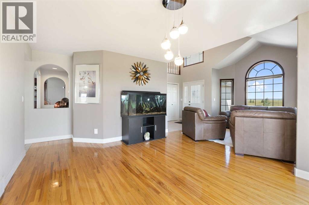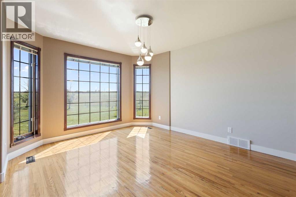 Step into a life where sweeping views, privacy, and comfort come together in perfect harmony. This stunning 2,741 sq ft two-storey walk-out home sits on a peaceful 4-acre parcel of prairie in Rocky View County -- perfect for that serene acreage charm.From the moment you arrive, a grand spiral staircase makes a dramatic first impression, setting the tone for thoughtful design and spaces meant to be lived in. The open-concept main floor boasts vaulted ceilings in the family room and living areas, complemented by rounded corner detailing, hardwood and ceramic tile finishes, and a gourmet kitchen featuring a large island, breakfast bar, double oven and eat-in nook -- built for both everyday living and entertaining.The fully finished lower level is a self-contained illegal suite -- featuring two additional bedrooms, bathroom, a full kitchen, and a living area complete with a cozy gas fireplace. It also benefits from a walk-out to the backyard and massive amounts of natural light.Enjoy both privacy and easy access; in under 15 minutes you can be in Calgary. Whether you’re sipping coffee on the balcony or exploring your land, this is a property that brings the calm and beauty of country living right to your doorstep. (id:55690)