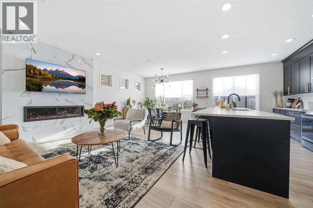 Welcome to this beautifully designed two storey home in the vibrant, family friendly community of Livingston. Warm, stylish, and move in ready, this meticulously maintained residence offers over 2,000 square feet of thoughtfully planned living space, balancing comfort, functionality, and everyday ease.The main level welcomes you with a spacious foyer and convenient powder room before opening into a bright and inviting living area anchored by a cozy fireplace. Designed for both relaxed family evenings and effortless entertaining, the layout flows seamlessly into the dining space and an expansive chef inspired kitchen. Complete with stainless steel appliances, generous cabinetry, pantry storage, and ample counter space, this kitchen offers excellent prep areas and room to gather around the island, making it the true heart of the home. A dedicated mudroom connects directly to the double attached garage, adding practicality and organization to busy routines.Upstairs, the second level is exceptionally well planned. A large bonus room provides flexible space for movie nights, a children’s retreat, or a home office. The primary suite is privately positioned and offers a spacious layout with a walk in closet and a beautifully appointed four piece ensuite. Two additional thoughtfully proportioned bedrooms share a full bathroom, while the upper level laundry room adds everyday convenience exactly where it is needed most.Thoughtfully maintained and exceptionally well-cared for, the home also features a new roof and new siding, offering long term peace of mind and enhanced curb appeal.Life in Livingston is centered around connection and community. This rapidly growing, master planned neighbourhood offers exclusive access to the impressive Livingston Hub, included with HOA fees. Residents enjoy a gymnasium, outdoor rink, skate park, playgrounds with splash park, and year round programs and events designed to bring neighbours together. Ideally located near Stoney Trail, you w ill appreciate easy access to the airport, nearby shopping, schools, and a scenic drive west to the mountains.This is the home you have been waiting for, offering space, comfort, and community all in one. Book your private viewing to experience this exceptional opportunity to enjoy refined living, meaningful space, and a vibrant sense of community! (id:55690)