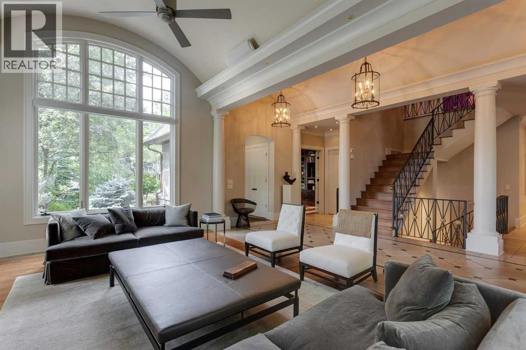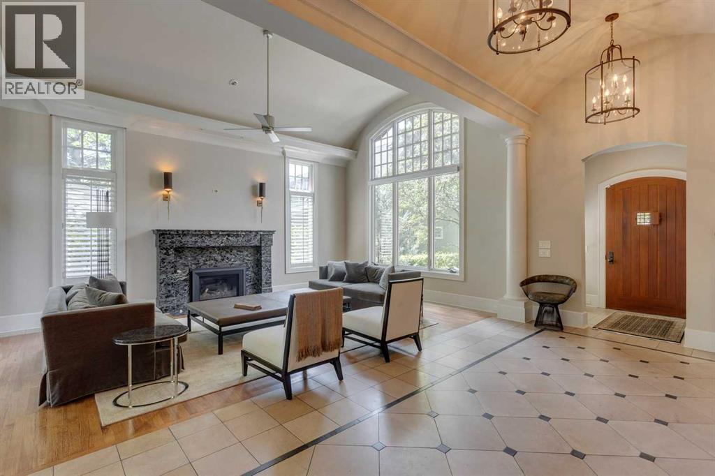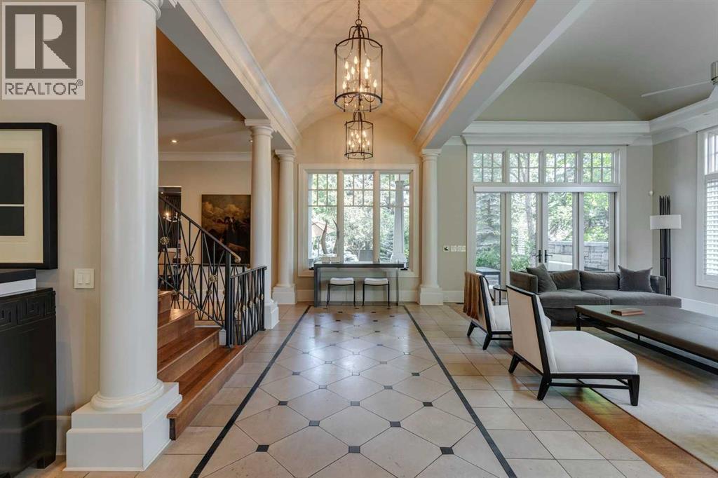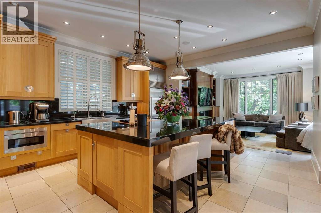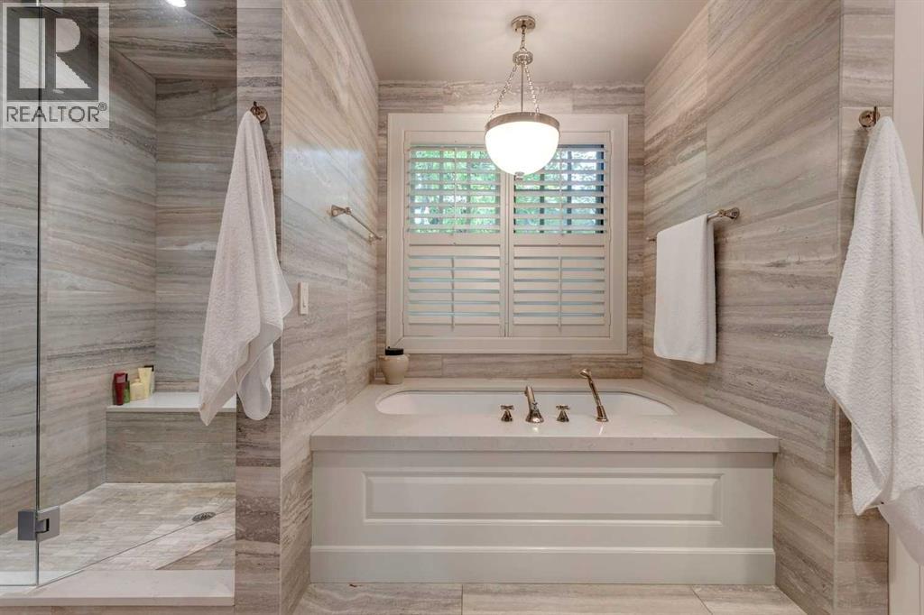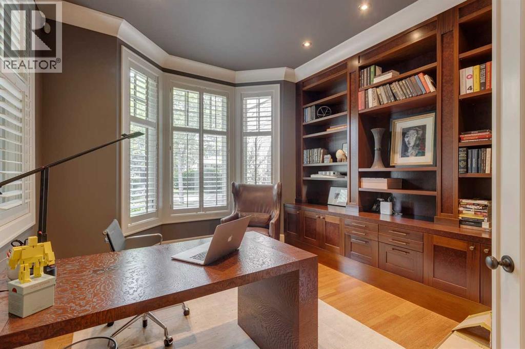 A residence of rare distinction in the prestigious community of Mount Royal. Designed by McDowell & Associates, this extraordinary estate embodies timeless architecture, enduring craftsmanship, & refined sophistication at every turn. Situated on an 80x161 ft (10,764 sq. ft.) professionally landscaped lot, this stately property offers over 5,822 sq. ft. of impeccably finished living space across three levels, featuring five bedrooms (note: basement bedroom has been converted to a large executive office) & six beautifully appointed bathrooms. From the moment you step through the grand foyer, the home reveals its pedigree - barrel vaulted ceilings through the foyer & living room, exquisite millwork, Loewen triple-pane windows & a harmonious blend of oak hardwood & honed limestone flooring. The formal living room is anchored by a gas fireplace with a marble surround, while the dining room exudes elegance beneath a statement chandelier. At the heart of the home lies the Empire-designed kitchen, outfitted with Sub-Zero, Wolf & Miele appliances, this culinary space offers inset cabinetry, granite counters, a large center island & countertop seating overlooking the private gardens. A mudroom leading from the garage & executive main-floor office with built-ins complete this level. The upper floor is a retreat of calm sophistication. The primary suite is an indulgent sanctuary, featuring a six-piece marble ensuite with steam shower, deep soaker tub, dual vanities & heated floors, alongside two custom dressing rooms. Three additional bedrooms, each with private marble ensuites, offer comfort & privacy for family & guests. The lower level continues the theme of understated luxury with a fifth bedroom (presently converted to an executive office with custom oak shelving & rolling ladder) & full spa bath with steam shower, a temperature-controlled wine room, private fitness studio (could be converted into a large family room). A spacious laundry along with ample storage provides f unctionality without compromise. The triple attached garage is as impeccably finished as the home itself - featuring epoxy flooring, built-in cabinetry, a slat wall organization system & hot/cold water lines for car washing or equipment care. Every element reflects the same meticulous attention to quality & design found throughout the residence. Outdoors, the professionally landscaped gardens form a private sanctuary of greenery & light, with limestone pathways, gas lanterns & multiple seating areas ideal for elegant entertaining with an intimate seating area in the garden surrounding a stone firepit. With in-floor heating, advanced mechanical systems & curated designer lighting throughout, this home offers enduring comfort & sophistication. Perfectly positioned within walking distance to The Glencoe Club, premier schools & the boutiques and restaurants of 17th Avenue & 4th Street SW, this distinguished Mount Royal residence represents the pinnacle of luxury living in Calgary’s most coveted neighbourhood. (id:55690)