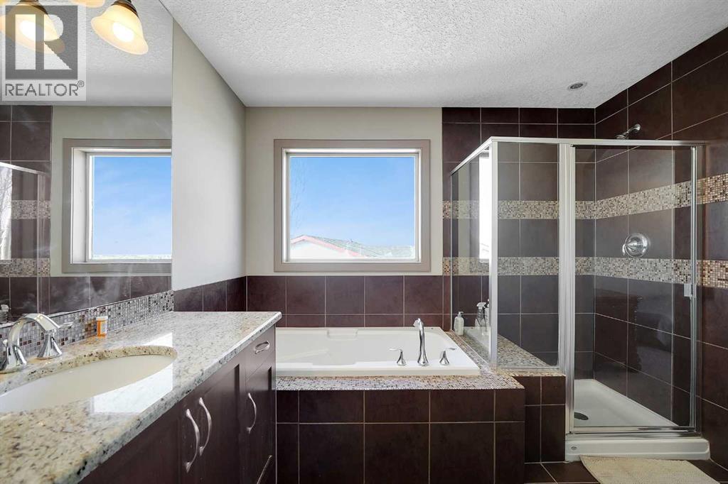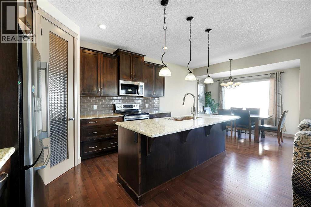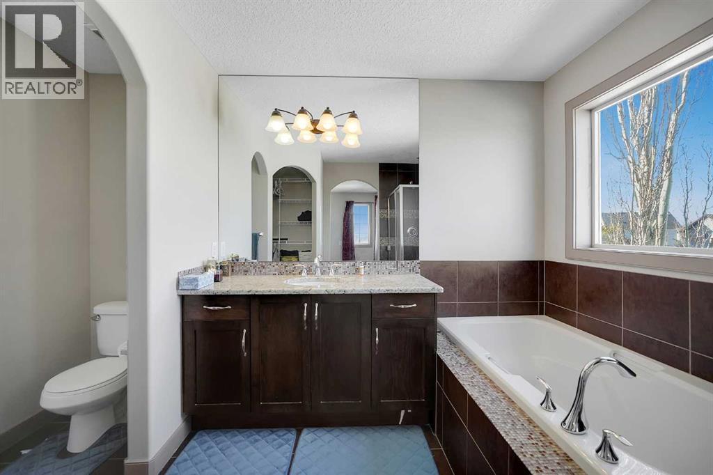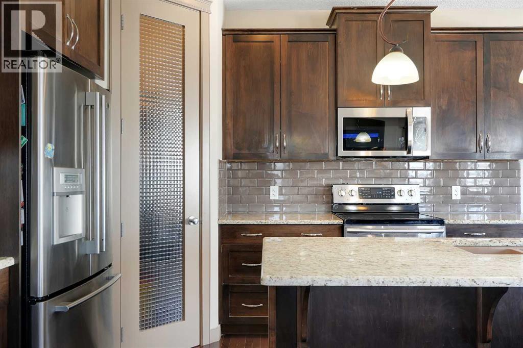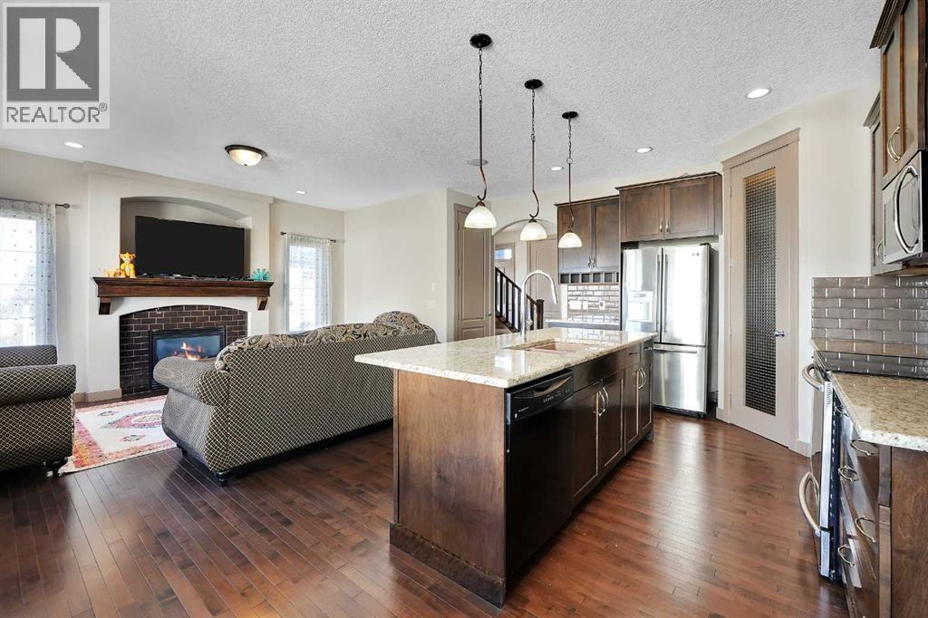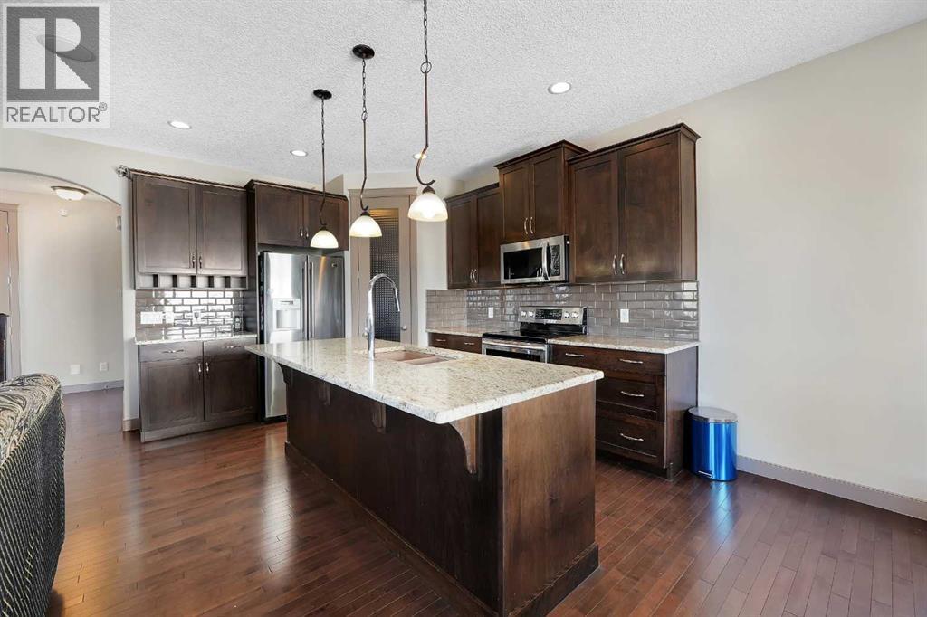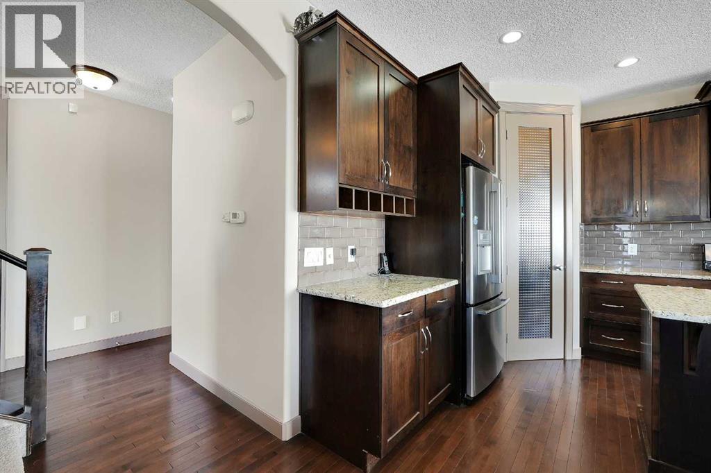Well-maintained home on a corner lot in a quiet cul-de-sac, offered by the second owners. This property shows pride of ownership throughout and features a functional layout with quality finishes. The main floor offers hardwood flooring, 9’ ceilings, rounded corners, and a living room with a fireplace and built-in niche. The kitchen includes granite countertops, stainless steel appliances, and a large walk-through pantry. Upstairs you’ll find three good-sized bedrooms, a bonus room, and convenient upper-floor laundry. The primary bedroom includes a 4-piece ensuite with granite and mosaic tile. The walkout basement is fully developed with an illegal suite, featuring a large rec space, full kitchen, 3-piece bathroom, and additional storage. Situated on a corner lot backing onto the side of neighbouring homes, the yard offers added privacy along with retaining wall and stone-accented fencing. Additional features include built-in ceiling speakers, 8’ doors, upgraded cabinetry, elliptical arches, and a gas line. Roof replaced in 2026. (id:55690)
