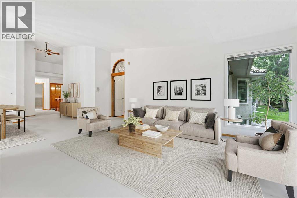 This is a rare opportunity with no condo fees—only $322/month in HOA fees, covering landscaping and maintenance for worry-free living. A beautiful, character-rich bungalow with a bright and open floor plan, tucked away in the prestigious and quiet community of Pump Hill Landing. Total 2 bedroom, 3-bathroom home with a main floor office offers over 1,590 sq ft on the main level, plus a fully finished basement with a potential third bedroom—ideal for guests or multigenerational living.The spacious living room features vaulted ceilings, a classic wood-burning fireplace, and striking floor-to-ceiling windows that fill the space with natural light. Timeless details like elegant wall mouldings and custom architectural touches create an inviting and sophisticated atmosphere.The kitchen blends charm and function with a center island, floating shelf backsplash, stainless steel appliances, and glass doors leading to the front porch—perfect for morning coffee or evening wine. A formal dining room and breakfast nook offer flexible entertaining options, and the main floor was recently painted throughout, giving the home a fresh, modern feel.The primary suite is a relaxing retreat with a large skylight, a 5-piece ensuite including a jetted tub, walk-in tiled shower, dual sinks, and a spacious walk-in closet with built-in organizers. A bright den/home office at the front of the home is accented with detailed wall moulding and abundant natural light—ready to fit your work-from-home lifestyle or hobby space.The fully developed basement includes a generous recreation room, guest suite with 4-piece bath, kitchenette, and a large storage room with wood paneling and built-in shelving. A mirrored corner wall with cabinet-style detailing adds unique character to the space.Enjoy two private patios and low-maintenance landscaping in the tranquil rear yard. Additional highlights include a double attached garage and an unbeatable location—walking distance to Glenmore Landing, minutes to Chinook Centre, with easy access to Glenmore Trail and Stoney Trail.Perfect for empty nesters, snowbirds, or anyone looking to downsize without compromise in one of Calgary’s most desirable villa-style communities. (id:55690)