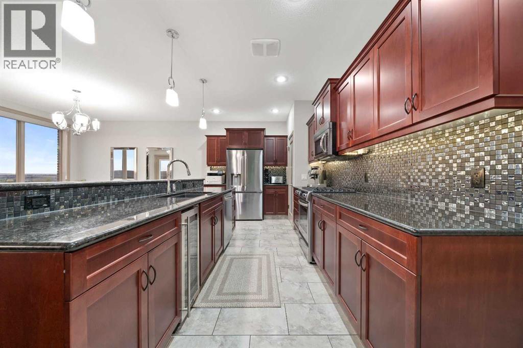 Get set to view a condo that has FEW comparables in the city. Quality construction, uncomparable VIEW of the South Saskatchew River, our Coulee Hils and all the way to the Cypress Hills. It offers EVERYTHING a buyer could be looking for today. Walking directly into your own quiet and secure haven, you will immediately noitce it is very private, it's spacious and open with tonnes of natural sunlight. This unit is located on the row with the unobstructed views of Southern Alberta's spectacular sunrises year-round. Recent improvements have occurred, some of which include: freshly painted in a neutral color throughout, some new blinds, a new large fridge and upgrading on the A/C. This one plus one bedroom, (each with its own ensuite) is walkout bungalow, has a third bathroom off the lower family room. With the attached double "heated garage" and two patios, homeowners can enjoy year round living in full comfort. For cooking and entertaining, this unit is a hostess's dream. It has an incredible kitchen with granite counter tops, large pantry, open to the roomy dining room and adjacent to the main floor living room with a beautiful rock-faced feature wall with a built-in fireplace. An extra bonus is the Seller is offering a FULL appliance package and complete window coverings throughout. A walkout with heated floors on the lower level, low condo fees and pets allowed with board approval. This unit shows IMMACULATELY and has the possibility of quick possession. You won't be disappointed if you put this on your viewing list. **Title Insurance will be offered in lieu of RPR & Compliance. (id:55690)