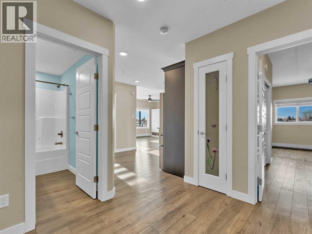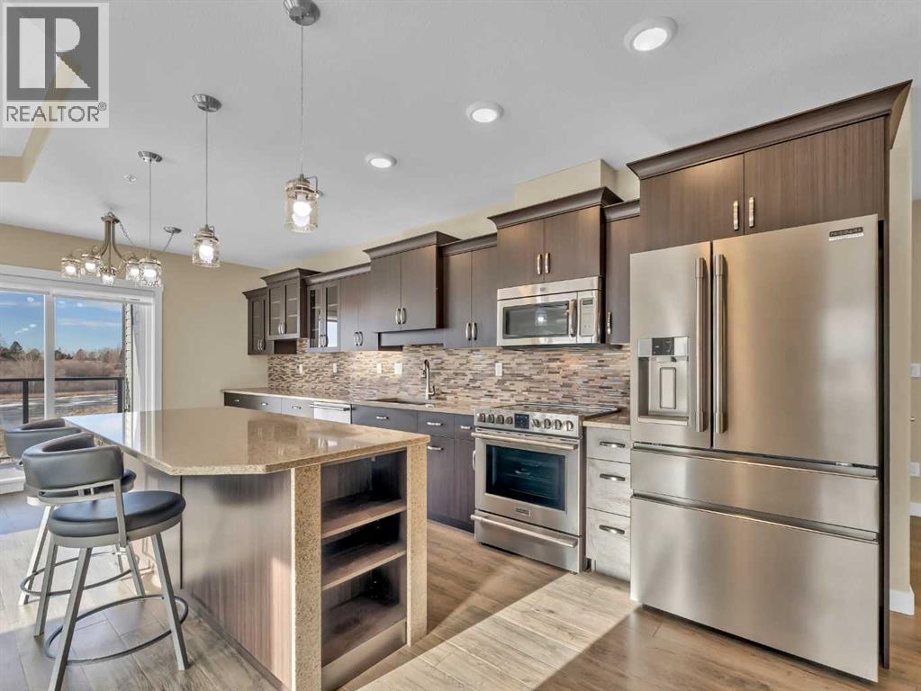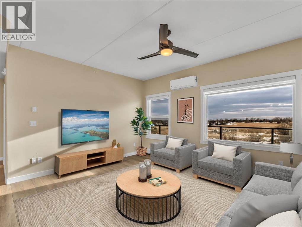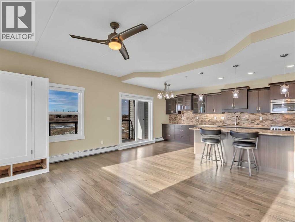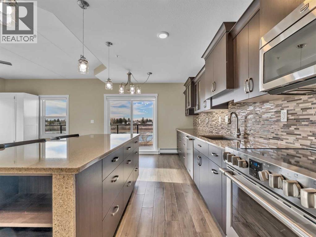 Enjoy refined condo living in this 3rd-floor corner unit located in a quiet adult-oriented building, offering incredible lake views and abundant natural light from multiple exposures. This well-designed home features a spacious Primary Suite with ensuite, a 2nd bedroom with a built in Murphy Bed and an additional full bathroom, ideal for comfort and privacy. The beautiful kitchen is a standout, showcasing granite countertops, custom upgraded cabinetry, and ample workspace, perfect for both everyday living and entertaining. The thoughtful layout flows seamlessly into the living and dining areas, where large windows and glass doors frame the stunning lake scenery. Step outside to the wraparound deck, where you’ll find two exterior storage units, providing ultimate convenience and extra space for seasonal, outdoor or workshop items. Additional highlights include in-suite laundry, one secure indoor parking stall, and an additional outdoor parking spot, a valuable combination! Building amenities enhance the lifestyle, featuring an inviting entry-level common area ideal for visits and enjoying a coffee, along with an elevator for easy access to and from the units. All of this is complimented by the peaceful atmosphere of adult living, making this bright corner unit an exceptional opportunity in a sought-after condo community. (id:55690)