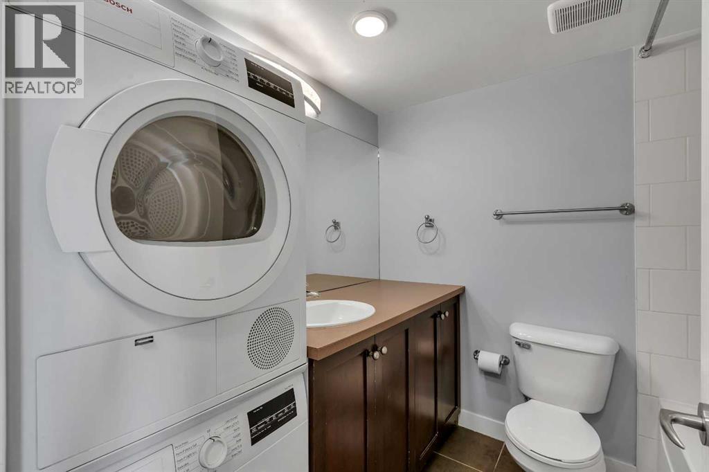 Welcome to the Roseberry! This fantastic condo in Sunalta offers the perfect combination of comfort and convenience, featuring insuite laundry, an assigned parking stall, and a bright open-concept layout. This sunny, south-facing unit has rich walnut hardwood flooring throughout and the kitchen is complete with an island with seating, stainless steel appliances, and ample cupboard and counter space. The spacious living room offers direct access to the south-facing balcony with storage. The primary bedroom is a good size and the well-appointed bathroom conveniently includes the insuite washer and dryer. An outdoor assigned parking stall completes this great condo. Located in the inner-city community of Sunalta, you’re just a short walk to downtown and steps to the LRT station, providing easy access throughout the city. Don’t miss your opportunity to own this fantastic condo! (id:55690)